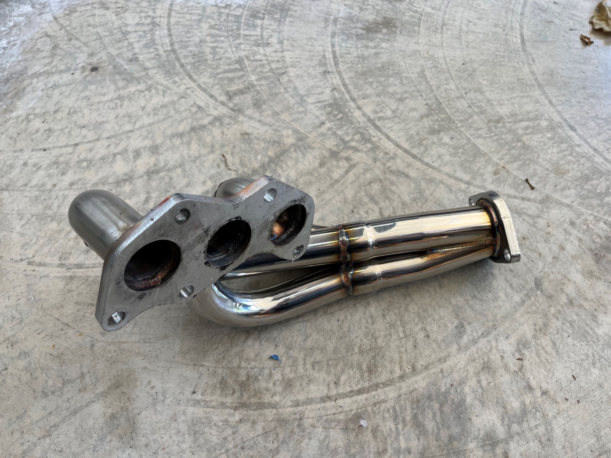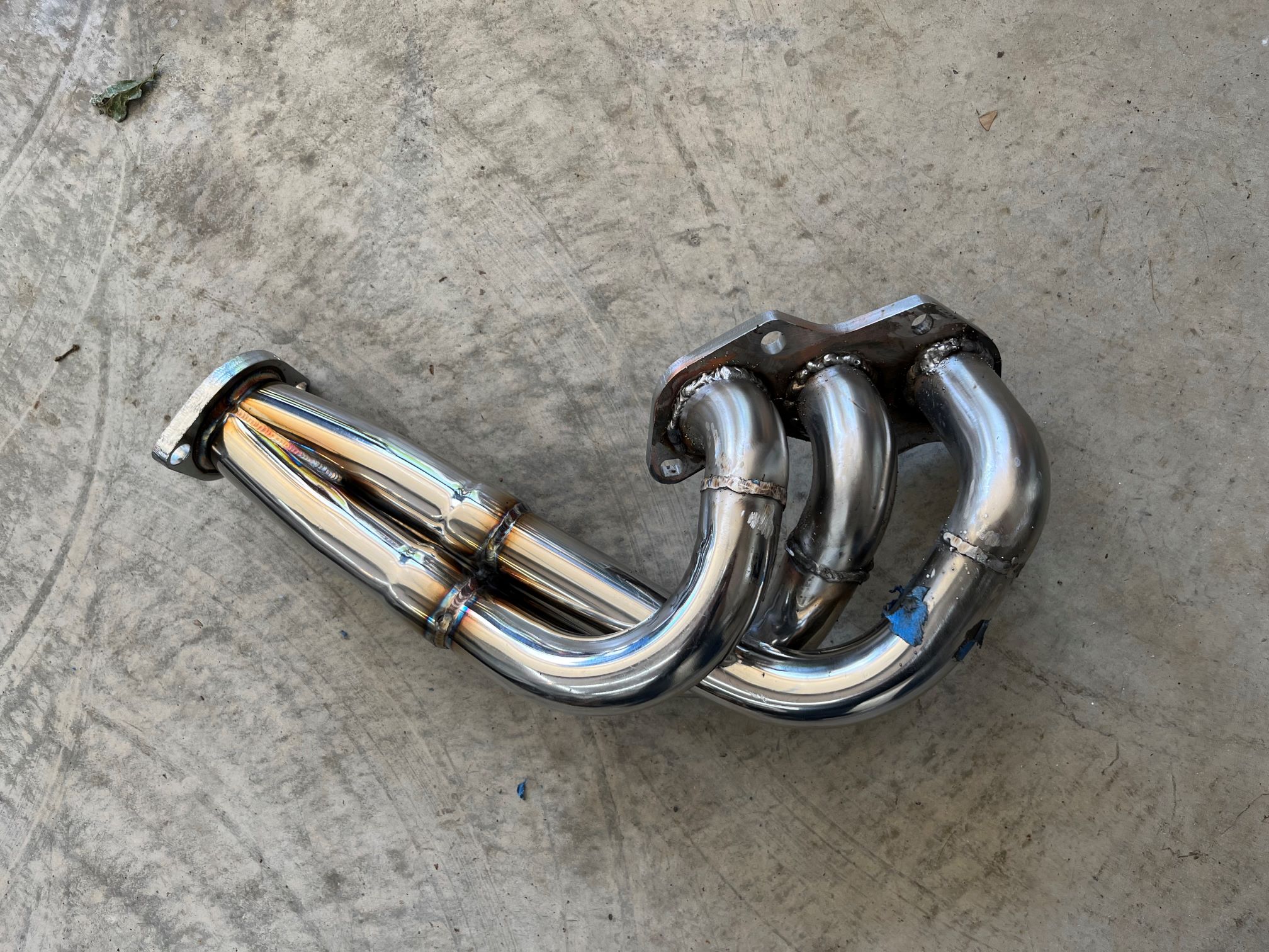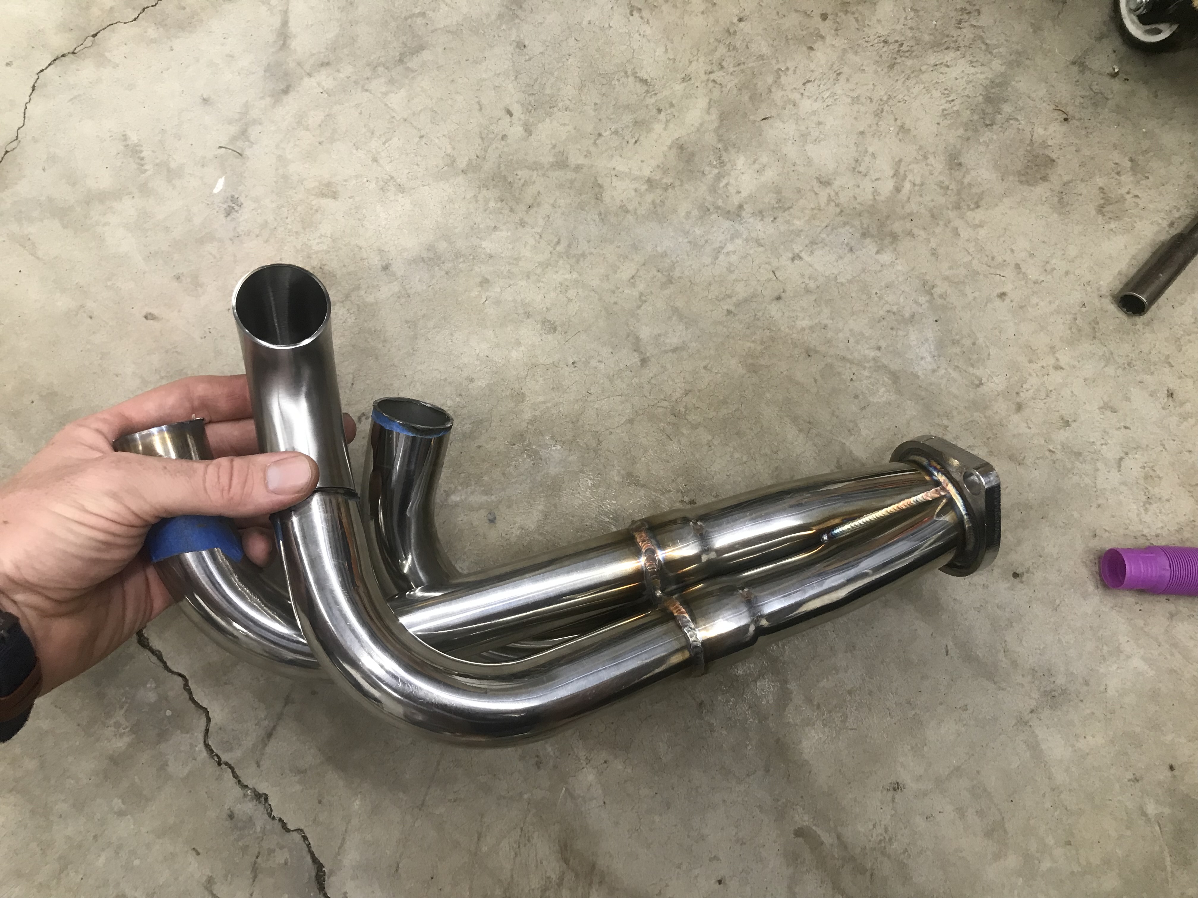 I took the headers and cut them off at the flange. I bought 1.5” 1D elbows from stainless bros and mocked them up by hanging the collector in the gap where it didn’t hit anything with the flange bolted to the head Then I cut and test fit each runner one by one. Attached thumbnail(s) |