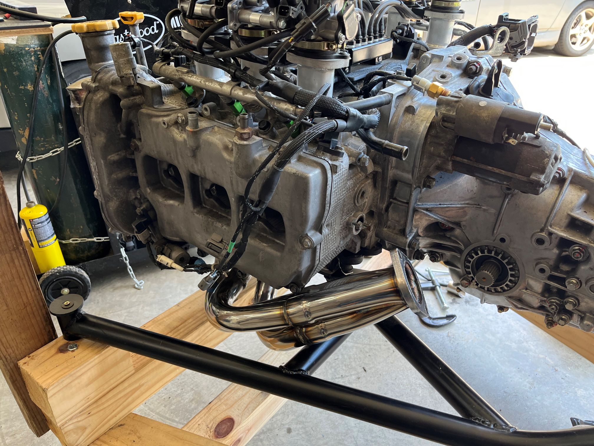 I built an OBX LSD for the transmission, will run ITBs (in theory) with Megasquirt. I modified a pair of headers from Raptor Performance to fit with the new cradle. Attached thumbnail(s) |