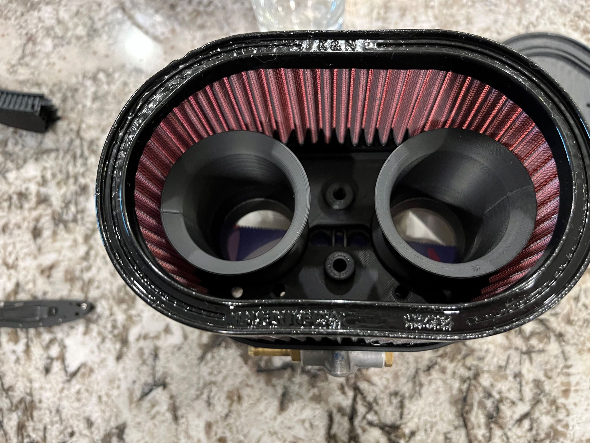 I think I'll have issues with clearance of the trumpets to the decklid, so I'm designing an airbox that will use BMW E39 M5 trumpets (curved).