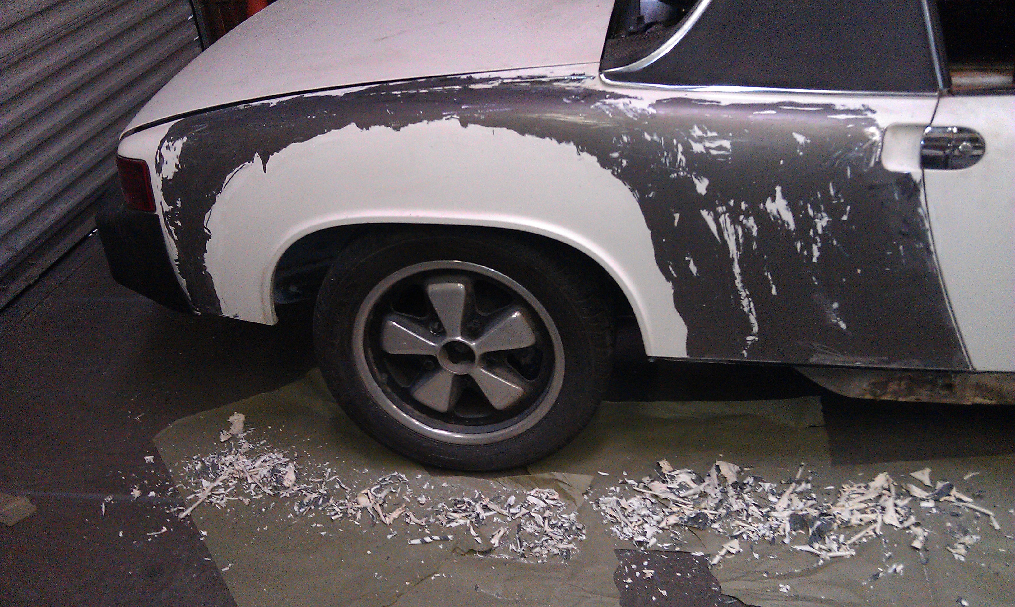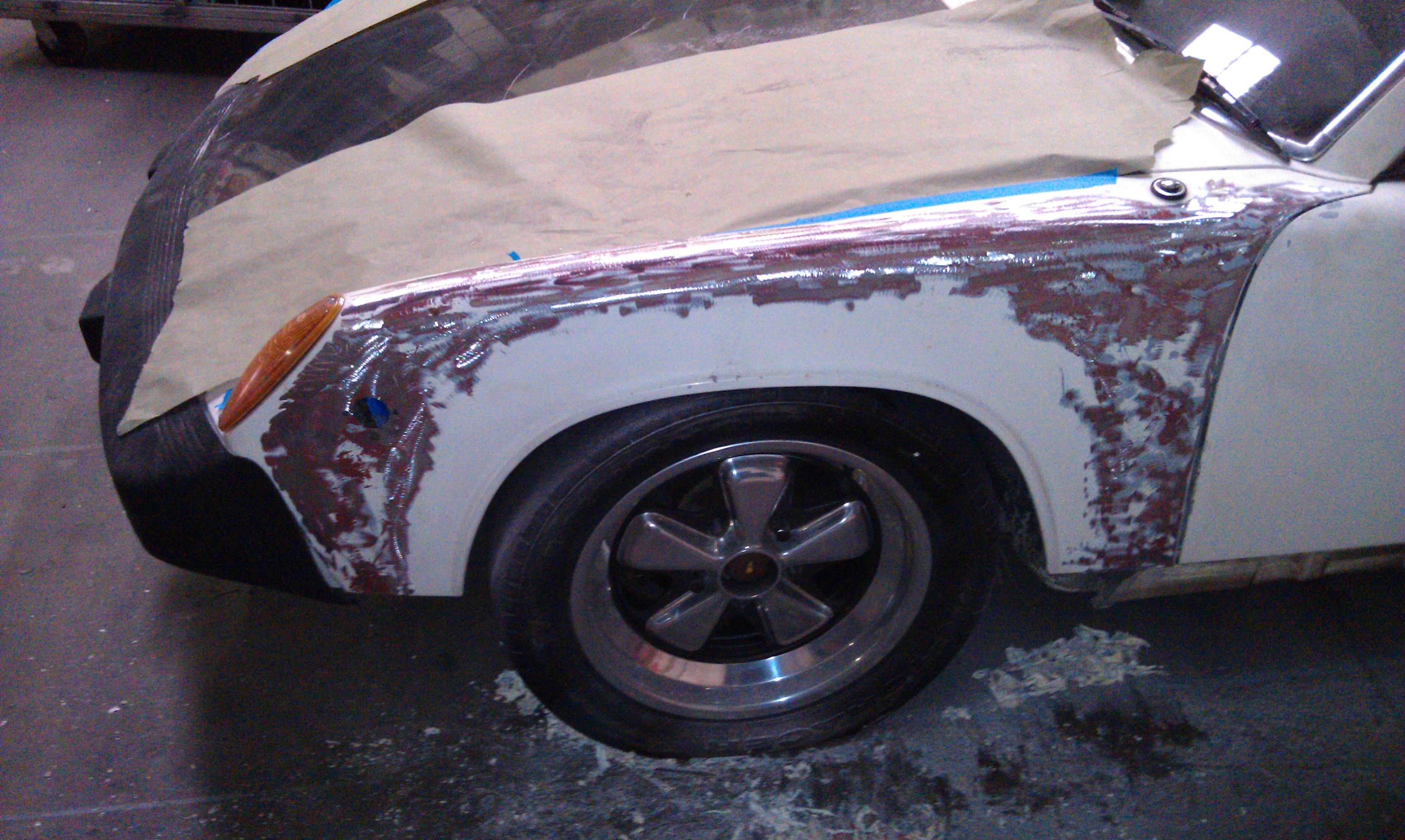 So my car is finally going back under the knife. A little history: I bought the 1975 2.0 in 1988 as my daily driver. Drove it like I stole it (IMG:style_emoticons/default/driving.gif) for a few years until I could hear the rods starting to loosen up. Started pricing stock rebuilds and was trying to figure out how to make that work on my late 20's single guy budget. I read an article about Renegade in VW/Porsche and realized that I drove within a mile of their Santa Fe Springs shop every day on my commute. I stopped in and went for a ride in their 500hp shop car. I got back in my car and floored it on the way up the freeway on ramp. Right then, my car's fate was sealed. I scraped together the cash for their basic conversion kit with cooling (nothing like the product that they sell now). Three years went by and I was able to make the car barely operational, but my fabrication skills weren't up to snuff and I started spending my time screwing around with electric car conversions (including a 914 conversion). Fast forward to 2004. I'm now married and have a better job. The wife suggests that I need to "make it go or make it gone." It makes sense. I send the car to Renegade's new shop in Las Vegas (new owners too). The old cooling system has rotted away in the mean time and the new system is much more effective. I go with their new cooling system, their trans, new adapter and clutch package, build a new 327 with aluminum heads, a 911 front end, convert to 5 lug rears, get a set of 6x15 fuchs, etc. etc. The car comes back in a month and costs a small fortune. The car drives great, but I immediately start thinking about what's next. The gearing is great, but as a 4 speed, it always feels like it needs one more gear for freeway cruising. I eventually find a 915 gearbox with 3:10 R&P. I had it flipped with new gears, reinforcements and LSD. The new box has the same gearing in the first 4 gears as the Renegade box with an extra overdrive that drop the 70mph rpm to about 2100. I keep an eye out for other deals and find a set of steel flares (probably from the original group buy), a set of 7" and 9" Fuchs 16's, MAF fuel injection for the V8 and a bunch of other small parts. The pile of "upgrades" slowly grows over the years. Fast forward to 2011. At some point, I need to empty the 16' box trailer in the driveway to move my 1916 Model T. I haul out an amazing hoard of 914 goodies. Why is all this stuff in a trailer and not in the 914? I need to get off my butt again... Last week I delivered the car to Sean at SD Autosports in San Diego. There's been a few leaks in the last couple of years and I infested rust into a relatively rust free car (IMG:style_emoticons/default/slap.gif) . The pics are: under the driver's seat, under the passenger seat, and the same area before removing the tar. I thought that the passenger side looked OK, but it appears much worse once the tar was removed. It's actually not as bad as it looks, wirebrushing, rust treatment and new paint and that area will be good to go. The driver's side might need some new metal... Sounds like you are doing everything first class. Where did you find the 915 trans witha 3:10 r/p and which letter gears did you end up using in the tranny? |