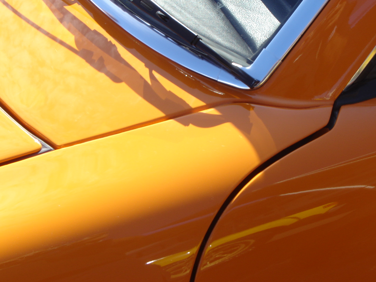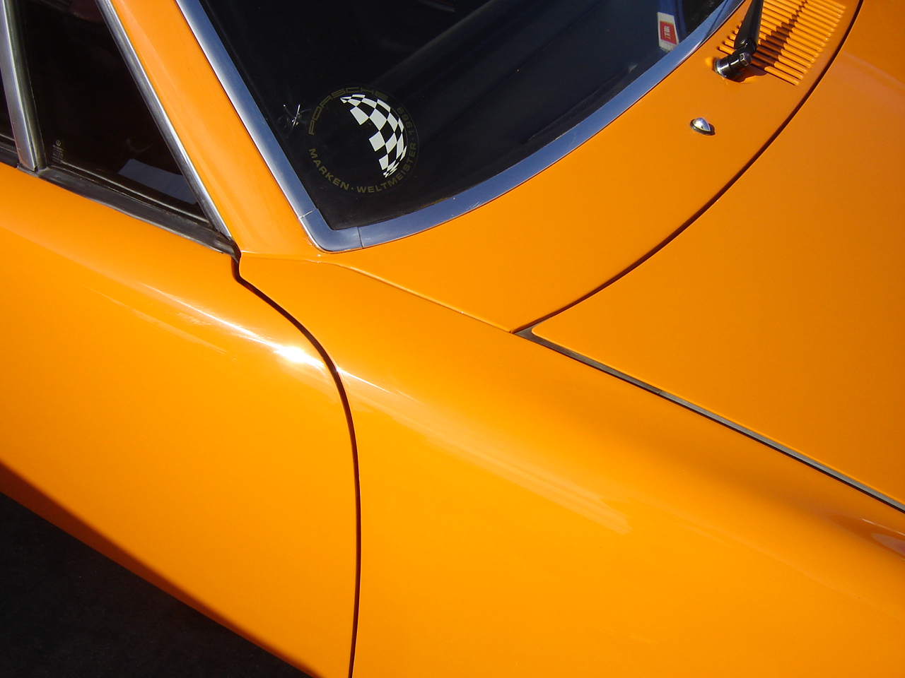 It's definitely a different car. The top of the wheel well has an odd shape, a flat spot on top on the red one, and an odd location for the plate. The orange one the wheel wells look normal. Here's another s-m 2383 plate, this one could be that car? and another from that shoot (can't find a proper jpg to put as an image) 914-6 0011 is part protype, car used as assembly test/work load pre production car, has many protype parts, rear view mirror, under dash pull bracket for possible gas cap release in hood,sold by porsche for off road use, was a euro car so could not be sold by porsche in USA for street use ( used in racing to promote 914-6 in scca), engine is full race twin plug only 914-6 to have full set of matching #'s on body,engine,trans. #'s end in 0011 |