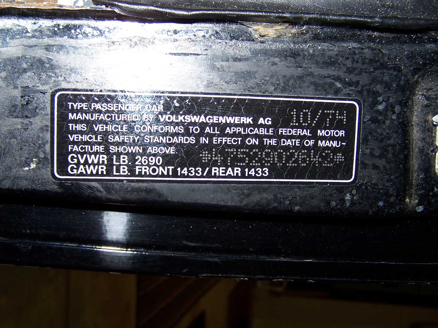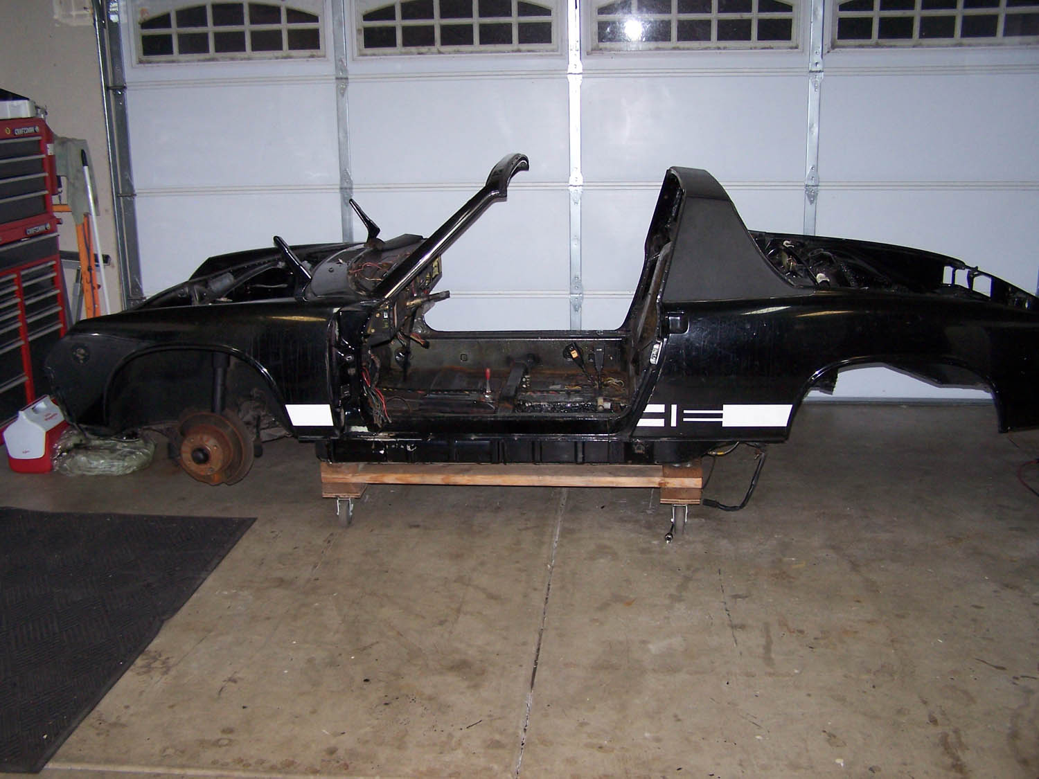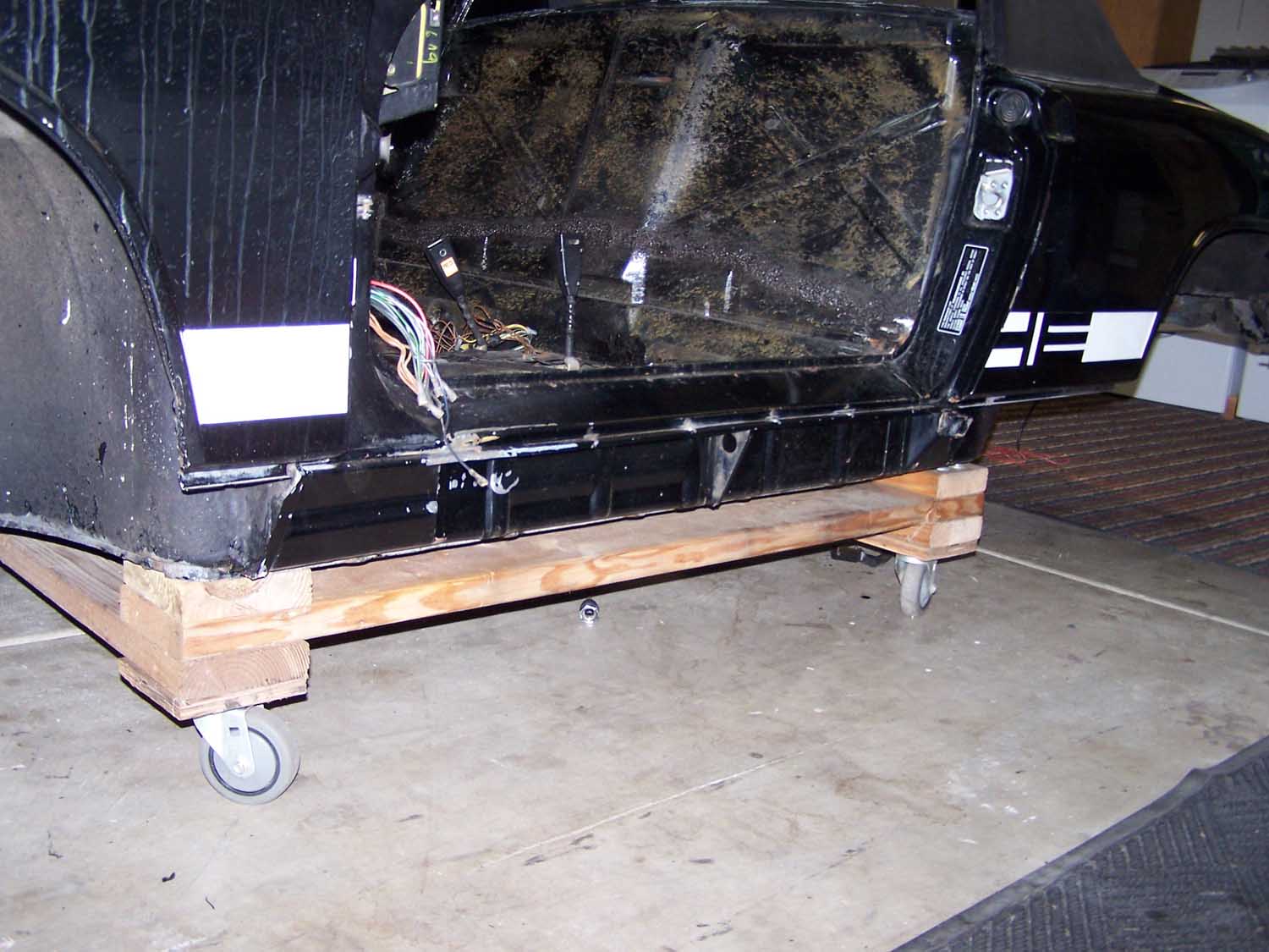 QUOTE looks like the new tub used to be yellow That yellow is the color of the original dash! I have heard that they used to use what parts they had left at the end of the previous model year first. The car is black with a black paint code and has only had a light second coat put over the original paint! It is one of the cleaner bare tubs I have seen! It has a small amount of rust in the drivers rear floor because the PO added a trunk pull and cut a large hole in the firewall for the water to flow right in! I can see no evidance that the car has ever been in an accedent! |