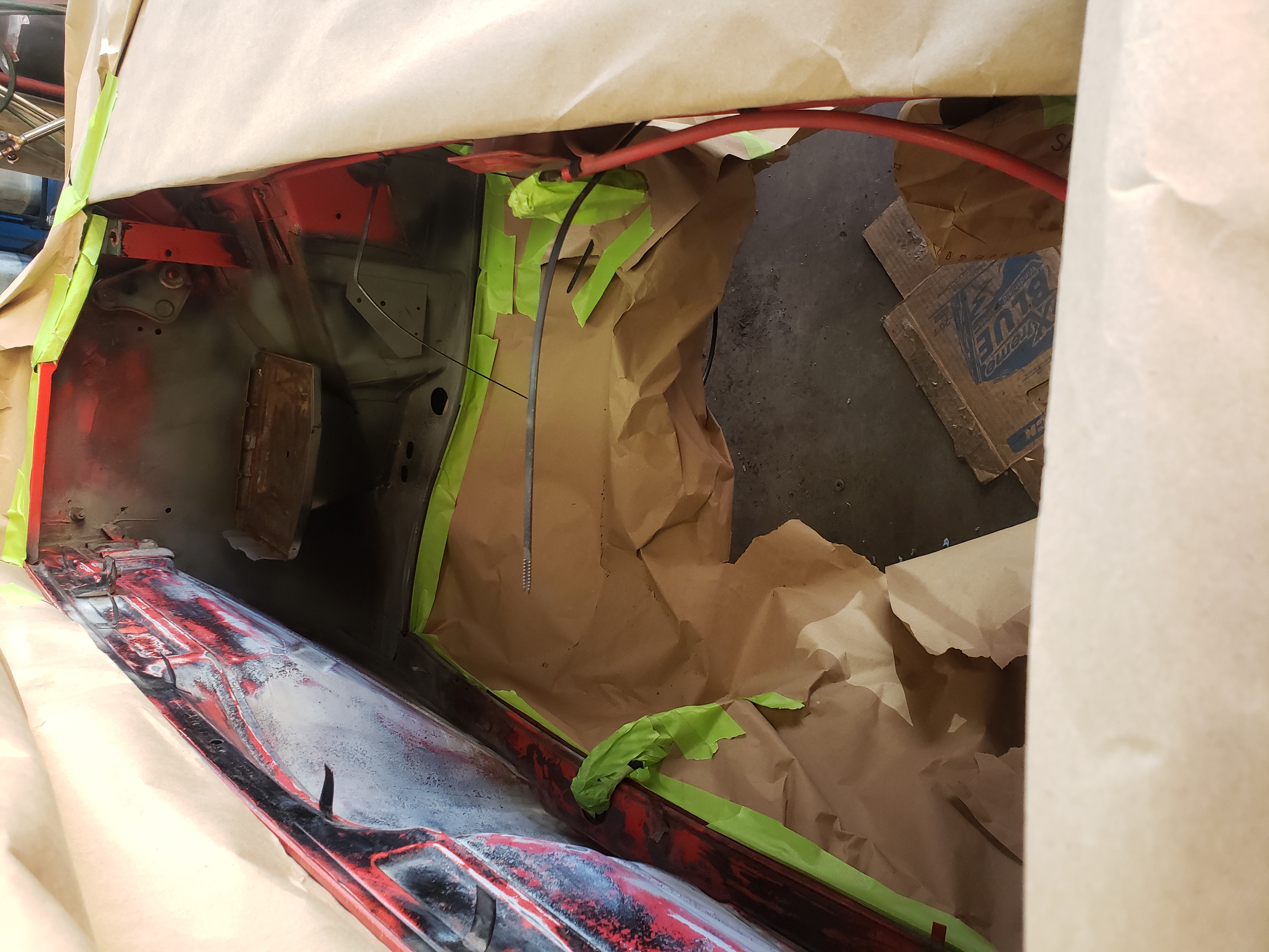 Engine bay wasn't that bad. Probably 3-4 hours. Most of the work was the firewall. The pad was removed, but getting the glue and fibers out was time consuming. It's not perfect , but I'm satisfied with it. I got the primer, paint, and clear from Eastwood. Easy to deal with. Now I need to find a bunch of bits and pieces to get it together and running. ex MPS mounting hardware, ECU bracket and hardware, throttle cable hardware etc... |