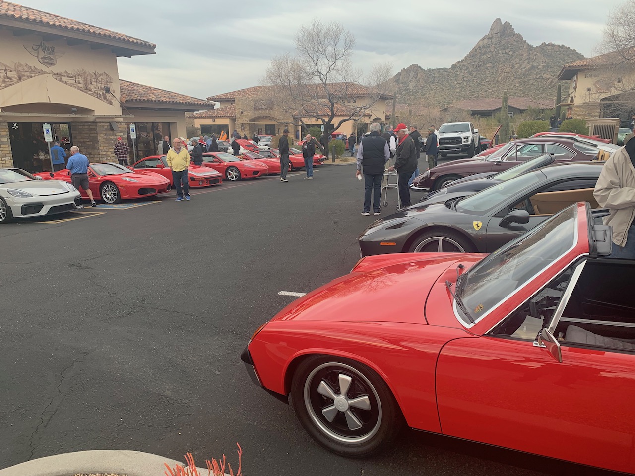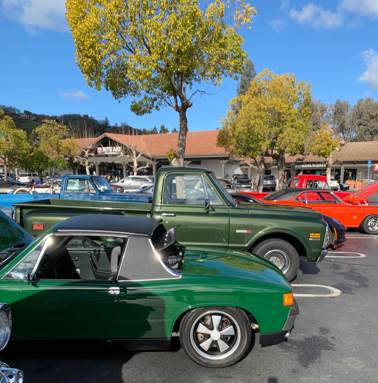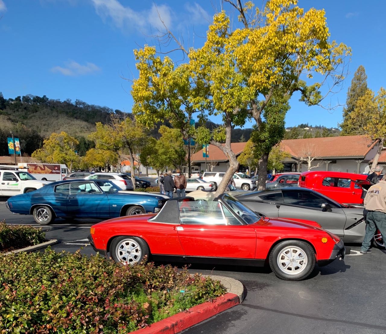 My brother is recovering from major back surgery and is doing very well, but there is no way he could get into the 914-6 with the surgery being less than a month ago. So my cousin Phil, another insane car guy came over and we took my Six to the Cars & Coffee at the Alamo Square shopping center in Alamo, on Danville Blvd. on the north west corner of the intersection of Danville Blvd. and Stone Valley Road. Large center and for the past 6 months they have been having Cars & Coffee at 0900 on Fridays so long as it is not raining. My car was very well received and people were really eye-balling it and the quality of the work. These are some serious hot rod/car guys and I must have given Kent's info to 4 or 5 guys who were just head over heels over my paint. Had a great time and saw 1 other 914, a '73 1.7 that looked essentially stock. Did not get to speak to the owner, as far as I know. I look forward to next Friday, weather permitting. |