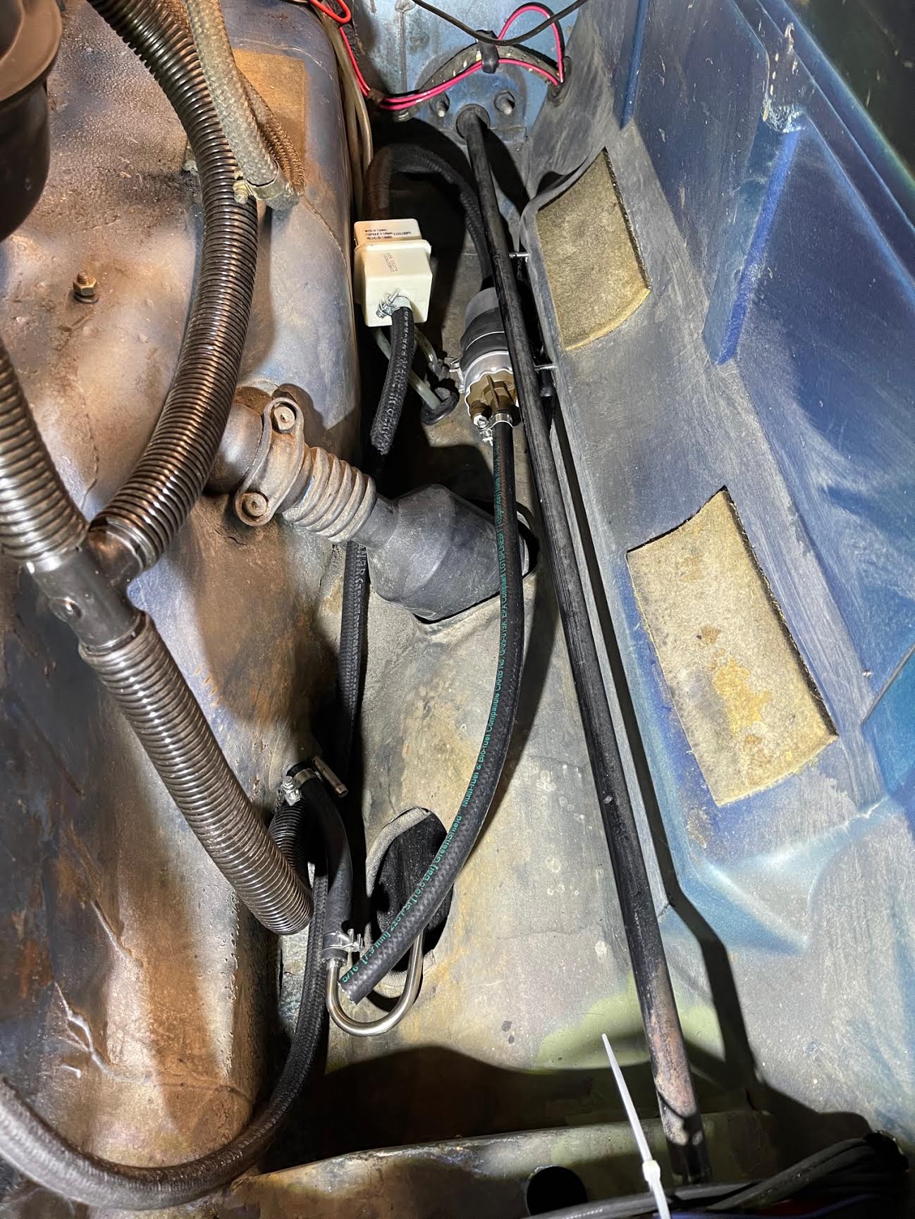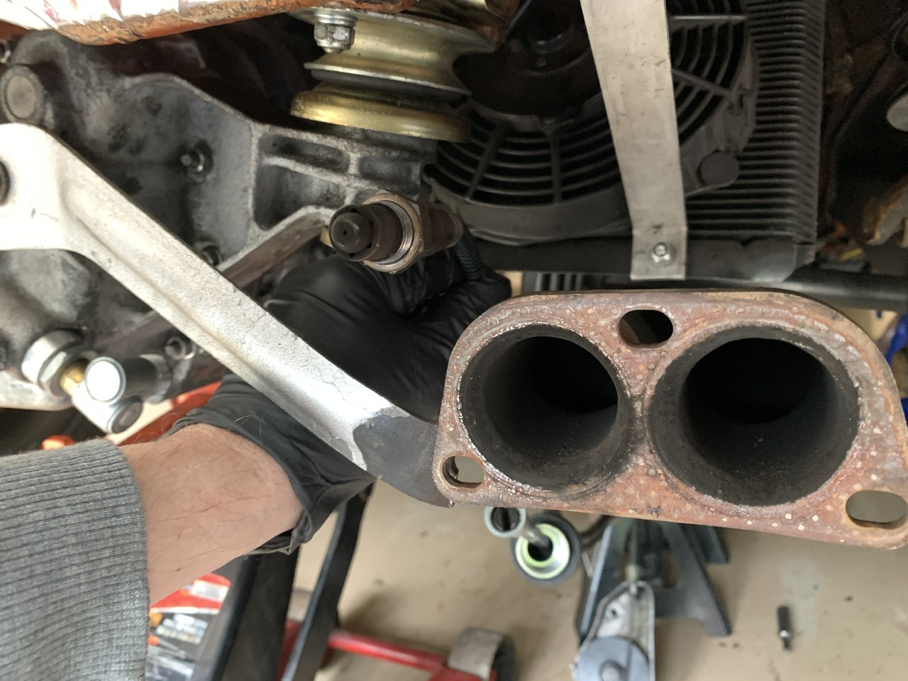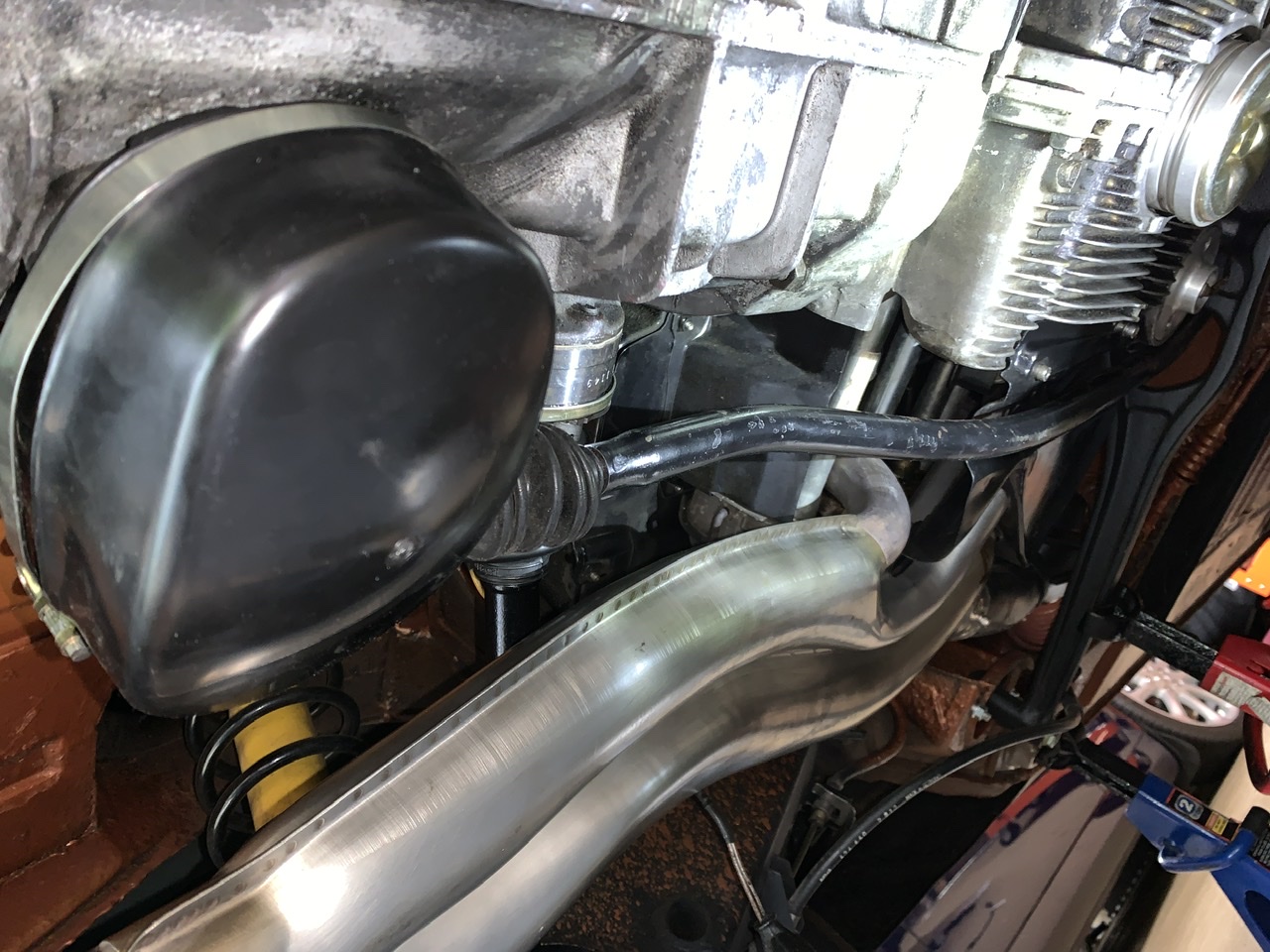 my transmission is back in the car, the CV joints are reconnected, so is the starter ans wiring , ground strap etc. this has been an experience, and hopefully it all works . shift linkage is back on but i am seriously contemplating the Tangerine rear dual bushing shift bar . right now i want to get it on the ground and tested out before i do that. I have to thank Dr. Mike aka Dr. Evil for the video instructions, and Al Meredith for loaning out his tools, thanks guys!!!! so now i am patiently awaiting my muffler from Ben! in that arena we’ve been discussing the O2 sensor location, looks like this will work, not interfere with the muffler hanger, HE, or the oil cooler and transmission mount... Attached thumbnail(s) |