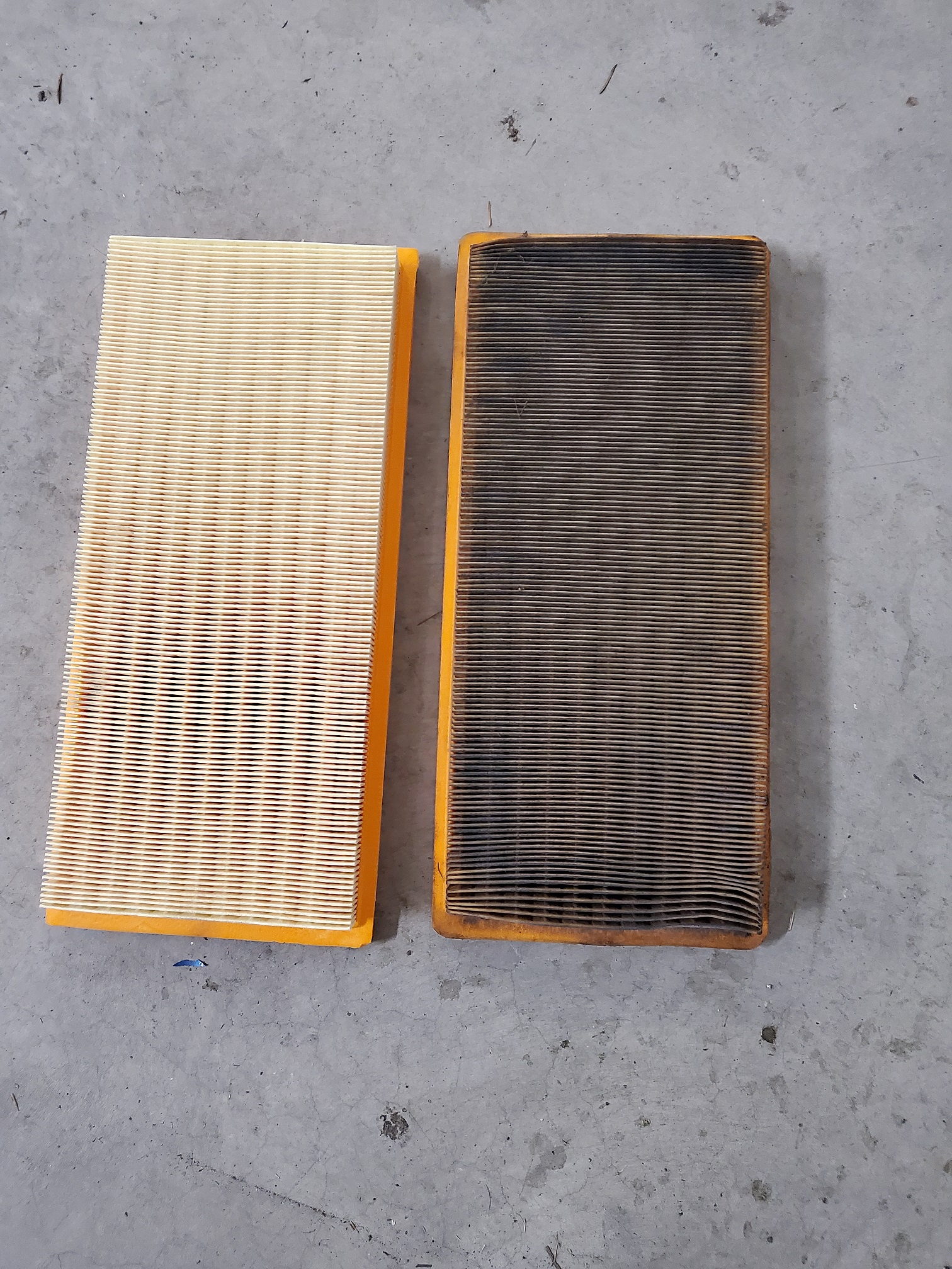 Tinkering around I noticed a new air filter sitting on the shelf. I do like to buy stock of common parts like oil filters etc. But couldn't recall ordering extra filters. Went to check the one in my 914-6 and zowie it was dirty! Must mean I bought to replace and forgot I had it.