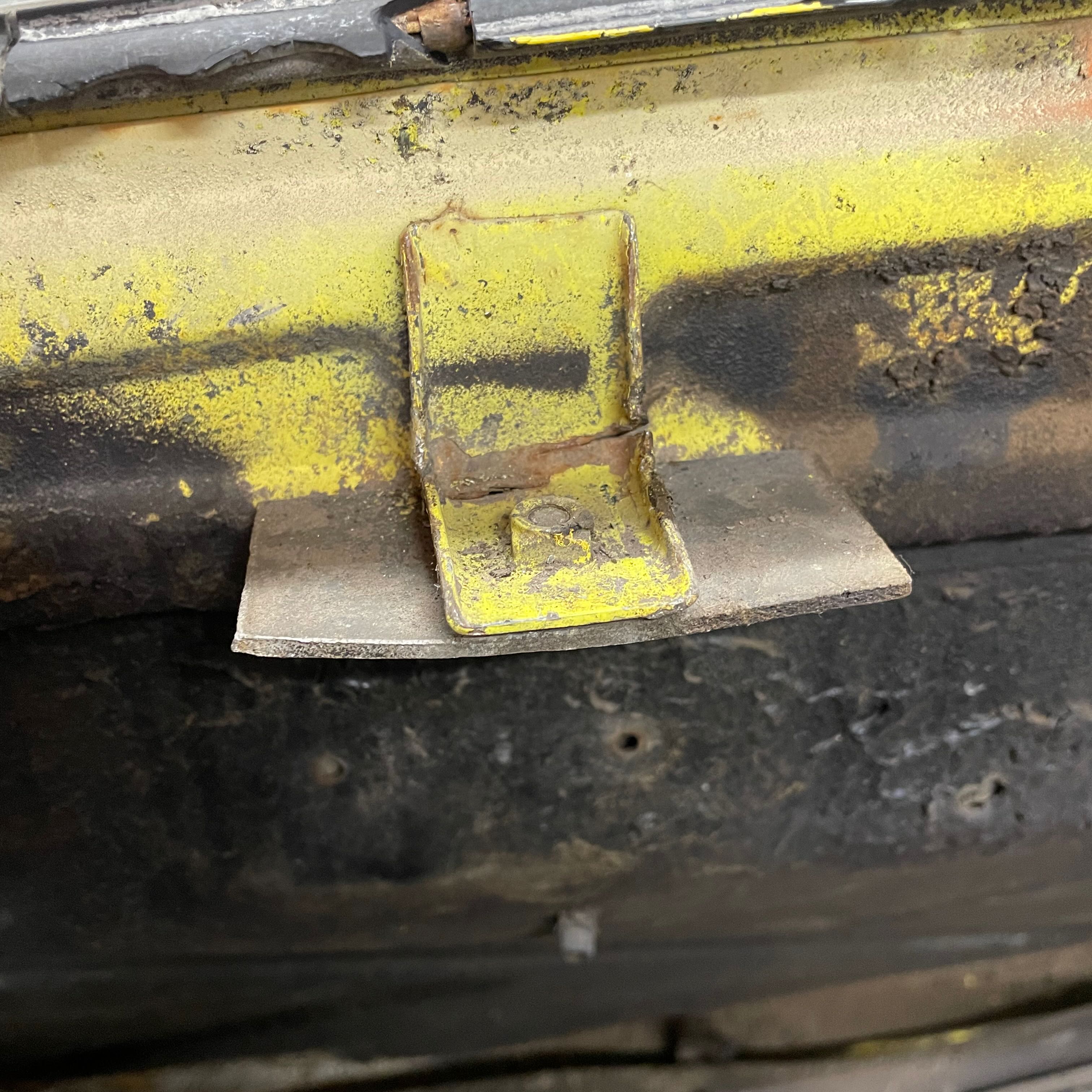 Started preparing to drop the engine for the first time. Removed the engine bay lid and found the brackets damaged and a PO fix of riveting a piece of aluminum angle iron below to keep them in place. That explains why the hatch was always a bit wobbly and sitting low. I may weld in angle iron to replace the brackets themselves - unless they are bolted in behind the seat back. Either way I am not touching this bit until I have the engine out ... New ones are available from RD: https://www.restoration-design.com/store/product/PP343 |