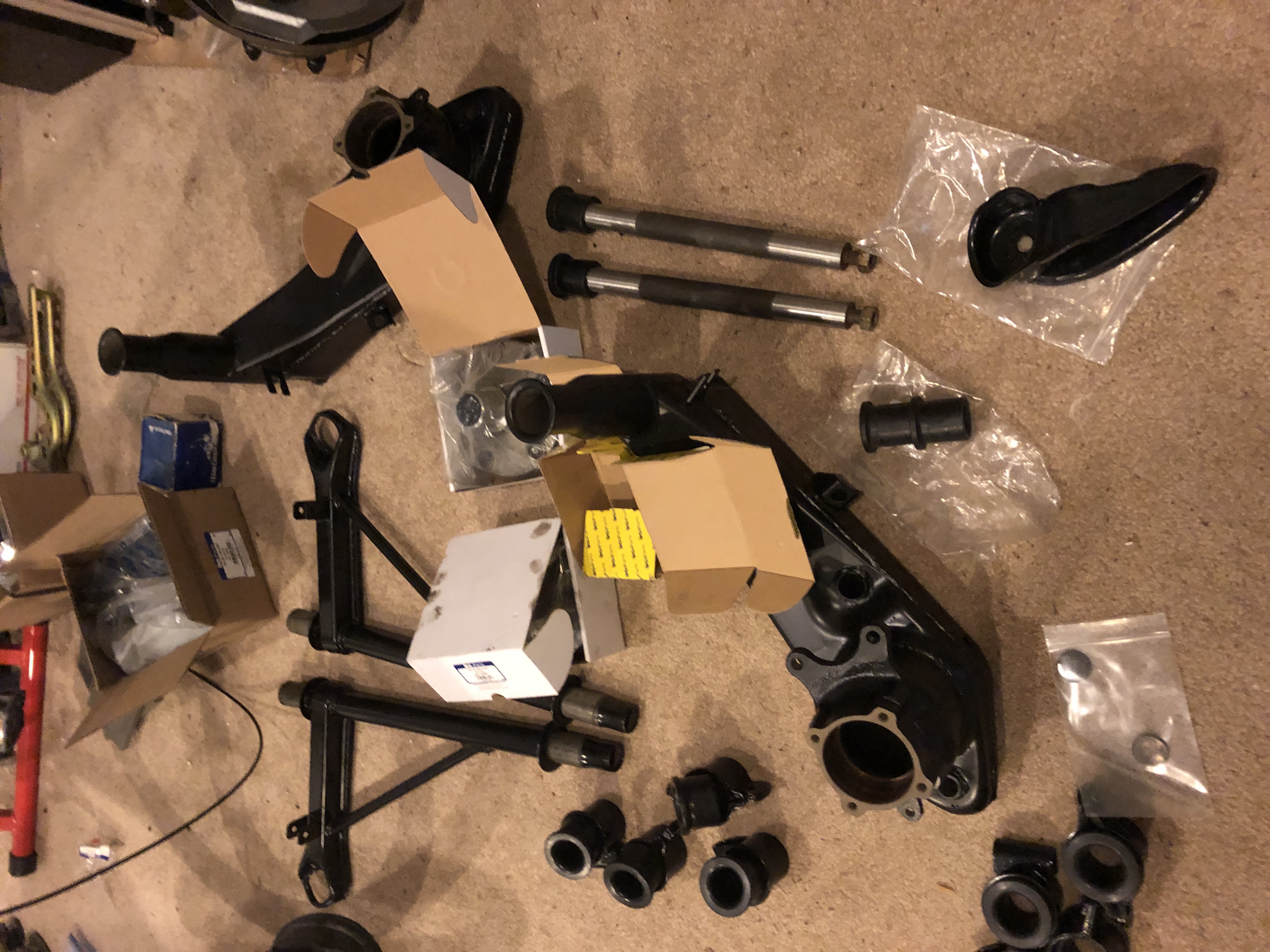 Started preparing to drop the engine for the first time. Removed the engine bay lid and found the brackets damaged and a PO fix of riveting a piece of aluminum angle iron below to keep them in place. That explains why the hatch was always a bit wobbly and sitting low. I may weld in angle iron to replace the brackets themselves - unless they are bolted in behind the seat back. Either way I am not touching this bit until I have the engine out ... After some searching, I see the brackets are still available. Might just try to tack them back together where cracked as they seem tight to the firewall. Just need to remove the bolt very messily welded to the right bracket ... |