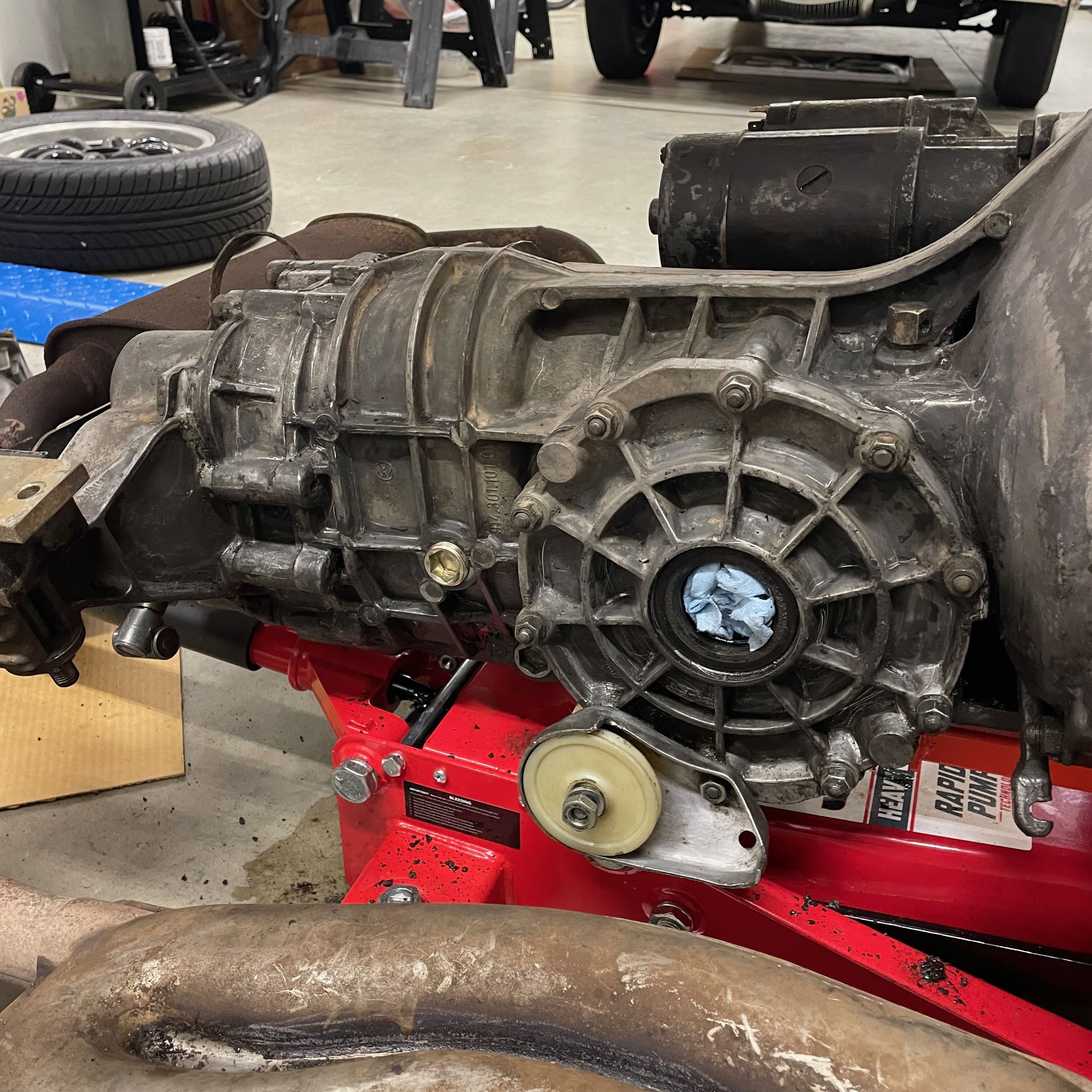 Scrubbed down the engine block and transmission while it is out of the car. 50 year old greasy dirt is no joke!