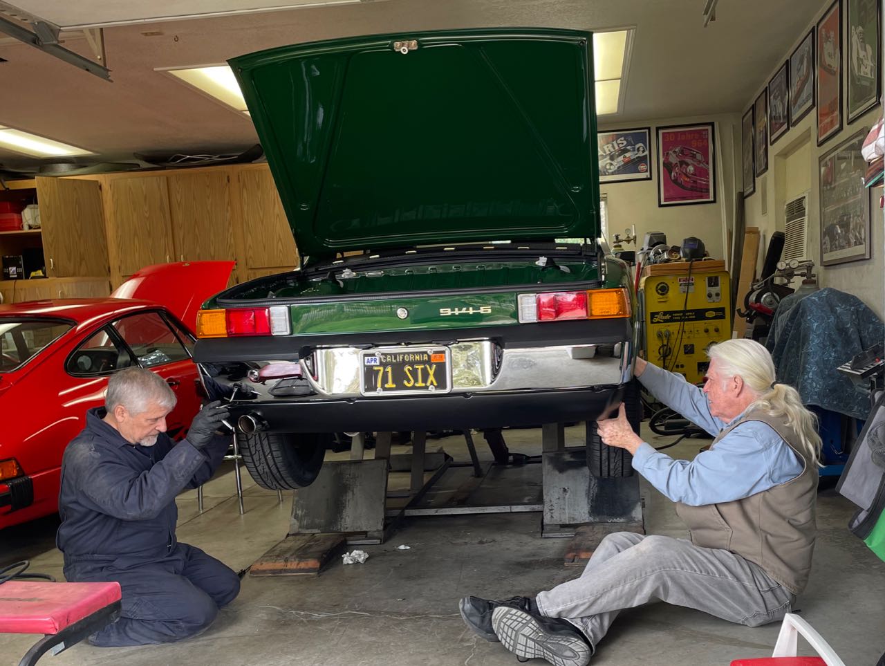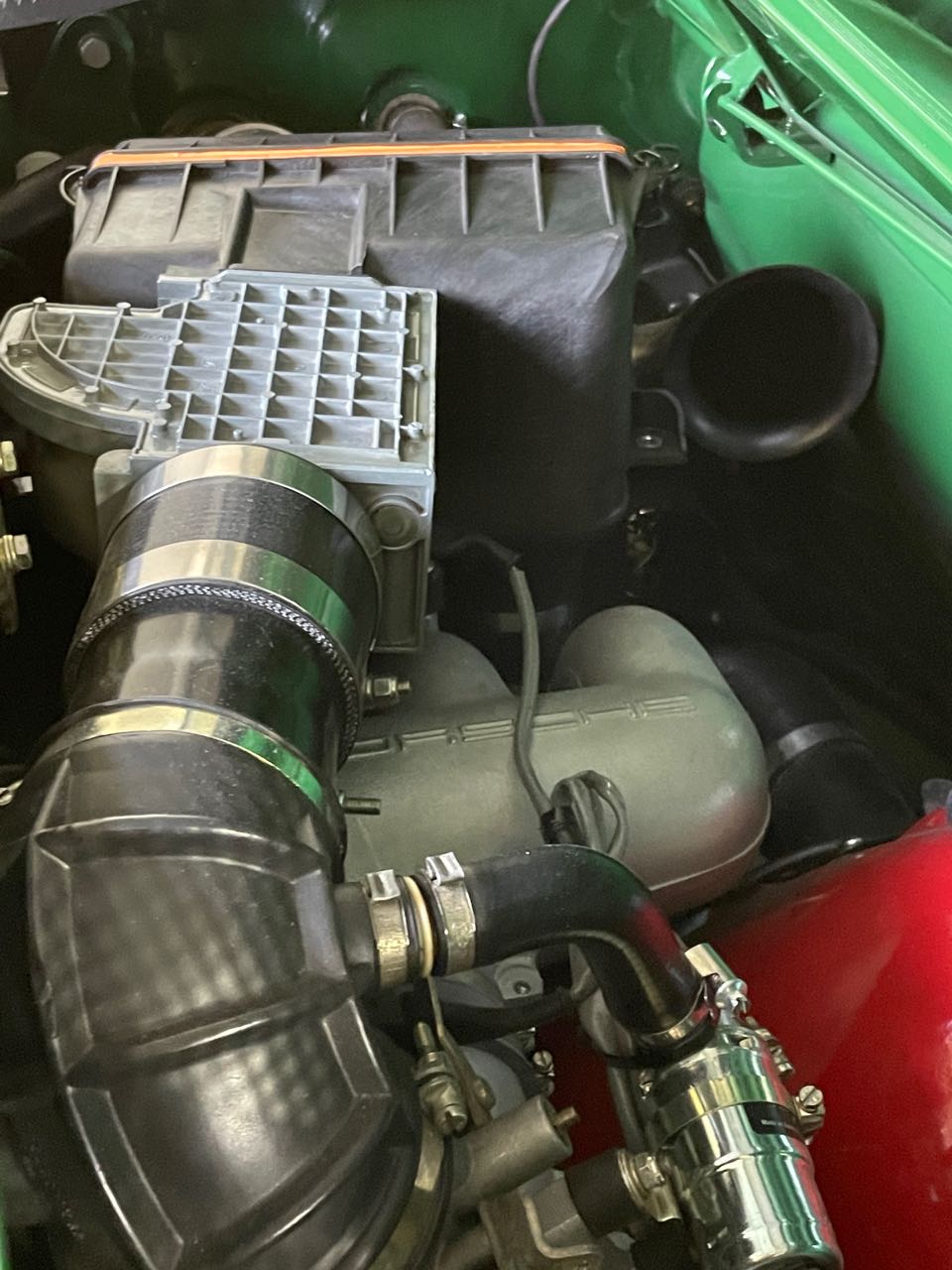 We spent yesterday working on my car. We finally, it appears, have resolved the passenger axle seal leak that would leave a quarter-sized drip under my car when parked. Replaced the seal (again) only with a slightly different seal, and this morning not a drop under my car. Yay!!!! We ended up dropping the rear of the car 1 Bilstein shock spring cup clip in height as it was just about 1/2" too high. Now it sits pretty with a slight rake, the front being maybe 5/8" lower than the rear. That's the way I think they look the best. I want to drive it some more today and really look at it to be sure we are at our final height adjustment. Then I will call the alignment shop to make an appointment to be sure everything is right. We removed the rear valance and bumper as one of my valance attachment points on the body would not hold a screw to secure the valance and my valance was also about 1/4" off being straight. We installed riv-nuts in the 4 holes and used some black allen head screws that look nice and virtually disappear. The other screws were gold cad-plated Phillips screws. Now the valance is true across the width and looks much better. We also, (finally) installed the snorkel on my stock 3.2 air cleaner. I have been wanting to do that for a bit. The air cleaner is now 100% stock 3.2 and appears to quiet the engine down a tiny bit too- of course, that could just be my imagination. Also adjusted both doors as they were proud of the quarter panel when shut by maybe an 1/16". Now they are flush and still close nicely. All in, a great day of fun and friendship. Oh, the guy with the ponytail is HB. HB owns 2 914's- and is currently gathering parts to convert one of them to a 3.2 with Webers.....We hope to be picking the engine up from the machine shop within the next 30 days. Then the fun begins. We did the work at Greg T.'s home in Tracy. Actually, he did the work and I was his assistant. Greg has the Willow Green flared 914 with a 3.2SS motored beautiful car that took 2nd at Werks Reunion this past year. Oh- though the picture of the side profile makes it look like the rear wheel is showing positive camber, it actually is not. Weird. Thanks for looking everyone, Michael (IMG:style_emoticons/default/beerchug.gif) @Cairo94507 Michael that is awesome! soo hard to get these cars leak free!! i just got my motor back in after pulling it to fix yet another RMS leak, ans one push rod tone thst didn’t seal perfectly last time again! so hoping it’s now set- new problem- all hooked up ans tried to start it last night, crank but no fire ugh, and no back up light either (IMG:style_emoticons/default/hissyfit.gif) |
