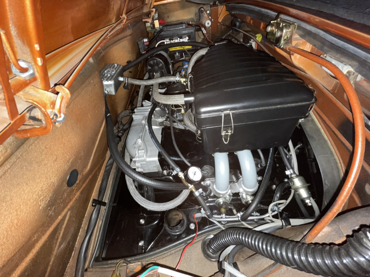 Pulled the motor out of the big six last night.... ![]() Going to replace the leaking timing box on the right side. It will be nice to have a leak free motor. Hi Clay. The duel dizzys are so cool...Any progress on your horizontal cooling system? I have to fix the oil leak first. Then I can start on the new MS3Pro wiring. Here is the rope used to layout the EFI harness on the fan setup. ![]() And the Vacuum block with the IAC and the MAP sensor. ![]() I have been working on all of our other vehicles, so I have not had much time to work on this. The rope harness is still in prototype phase, so it is not final. I am debating on putting the ECU under the relay board. I was going to put a blower fan where the /4 ecu mounted to push air through the heat exchangers so I would have heat. But I don't know if it will fit. I also have to put vacuum ports in the bases of the intakes, across from the injector ports. Having the vacuum ports up near the butterflies would make the vacuum transition rather harsh and cause drivability issues. (IMG:style_emoticons/default/lol-2.gif) Haha, and I'm putting flares on...That is next level cool Clay. (IMG:style_emoticons/default/pray.gif) |