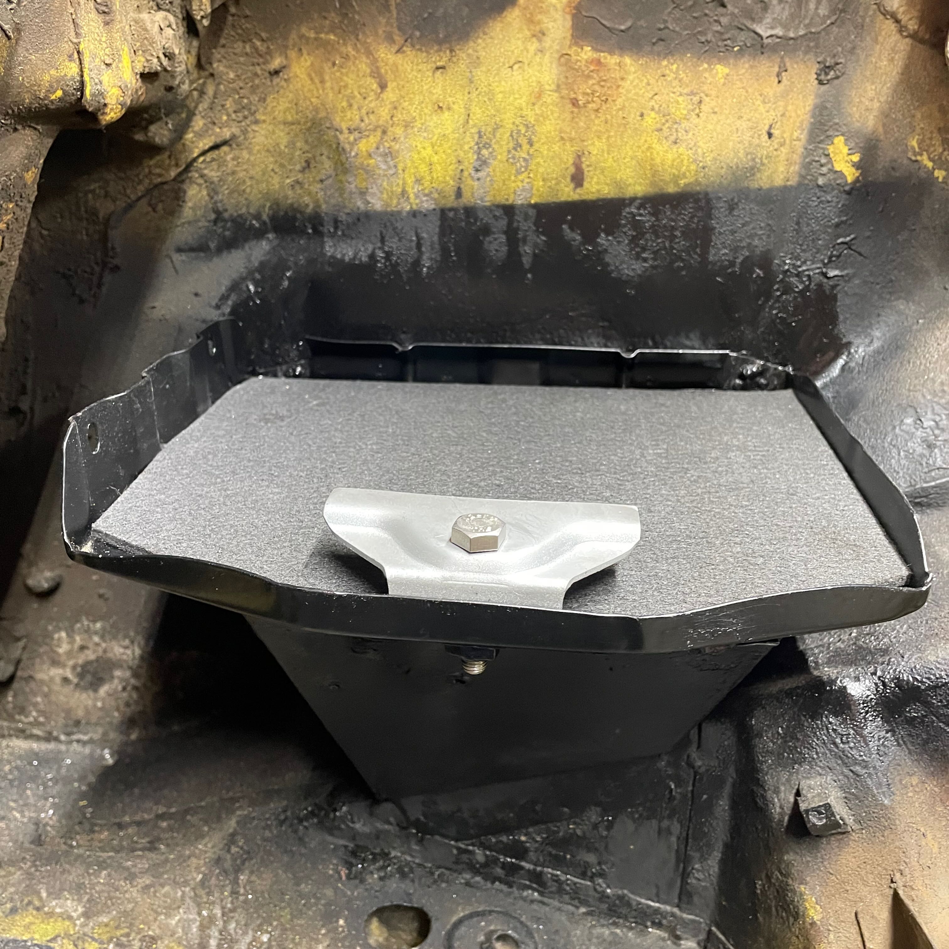 Welded in a new battery tray and brackets for the deck lid. Good thing the brackets are out of sight. They are not going to come off but they are not very pretty. I have mad respect for those of you who can weld. Especially on an old car and considering the contortions needed to get to the back side of things ...