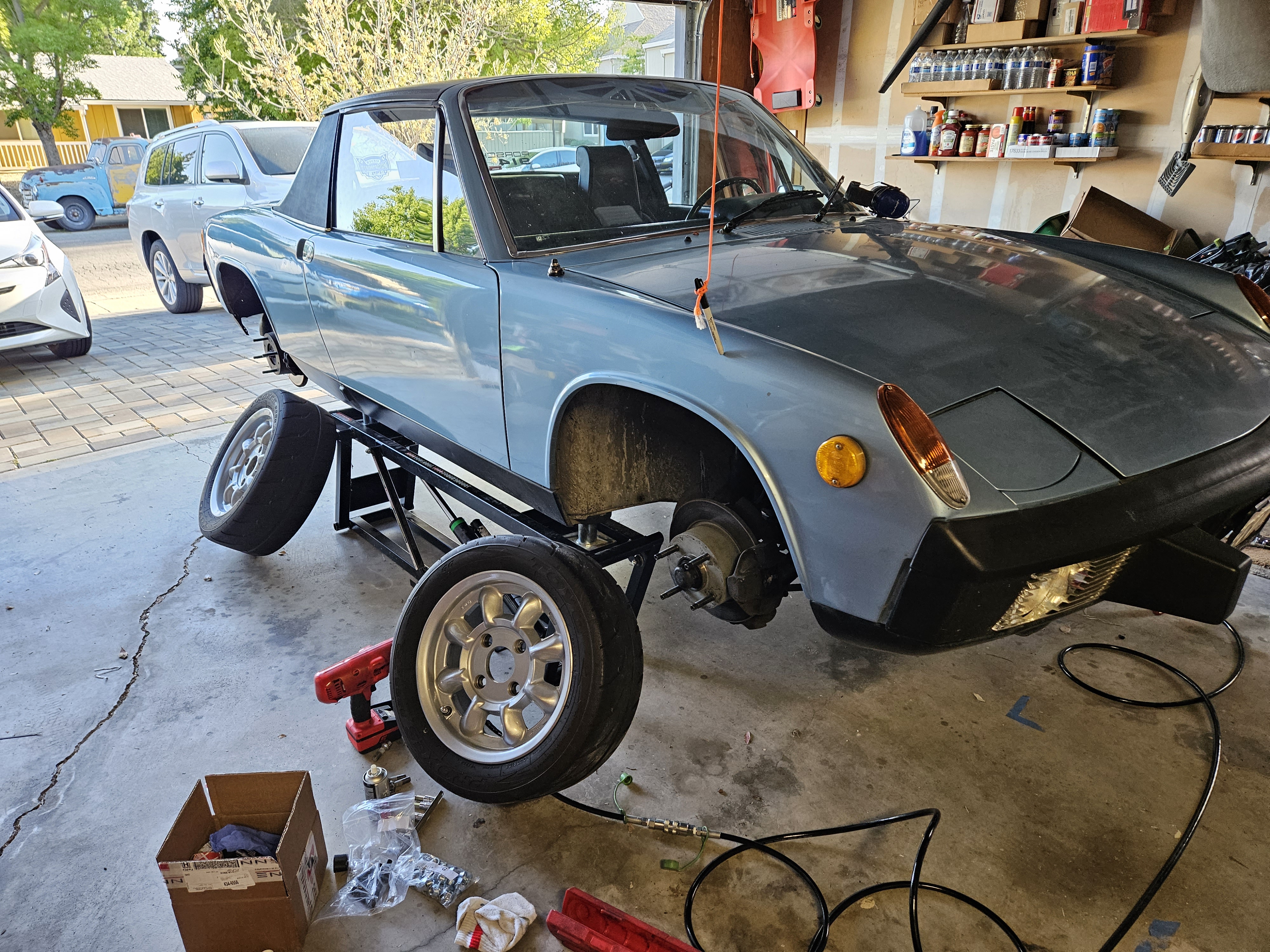 Moved things out of the garage to install my Rennline wheel stud kit so I can use the Minilites I purchased from @stltri .