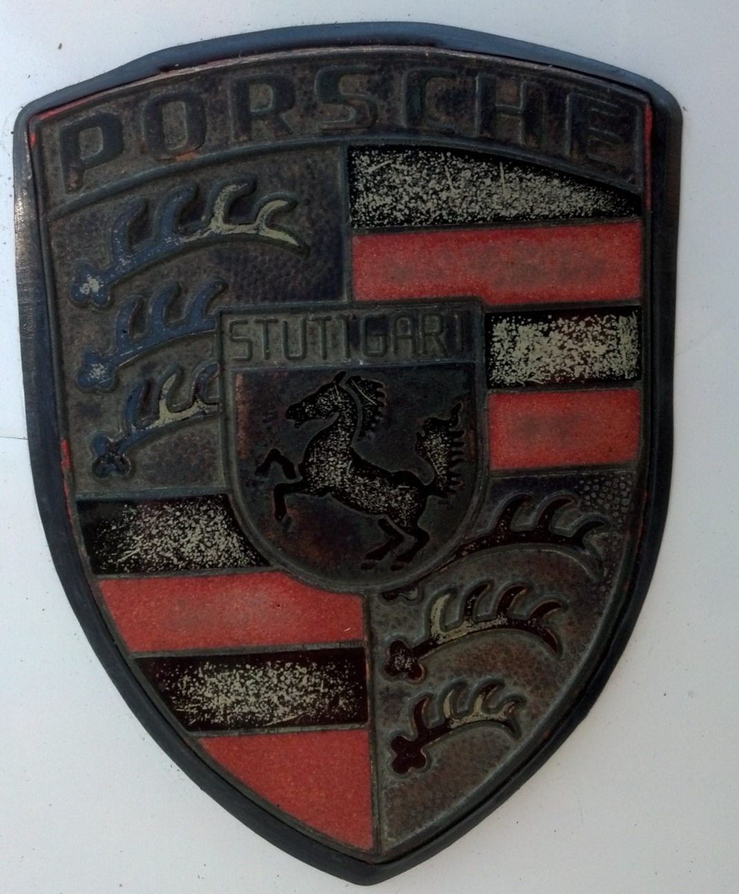 My emblems after 40 years lost their paint and luster. Masked up and painted them with paint I got from Pelican Parts. I used this paint earlier on my steering wheel horn button. Also painted Targa latches. Matches perfectly.
