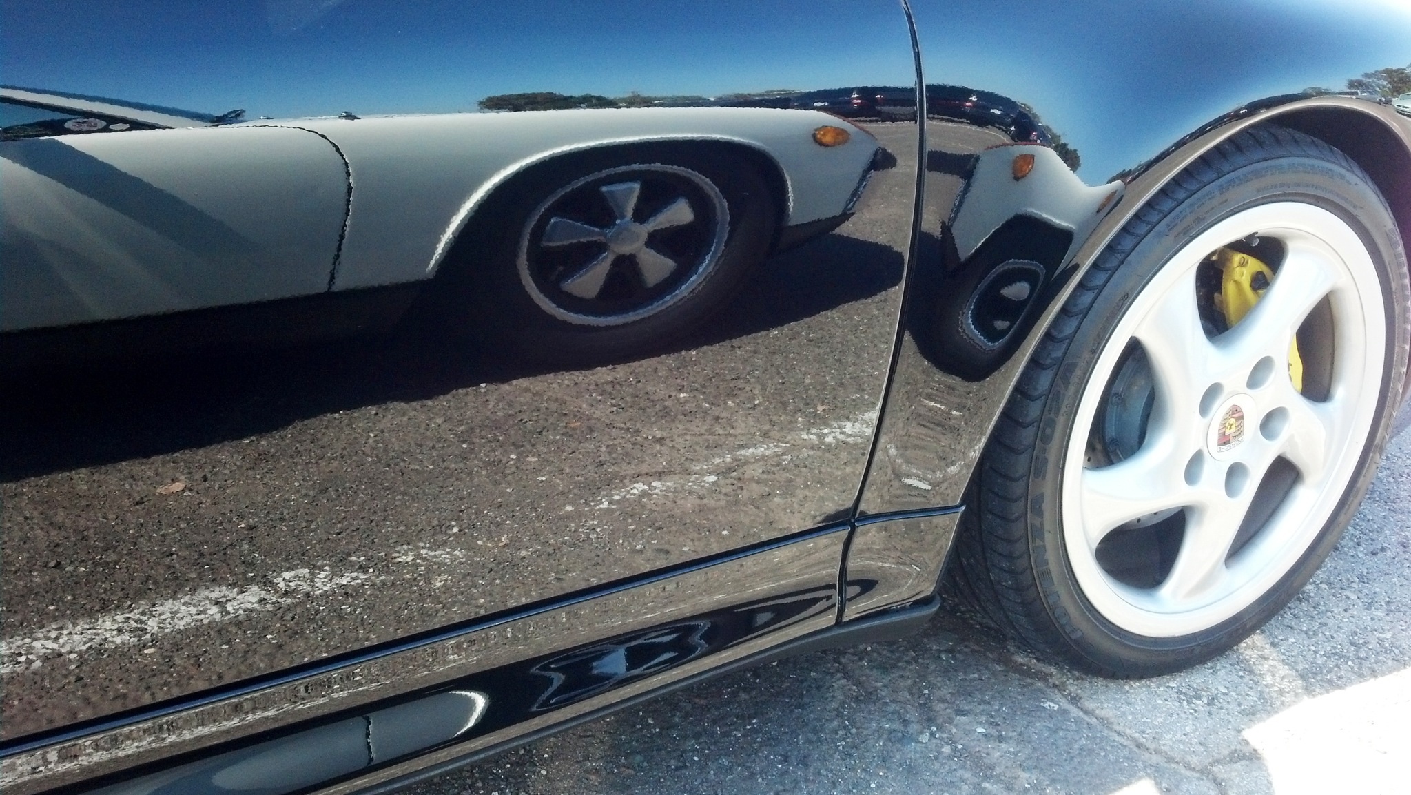 Mid-trip inspection... nothin' wrong but brake dust noise. Wheels back on and drive. Turns out the guy behind the counter at a local FLAPS had had both a 924 and a '74 914 in the past. Wishes he hadn't sold the 914... never heard that before.