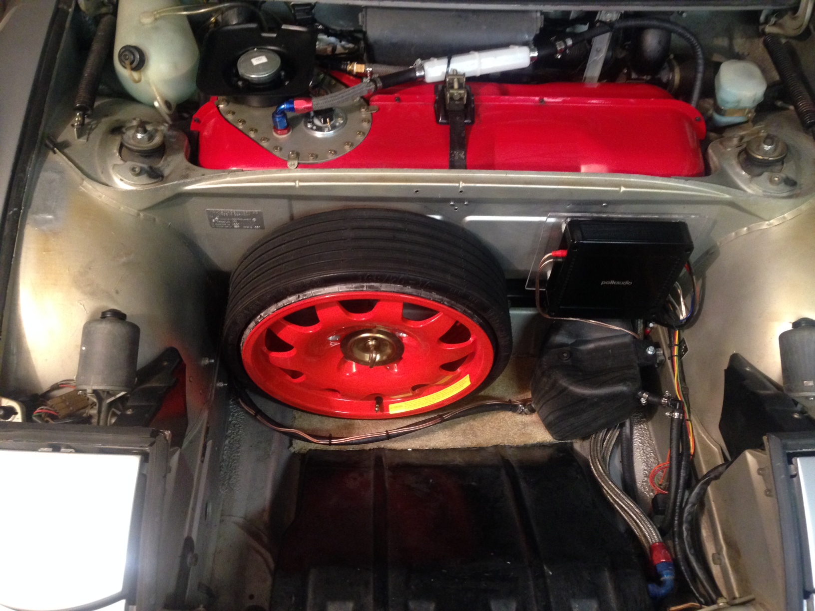 1. Moved 3.2 fuel pump back to stock 75 location 2. Added 911 3.2 charcoal canister and related components to PMS Fuel Cell. The 3.2 charcoal canister is located in right rear GT Fender. Hopefully this will get rid of the fuel smell. 3. Added Stereo Amplifier. 4. Replaced steering coupler. It didn't look too bad, but I don't trust any rubber on the car that is original. The steering does feels a little tighter. 5. Fixed front trunk latch. It opens night and day better. I reran the cable and used silicon lube. It used to be harder than hell to pull the release under the dash. |