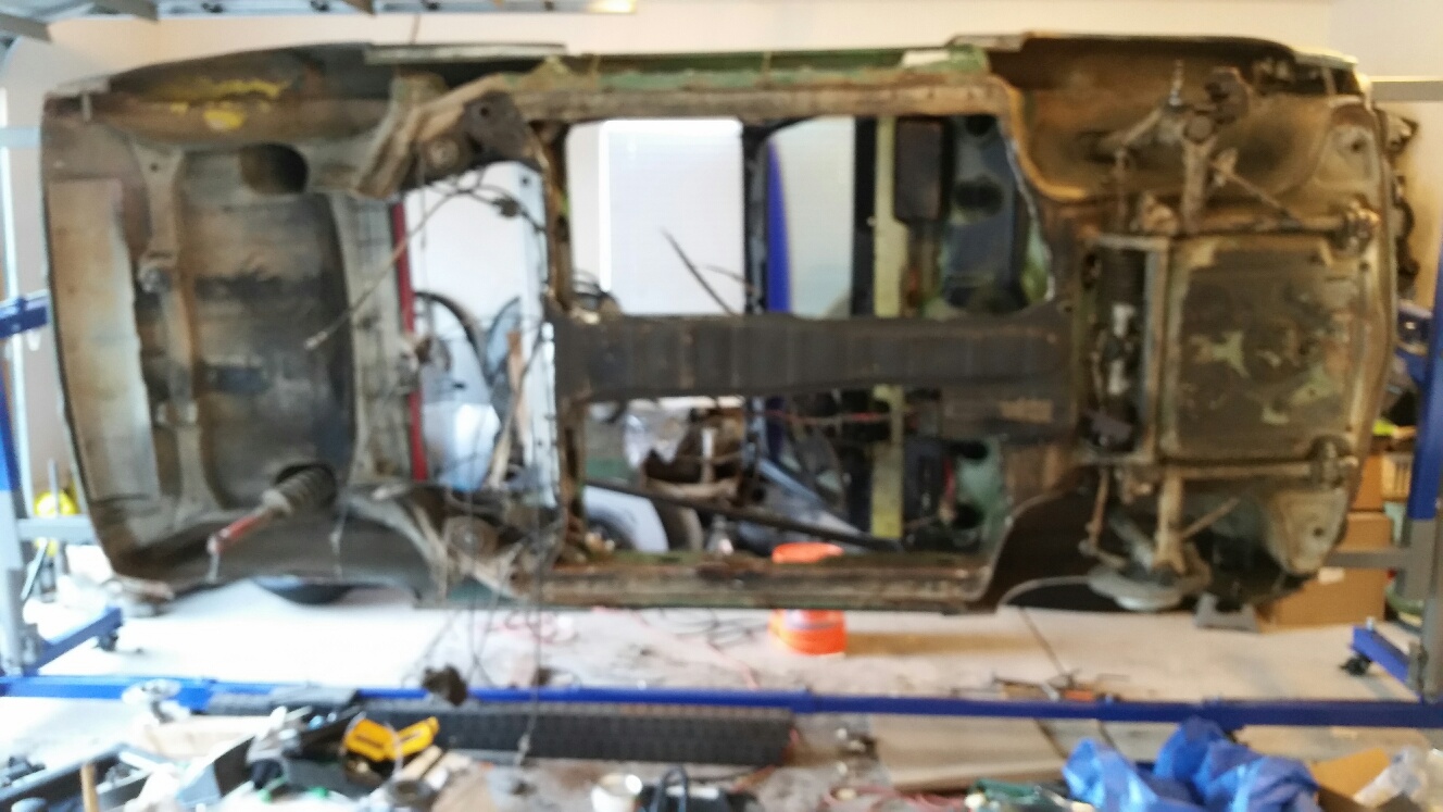 Nice Clay...! I cut it out before I had to do "the Freddy" - I still don't have the legs for that quite yet. The longs are good, a little surface rust on some other parts, but for the most part she's very workable. It's nice to have this view of it now and see what I've really have to get done and explore the history of the car a bit. She was hit on the r.r. at some point because the last half of the rear fender is yellow - it's originally an Irish Green car. Lots to do but a much better idea of what it's gonna take.