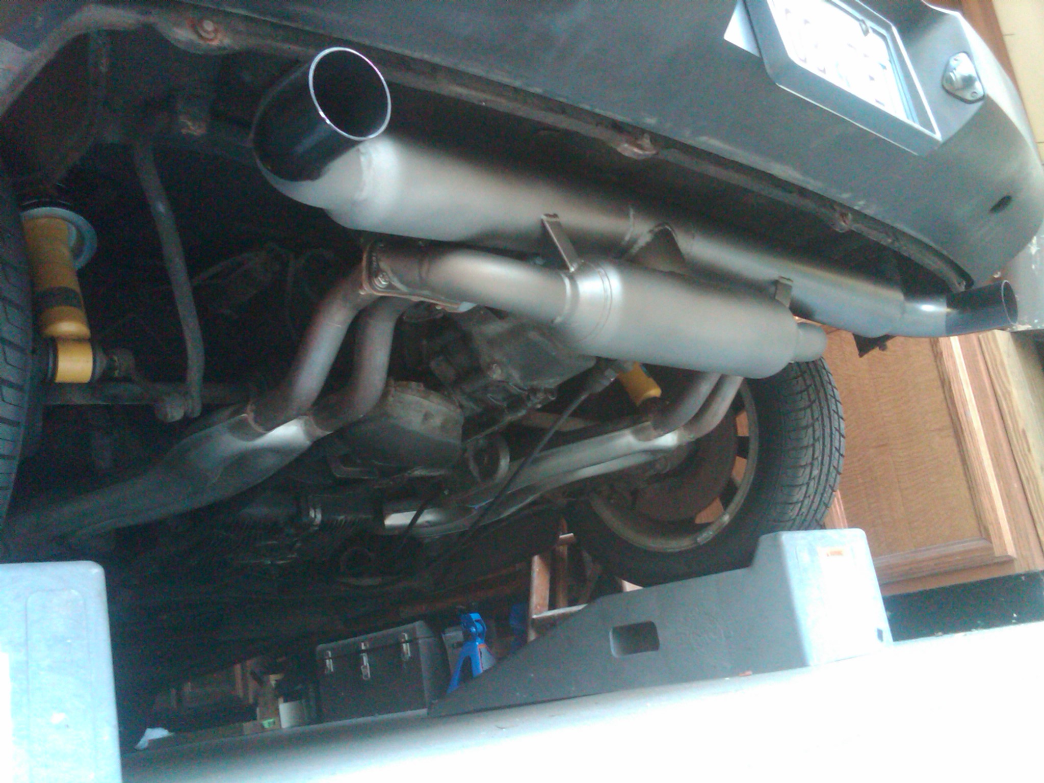 Ok, its installed and it was easy as pie...Everyting lined up perfectly and it looks great. I took the valacne off for now, but it needs to go back on for the cleaner look. I am nervous on the notching part. Im thinking of wussing out and taking it to a fabricator who can make the notch and be able to roll the sheetmetal like the other side. It does sound like a big 4. You're going to love that thing. I love mine. Best 914/4 exhaust I've ever heard.Just a thought, is there a fiberglass alternative? I feel a litle easier cutting fiberglass instead of the metal and may explore that idea. Anyway, the sound! WOW! The prior header/muffler had a higher pitched "raspy" sound, which was nice, but the Triad has a much deeper, mellow tone and "growls". I wont say it sounds like a six, but it sounds like a big four! So far, so good. ![]() |