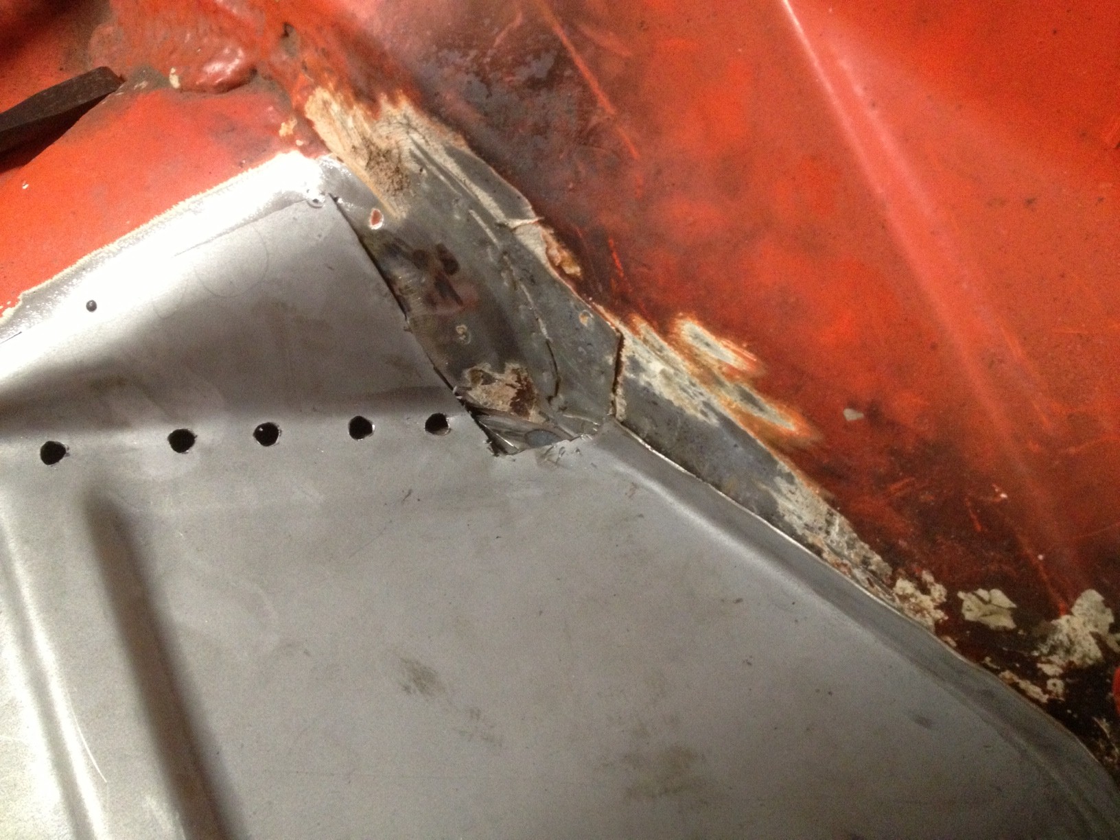 Last night I was able to do the final fitting of my rear trunk. I'll wind up butt welding some of it but adding a flange on the straight part across the trans support. The Restoration Designs part fits great.