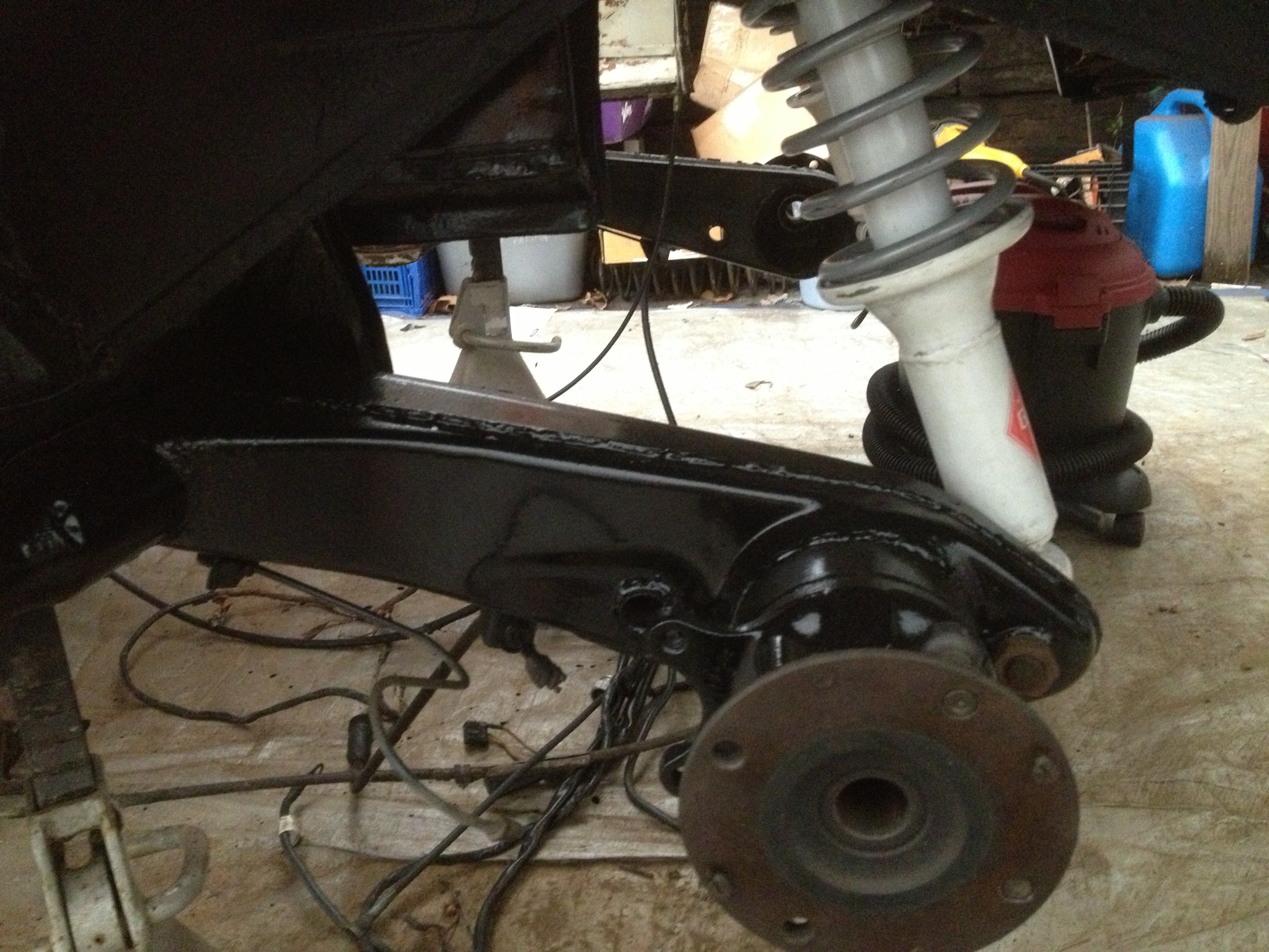 Putting the suspension back together so she'll roll back to Scotty B's for final paint!
