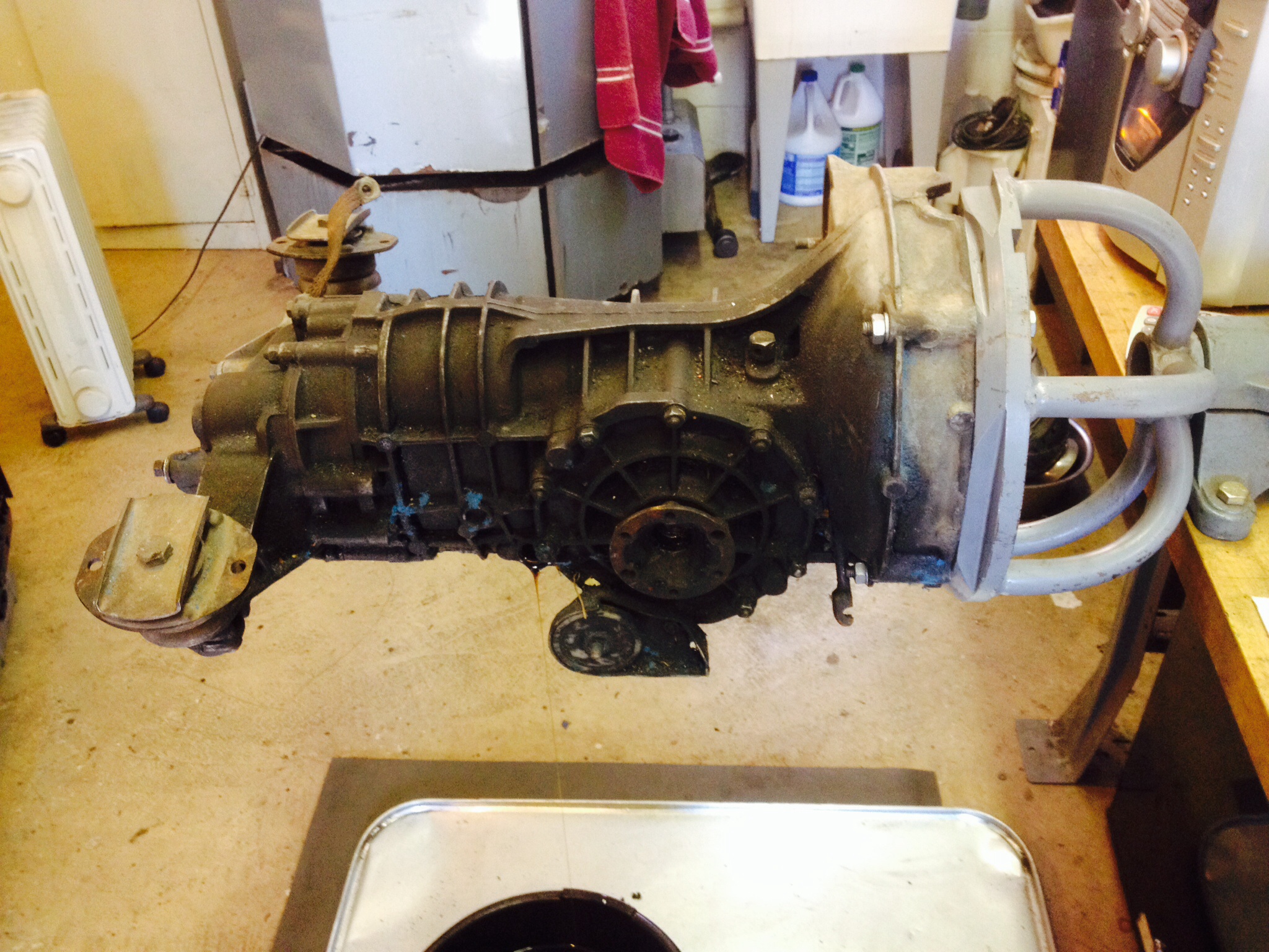 Started my transmission rebuild Friday. My amigo Eric gave me a hand. I had the tailshift that came with the car and a sideshift i bought from a member here (who's name i will not mention, you'll see why....)