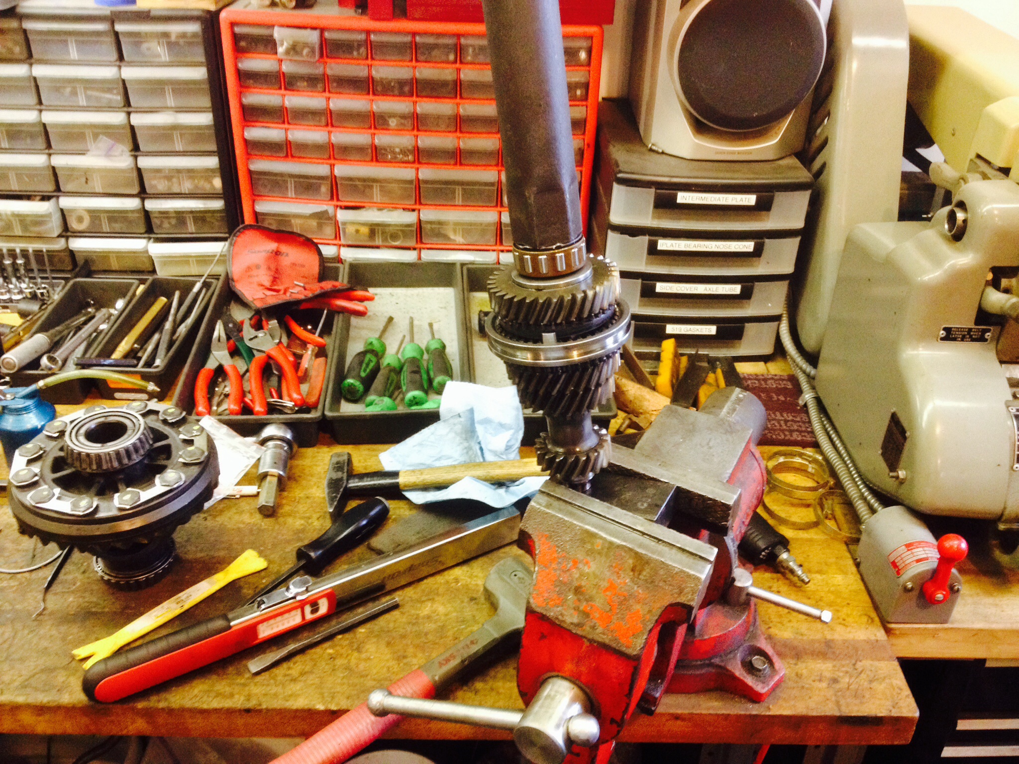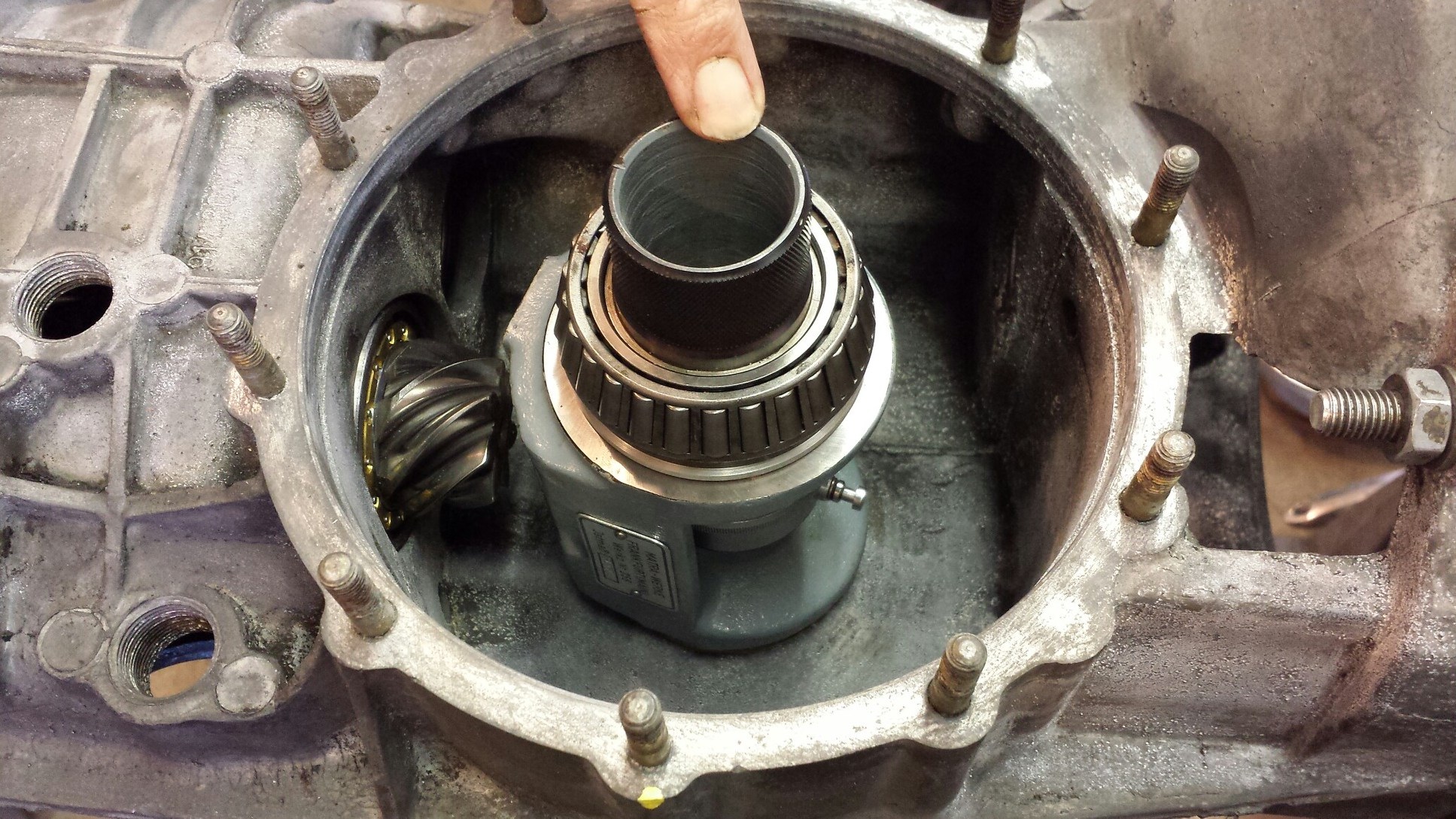 Transmission build continues. We did the pinion depth setting. The pinion and all gears were installed with a single gasket. The setting was checked with a factory tool and dial indicator. It was .20mm to far in. The gaskets are .25mm thick so we added a second gasket. It came up perfect.