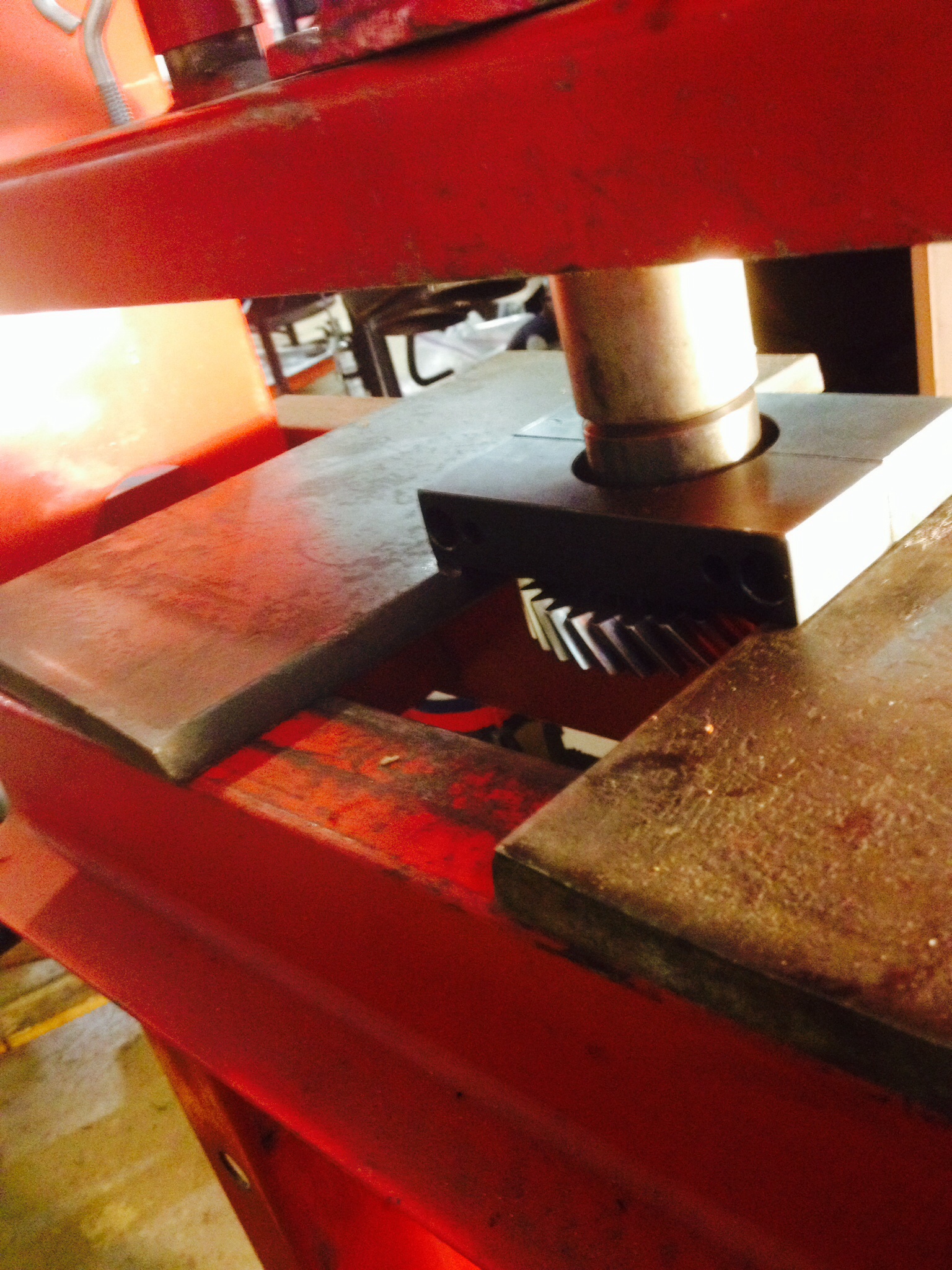 Then the gear can be pressed out. This tool will also work to install the slider and gear back together. |