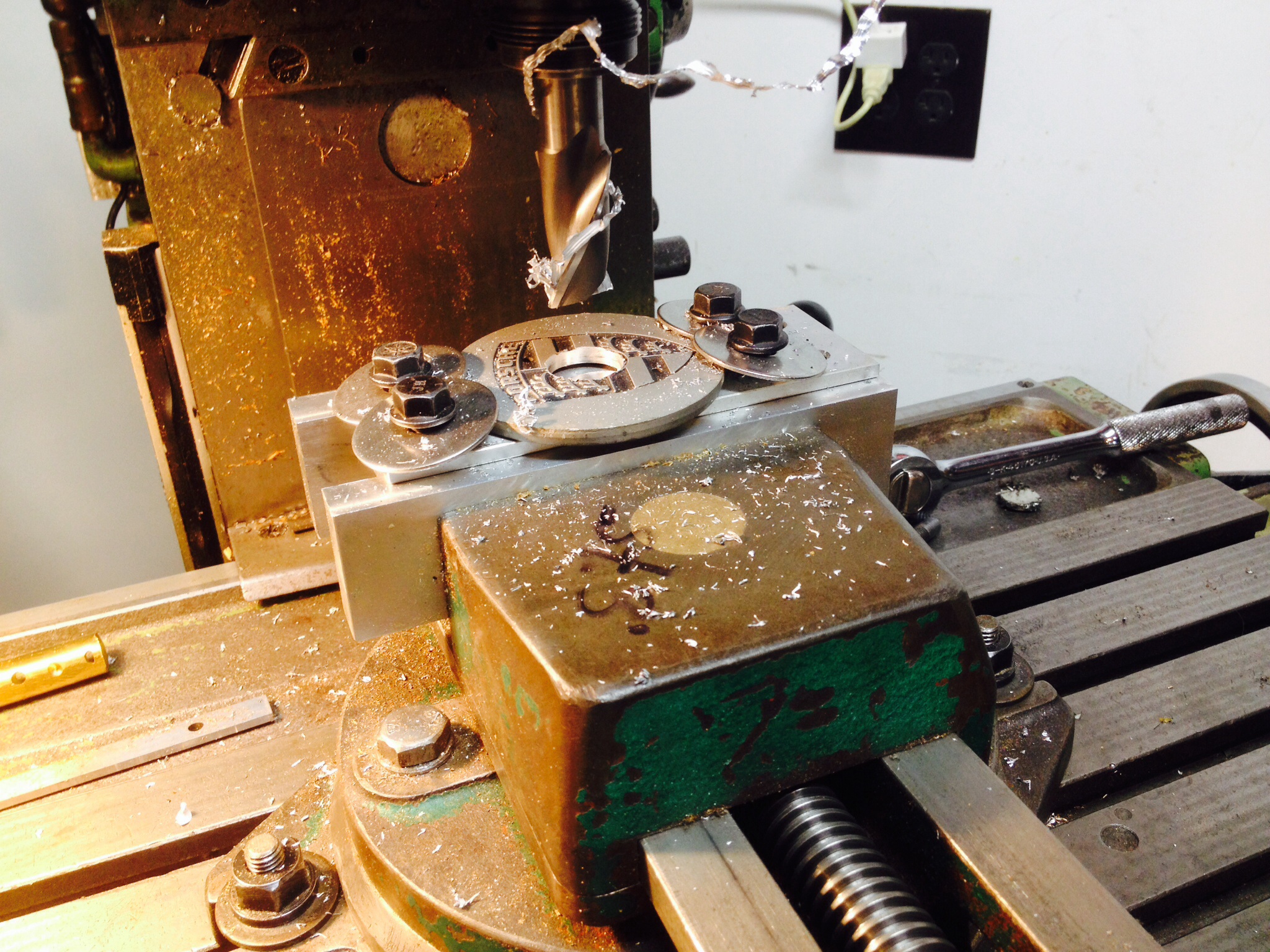 This tool approximates a diff and uses the same bearings. A dial indicator is held inside that can be seen inside the hole. It bears on the tip of the pinion shaft. |