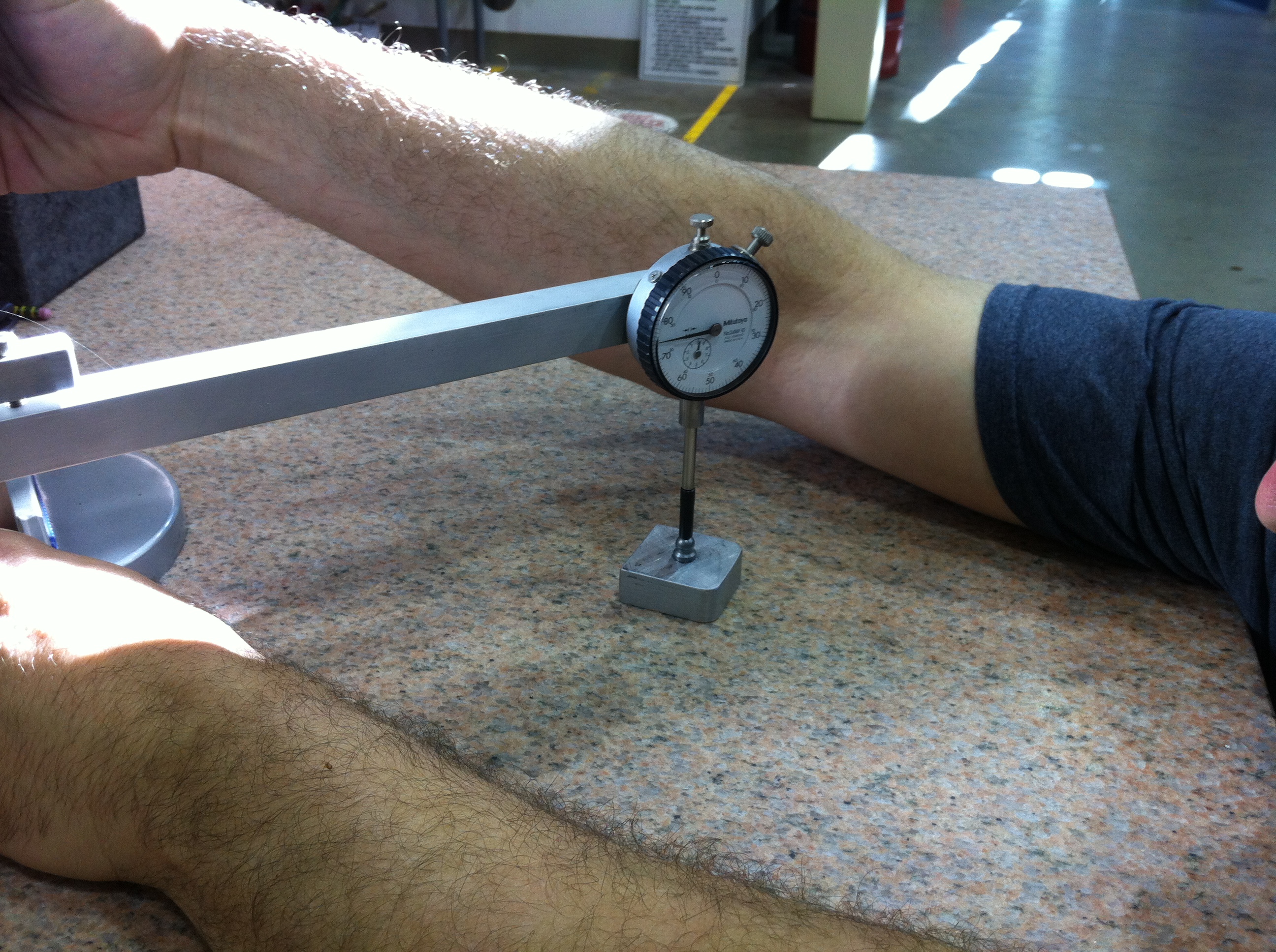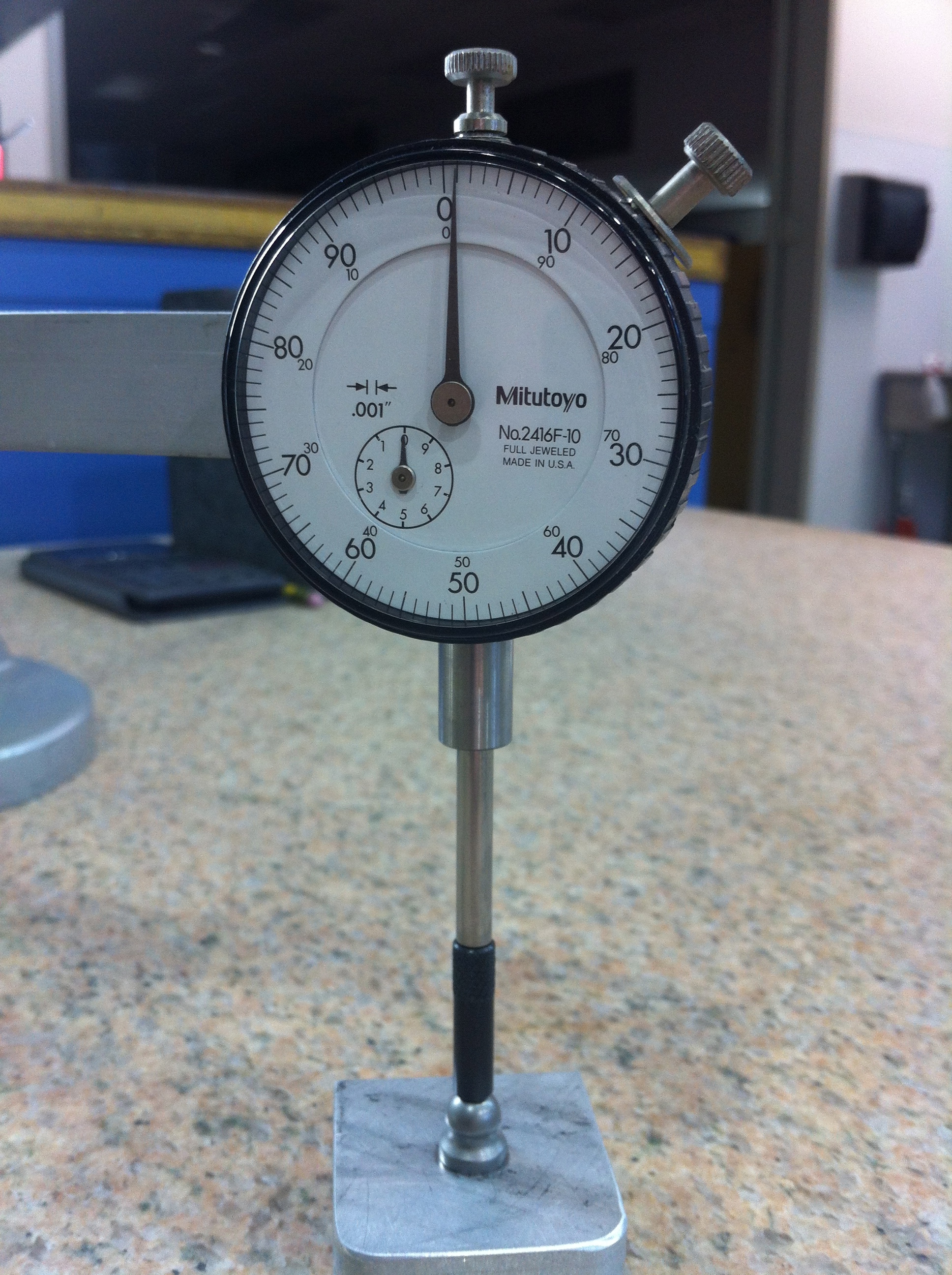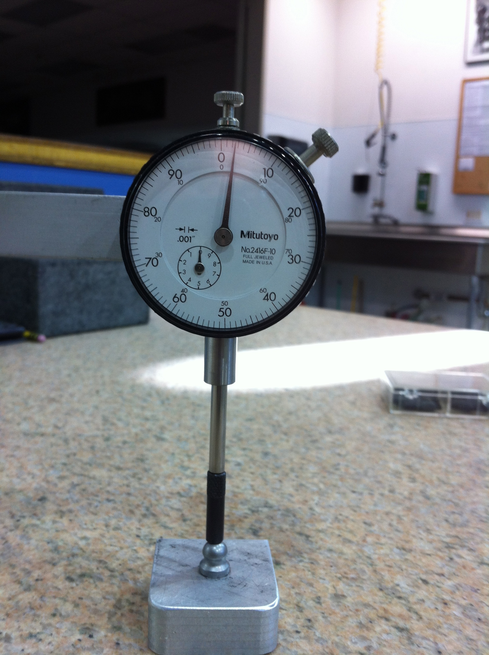 Nah... The rig is designed for telescopes and is on a flat table. The table is accurate to .001" across the *entire* surface and the tool plate is accurate to .001" across a 3' length. This micrometer rig is over $10K and I can't even guess what that huge hunk of rock of a table cost.