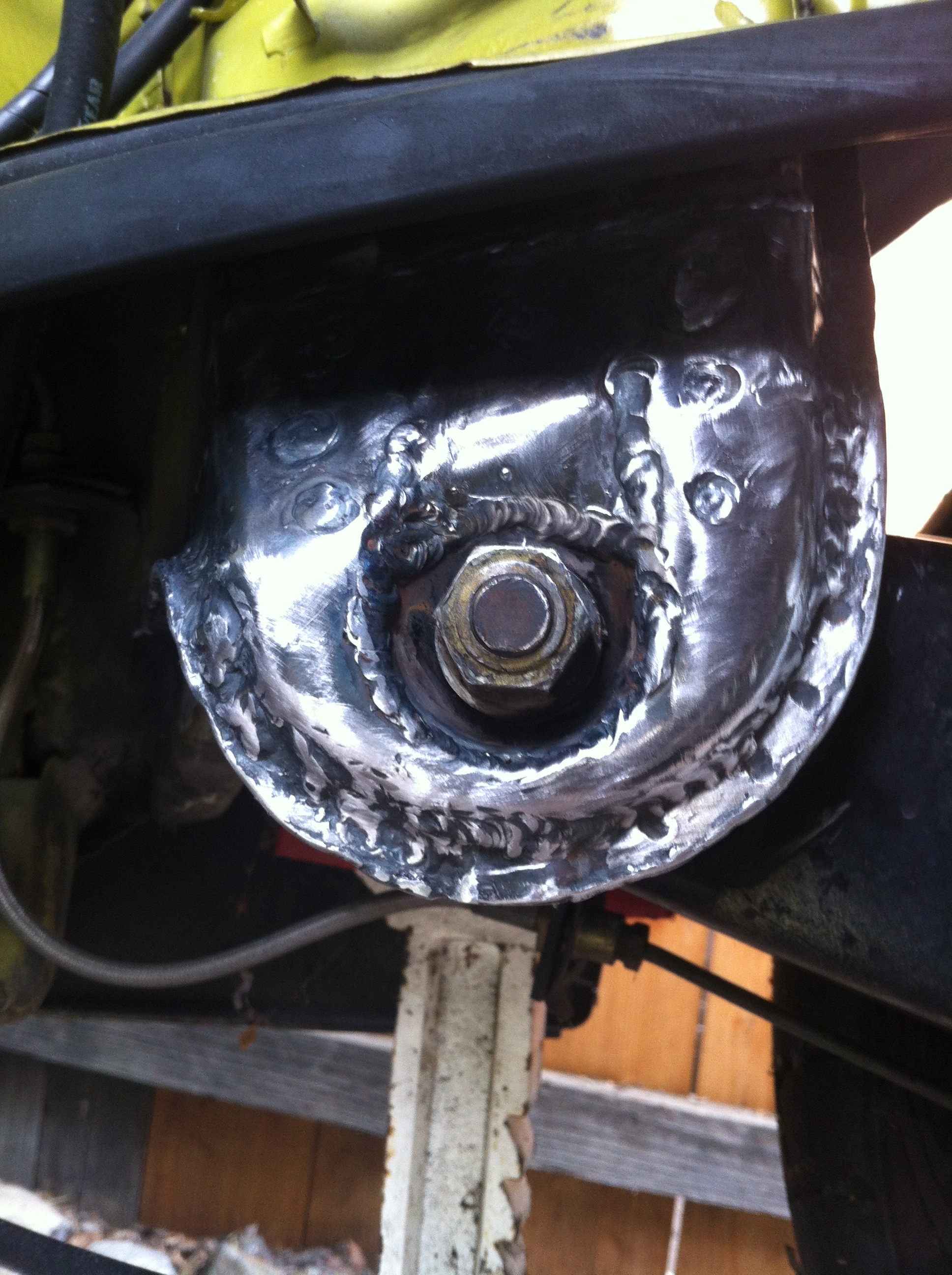 Luckily the metal behind it was absolutely perfect. I was starting to get concerned due to running high spring rates (and wanting to go higher) along with DOT-R tires. Here it is painted: We did both left and right sides with a TIG and in addition seamed welded as much of the ear as we could reach. |
