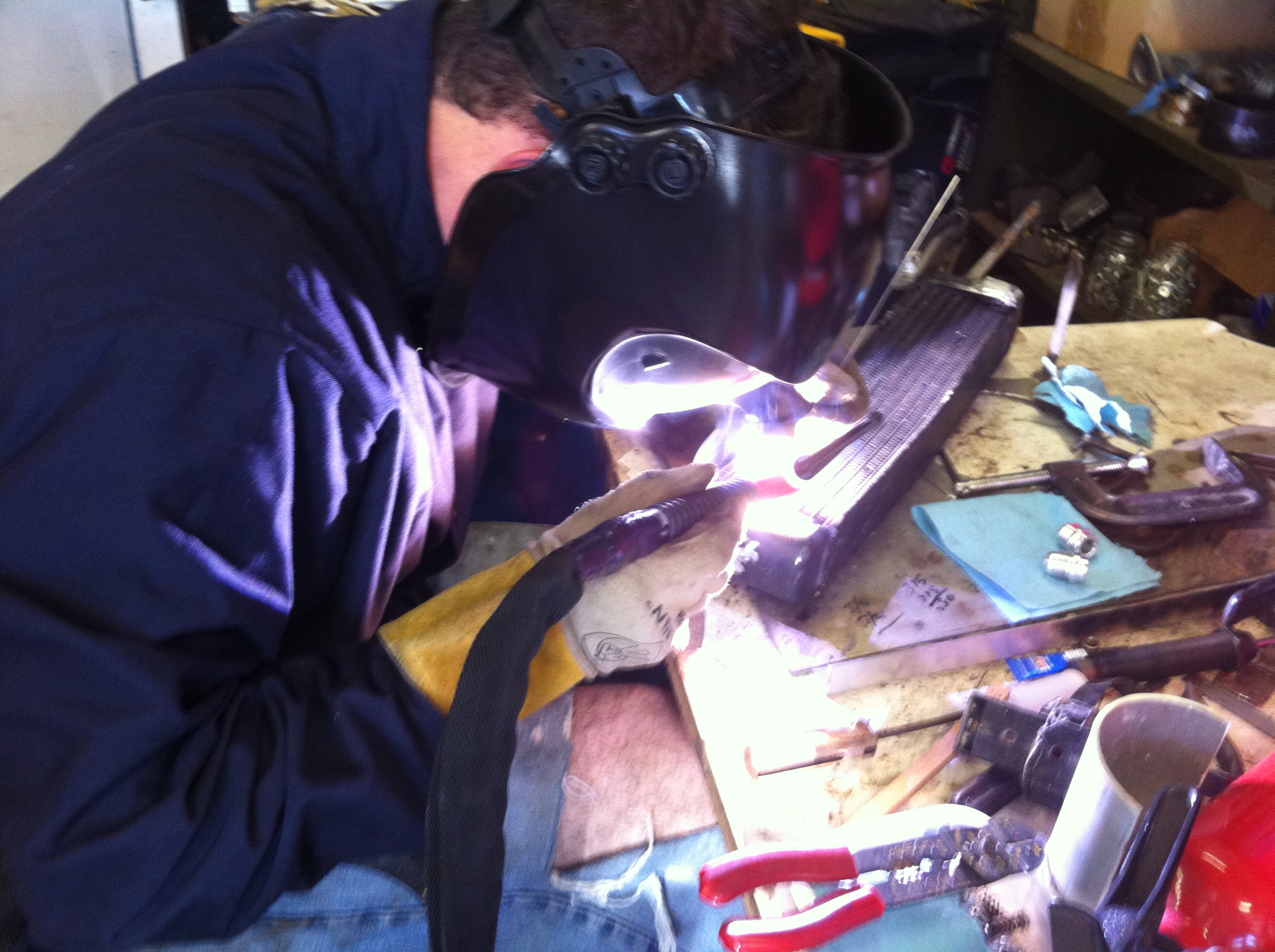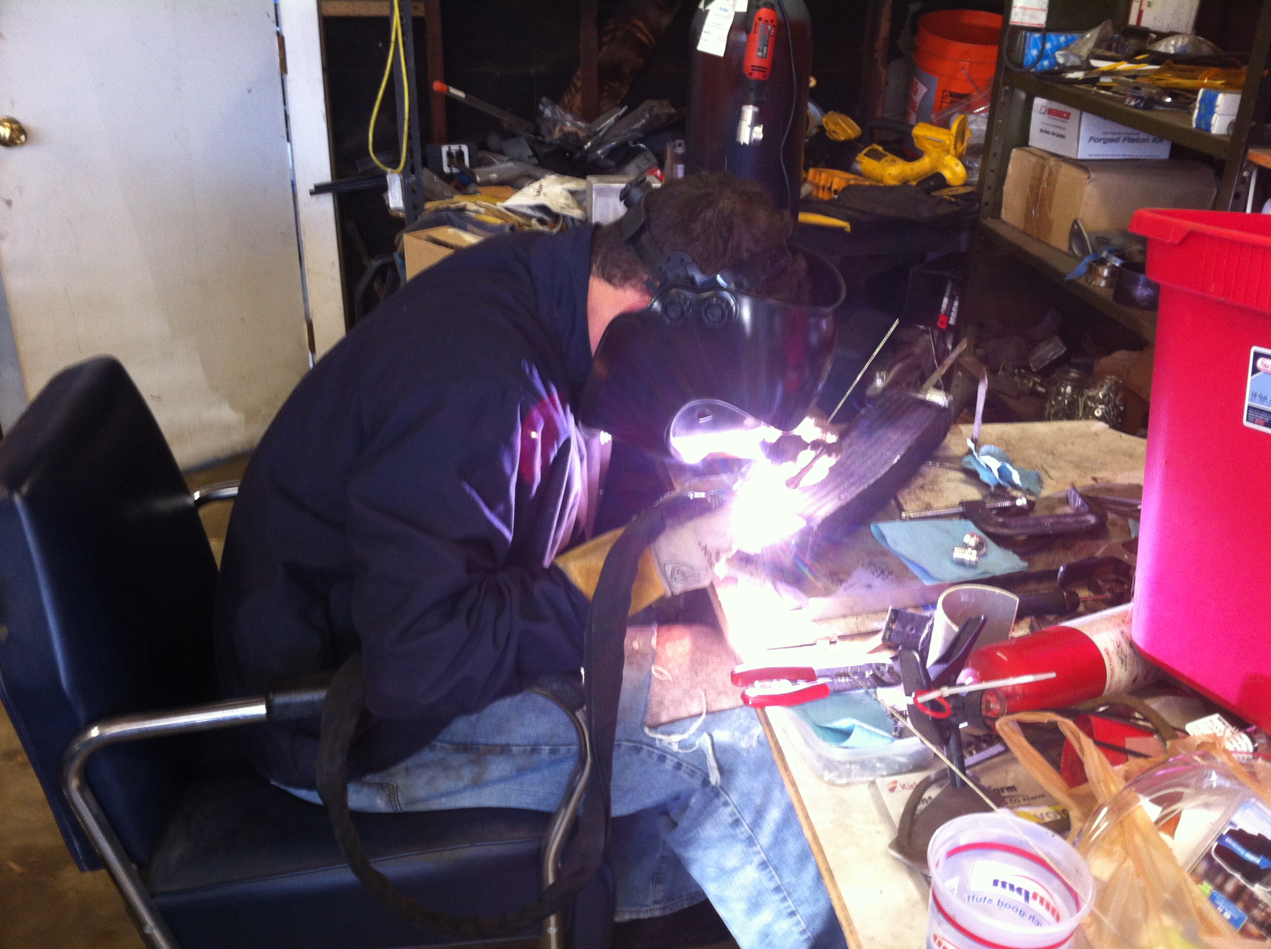 While not quite part of the engine build I thought these interesting. Here is a picture of Chris' inner suspension console reinforcement piece all welded in: