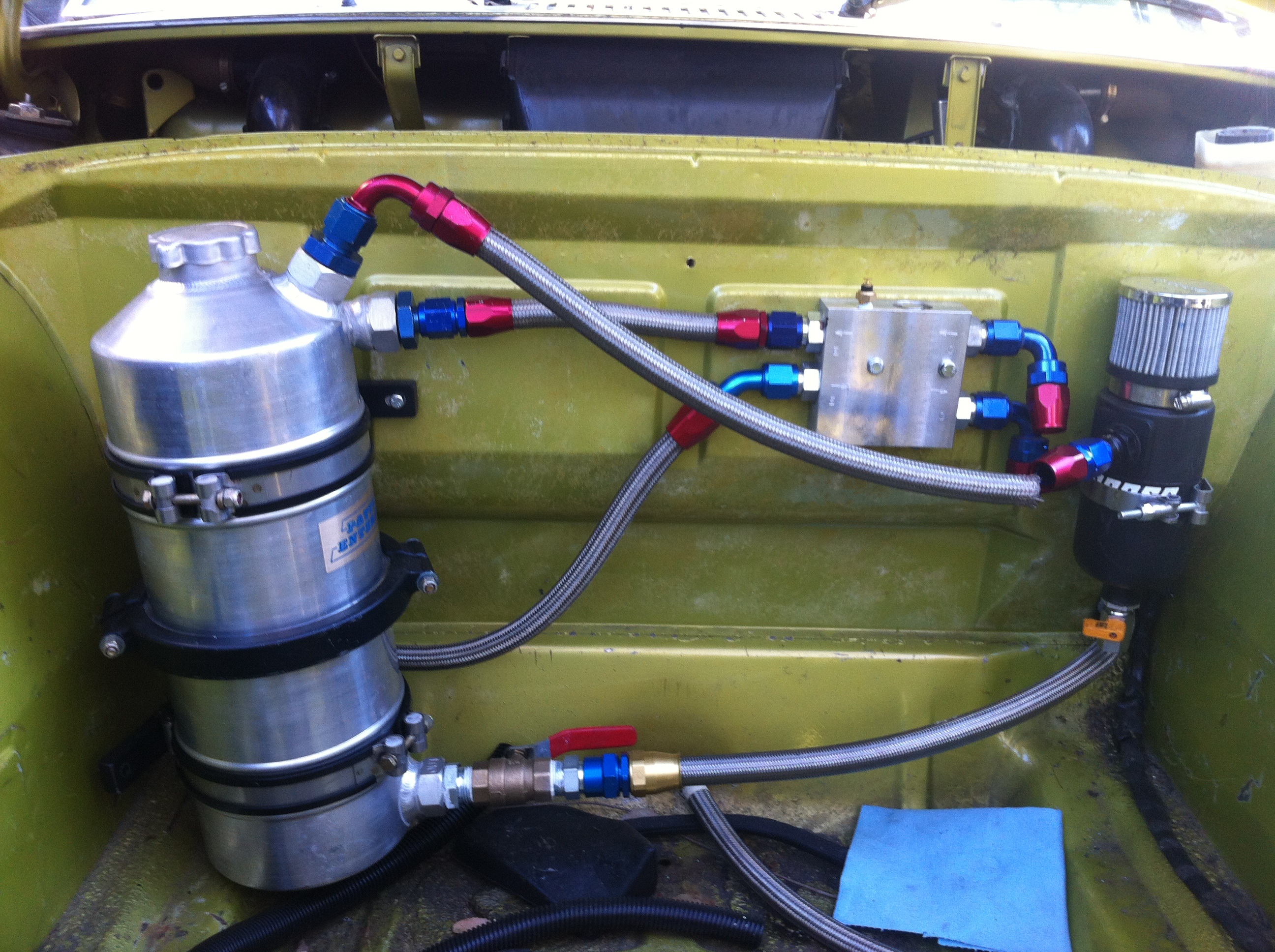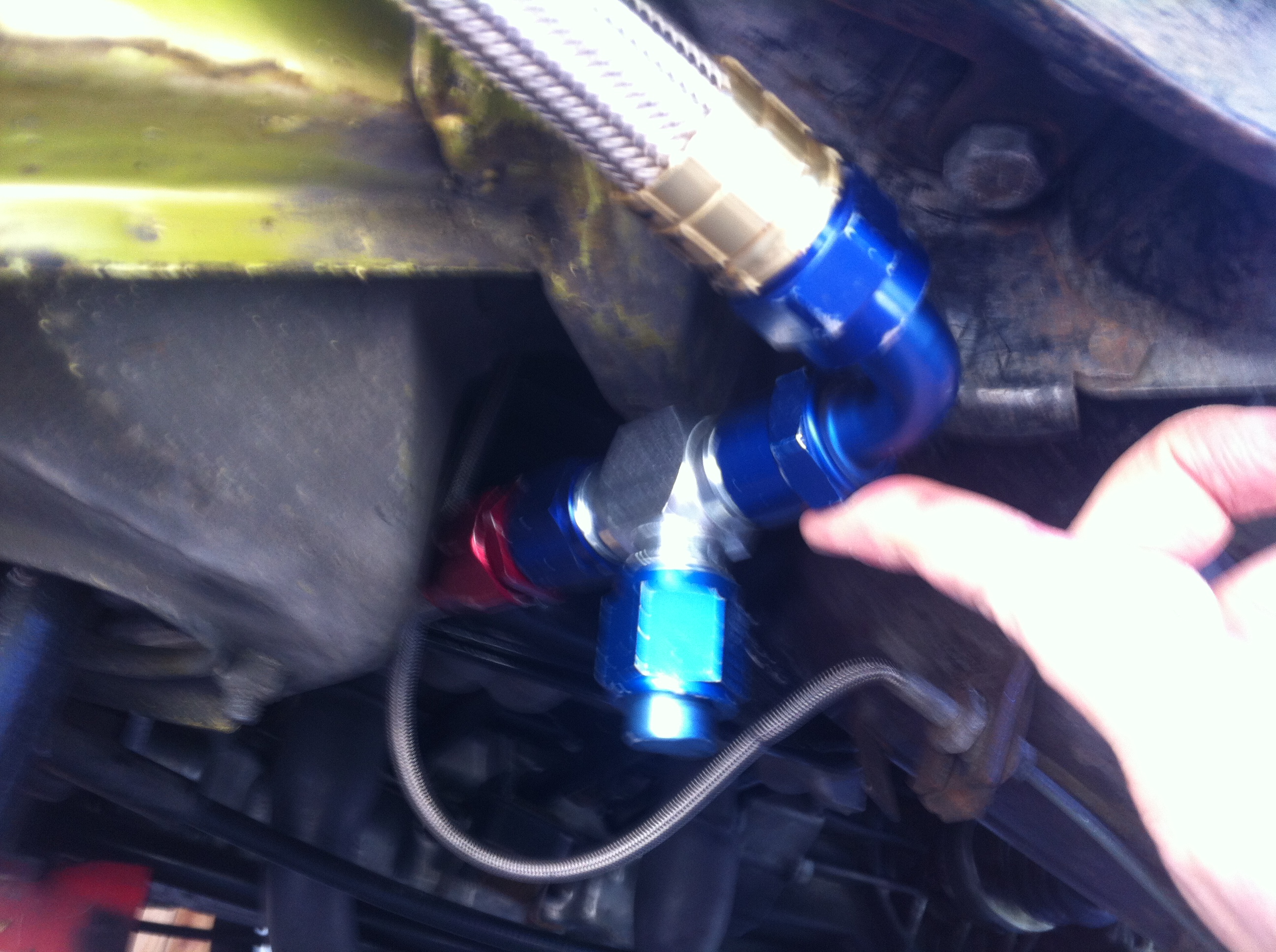 nice yeamag. i did the same thing with the T fitting it makes oil changes a snap. I'm using the same thermostat also. i chose that one because of all the ports for the sensors. cool project....