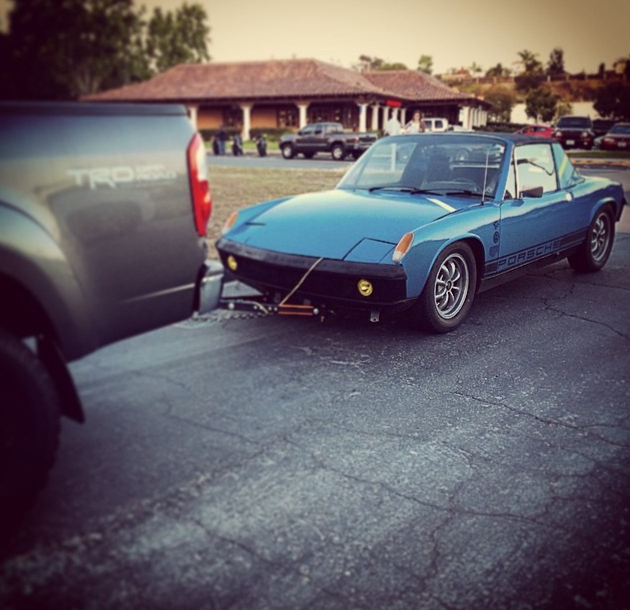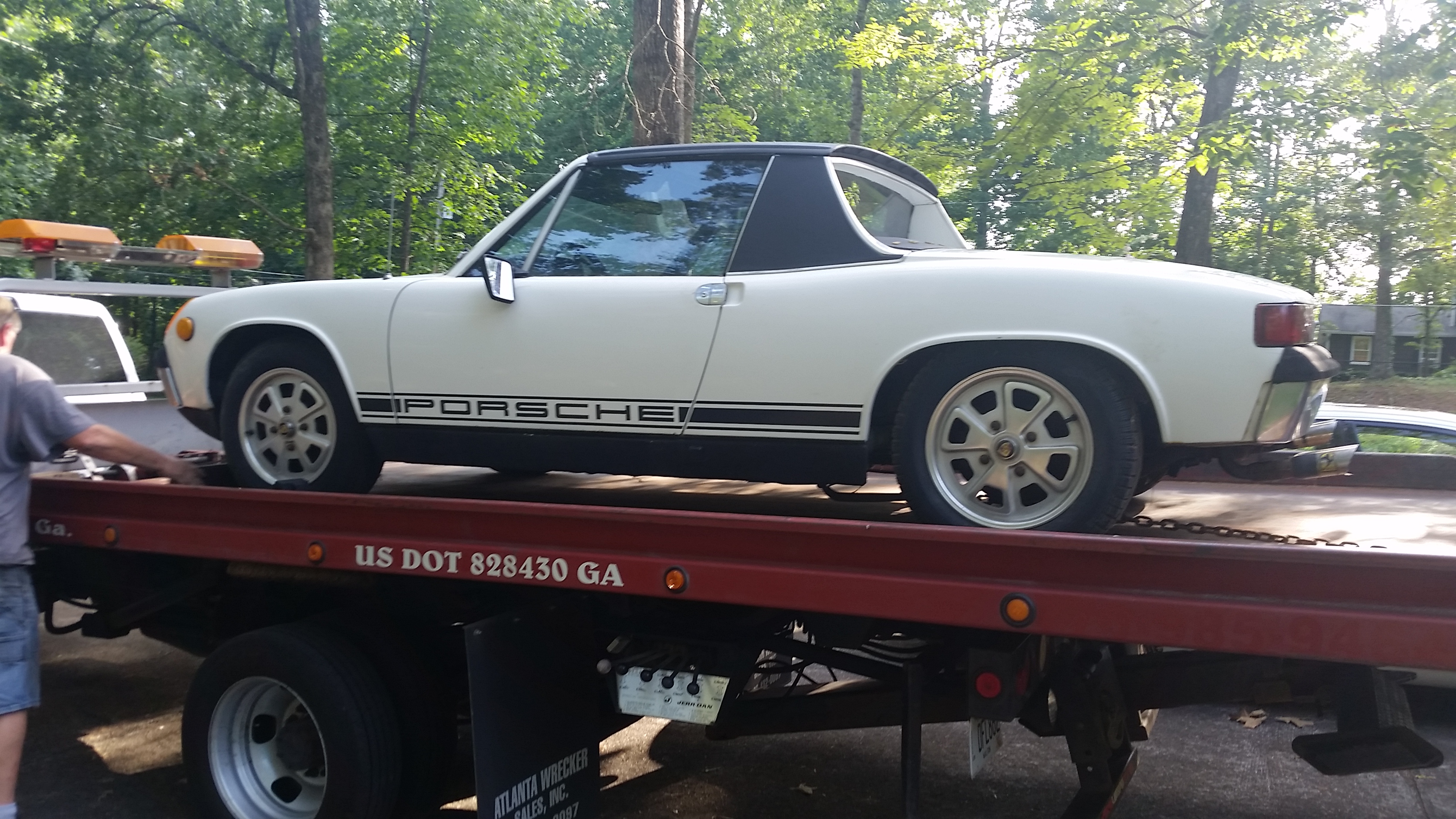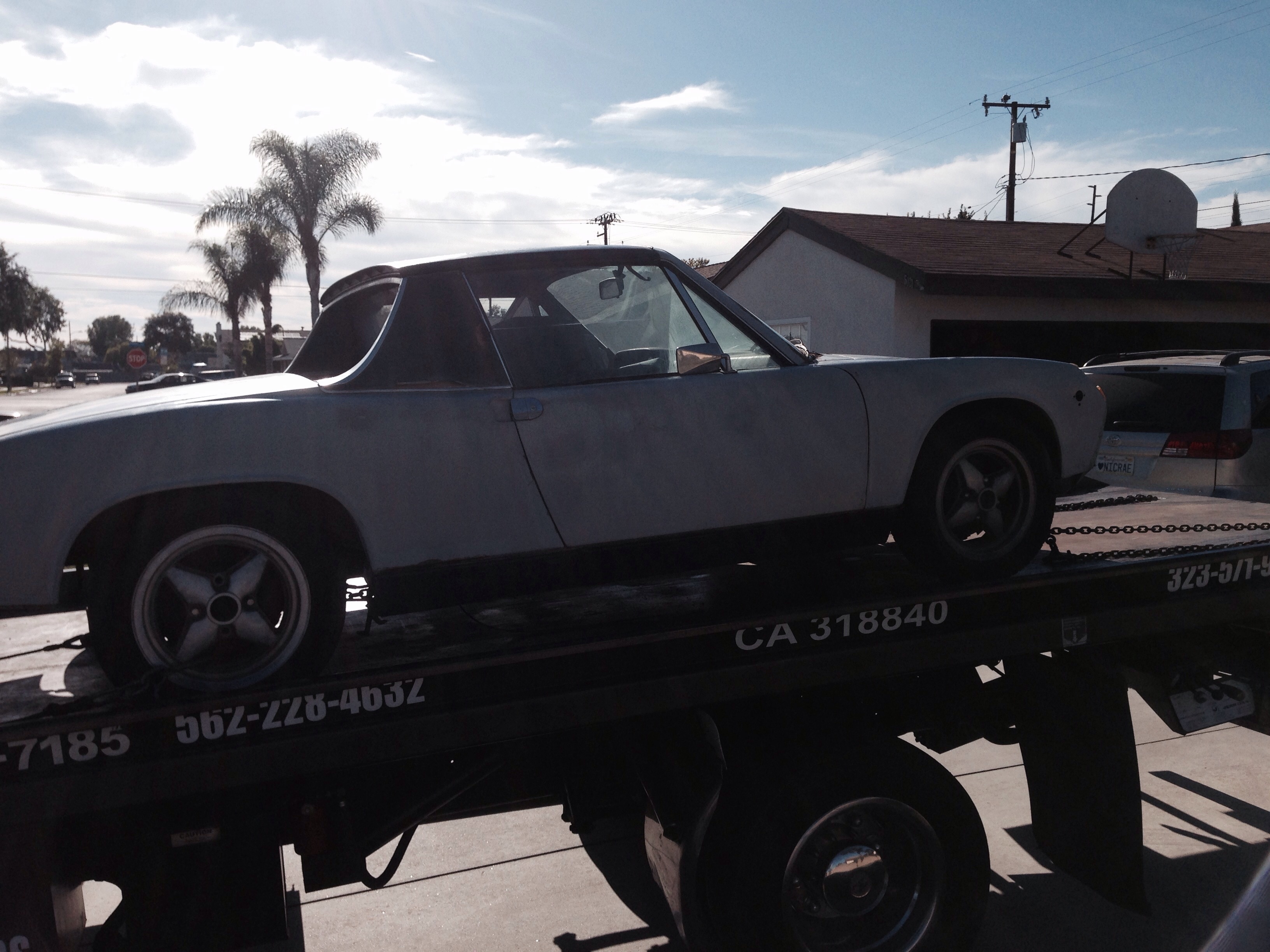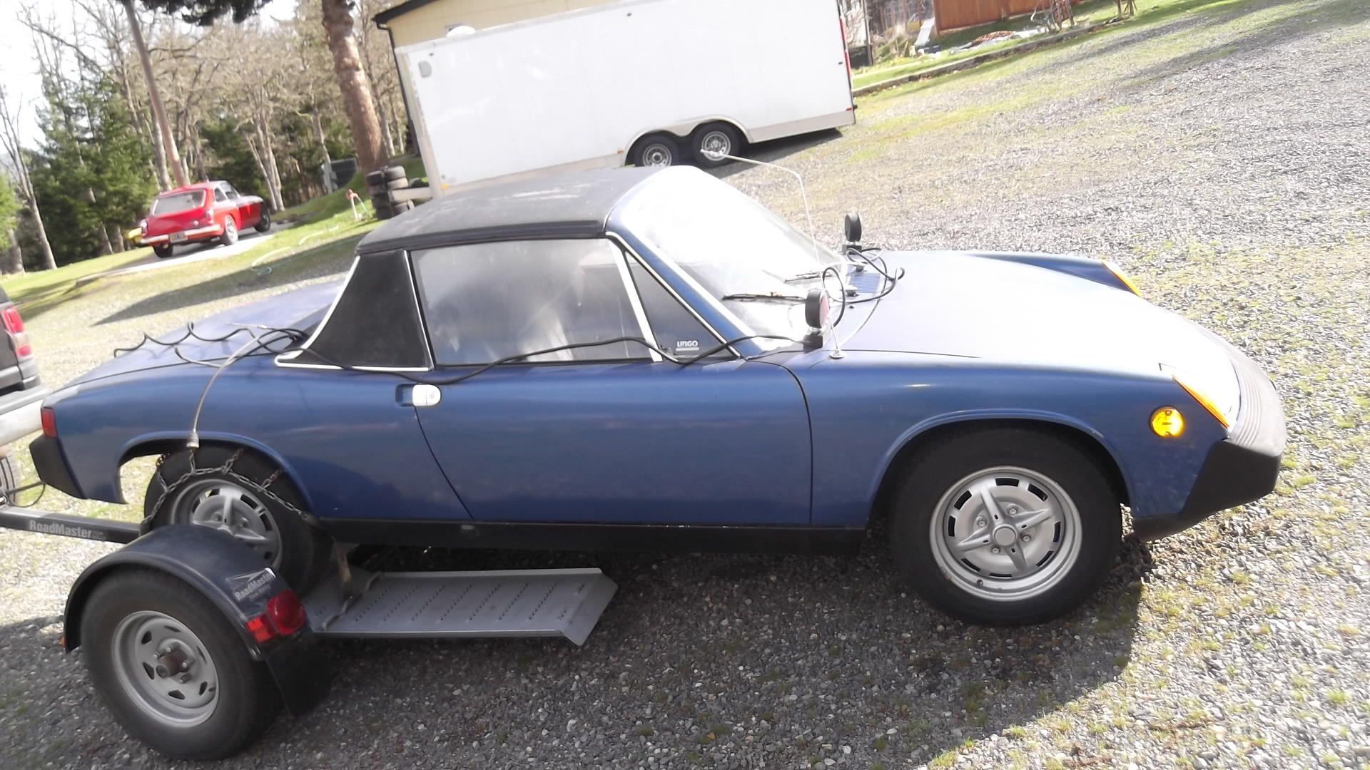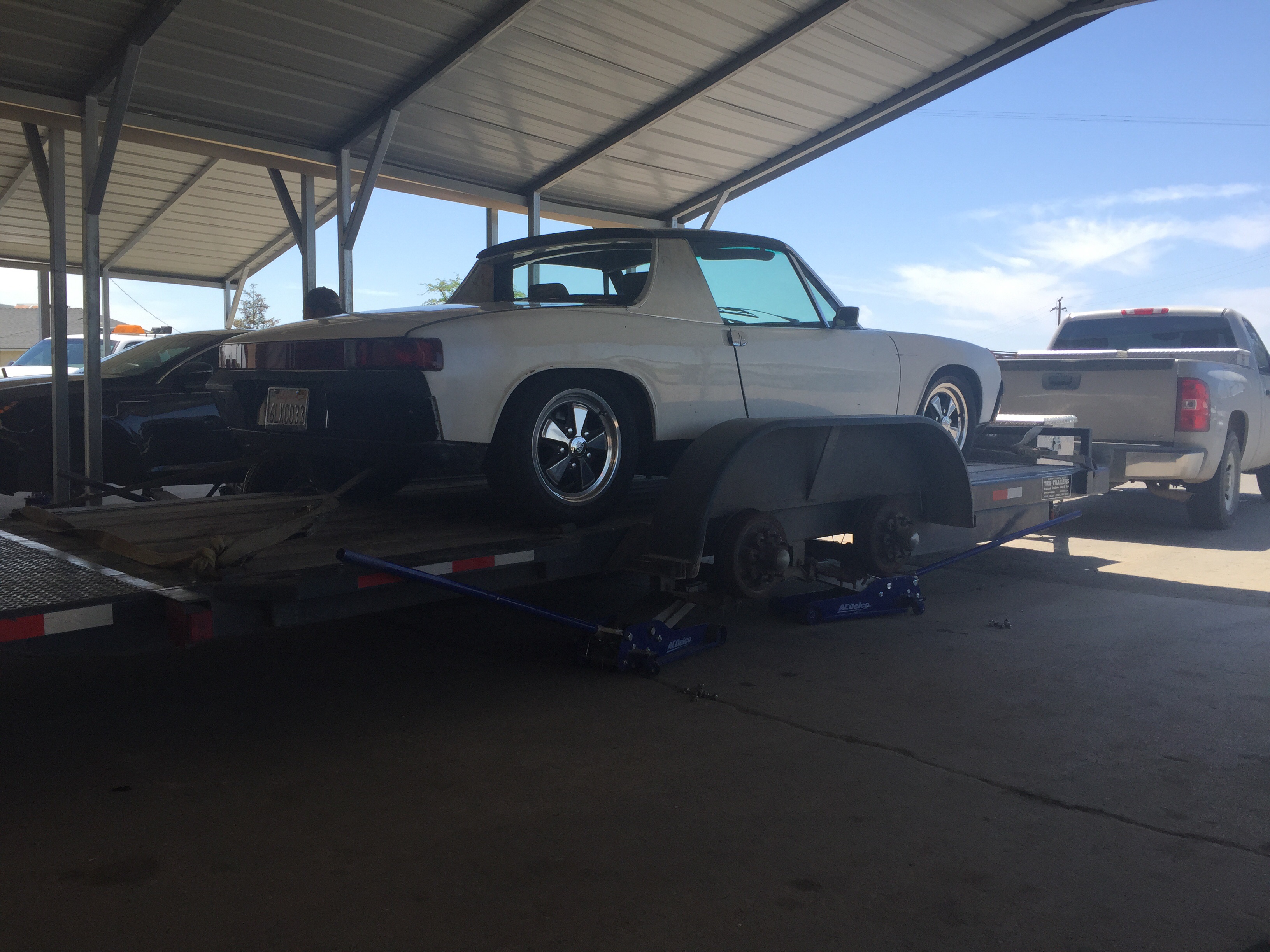 Unworthy of sharing the Jags home on wheels. At least thats what the wife said, "no way your rolling my E out in the weather to to go get a POS 914" So it go the dolly treatment. What does she know? I love 'em more fun than some snotty ol' Jag. |