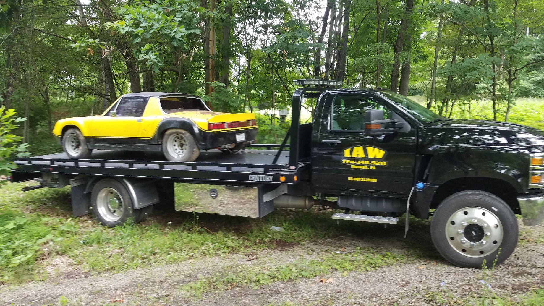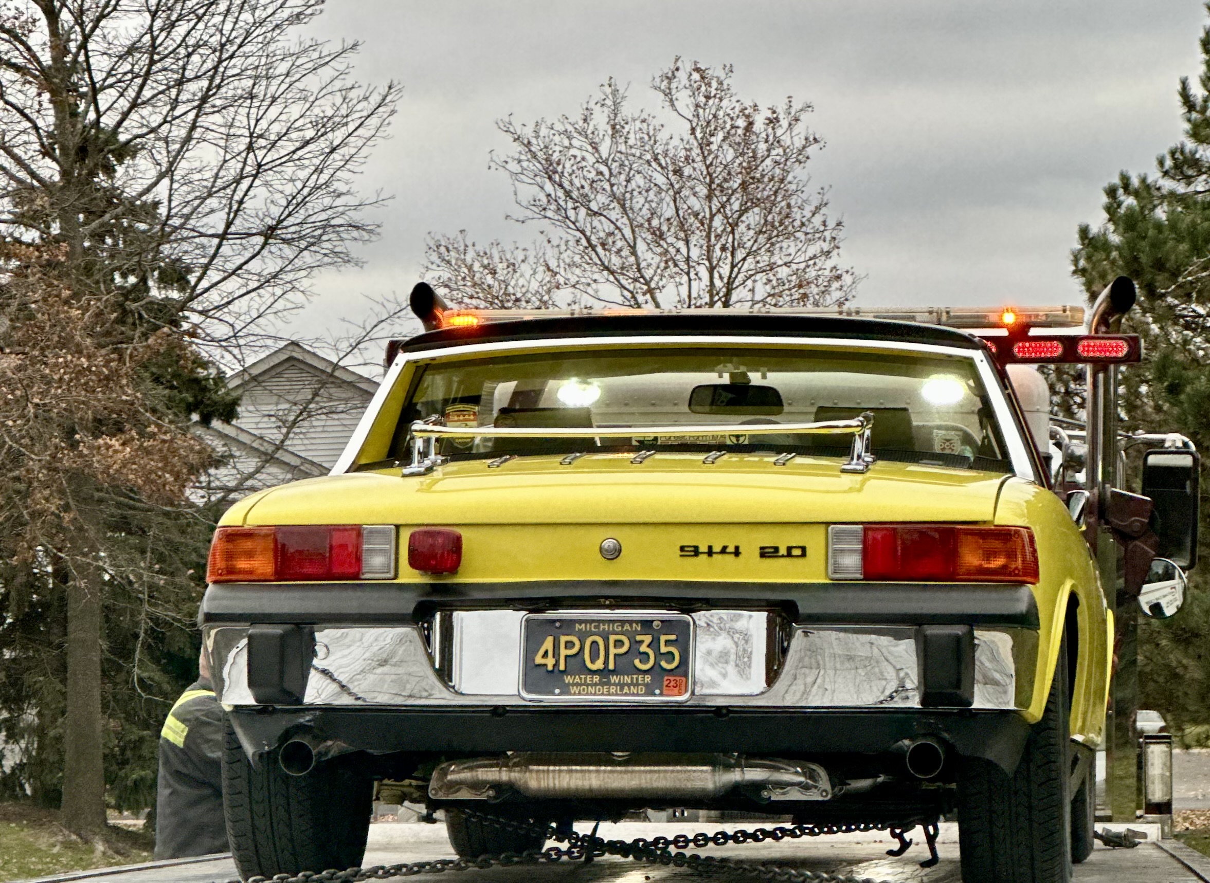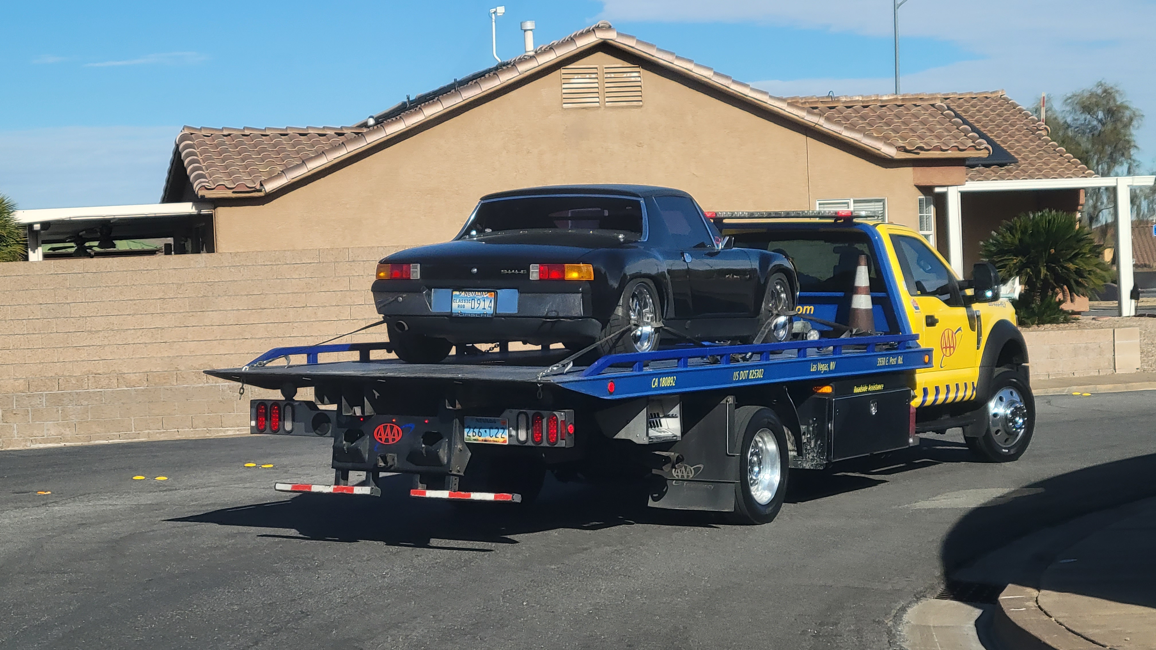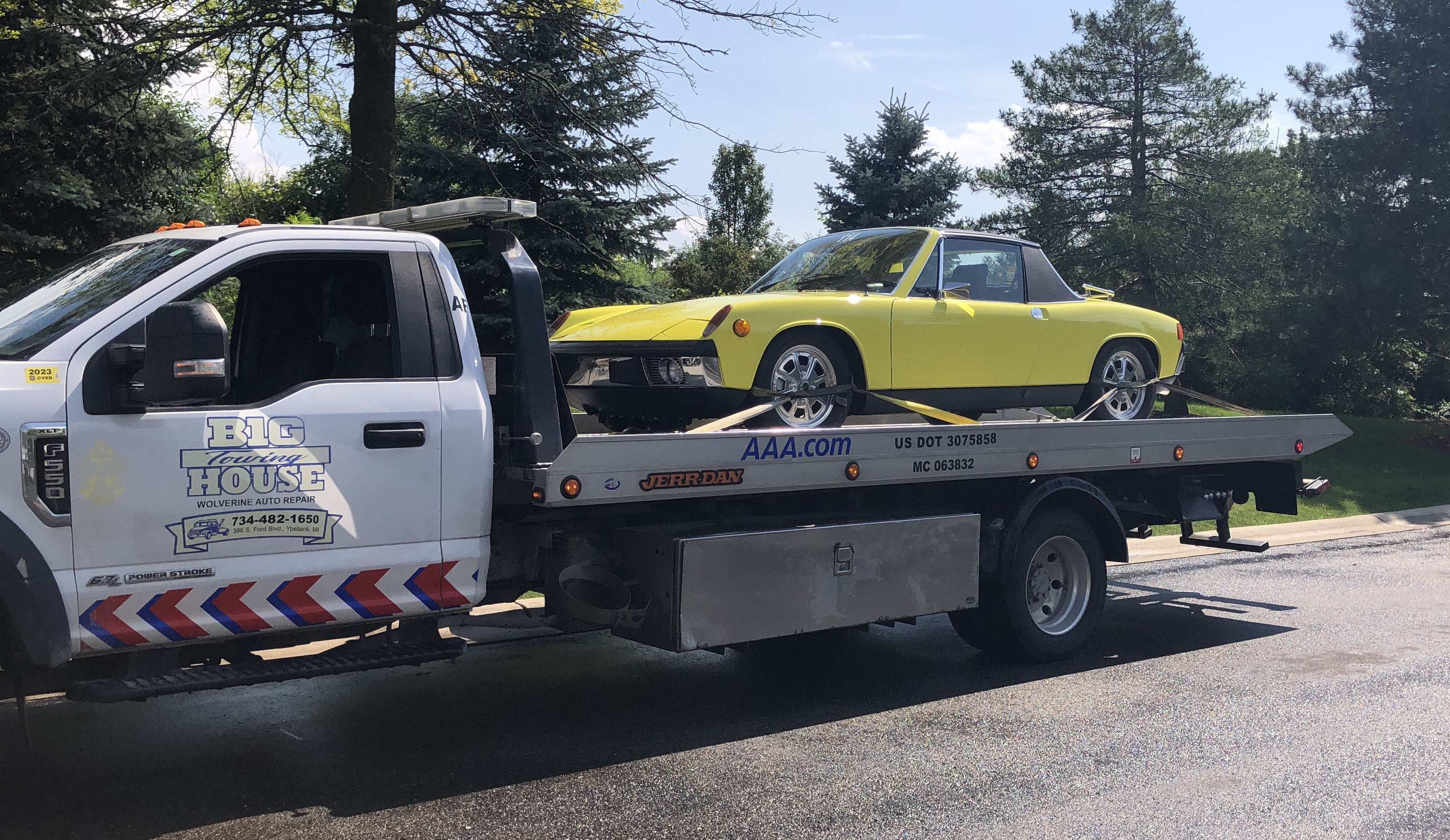 Not my 914, but my 991, after getting a flat on the way to Rennsport. That started a 48 hour delay to get a new tire, and mounted.