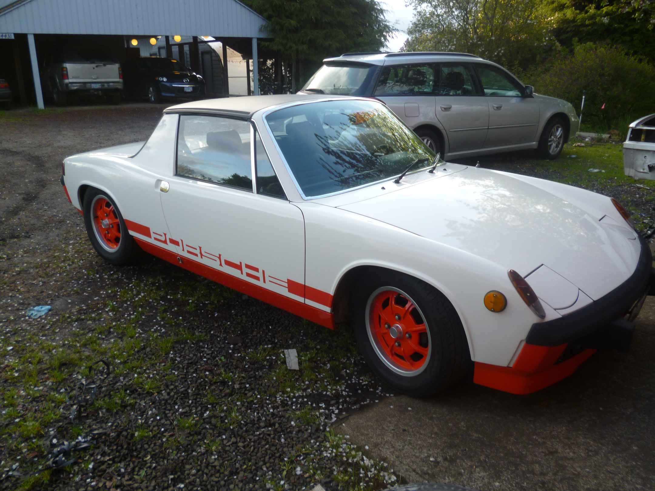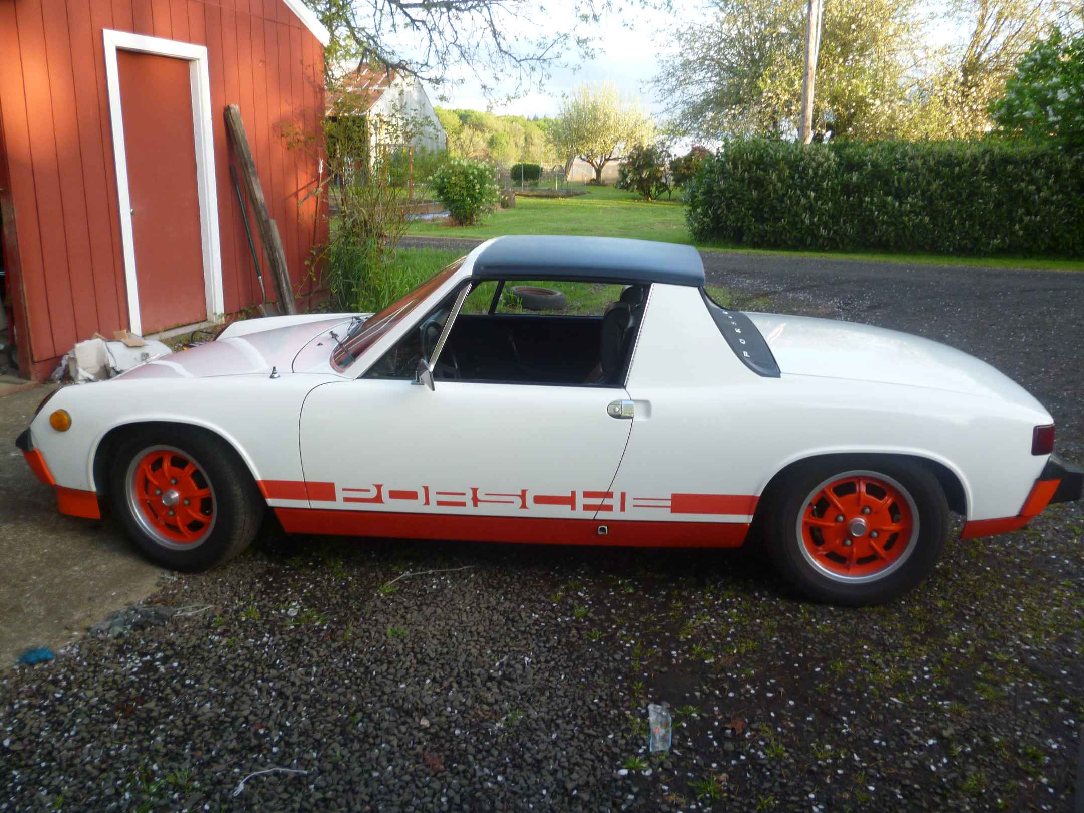 I have been restoring this Creamsicle going on 4 years now. It has been a long slow process with plenty of ups & downs. To start with it was a very solid car with very little rust. Just a bit on the battery tray but none below in the hell hole. I replaced the battery tray & it's support. I rebuilt the motor & the transmission. There is about 4000 miles on the drivetrain now. Most of which came on my trip down to Lake Havasu & route 66. It was a 914 get together & I made the 2500+ mile trip in my LE. I have the Certificate of Authenticity from Porsche for it. I can't guarantee it with the sale of the car yet. I have not been able to find it since a move a year & a half ago. I think it will still turn up but no guarantee's. I also have the original window sticker for it. At some point in it's life it got a reconstructed title. I was so upset when I found out. There was only one fender that had damage. The drivers front fender had a tear in it form the top of the turn signal to the middle of the front wheel arch. That is the only damage to it. I found a little filler behind the passenger door when I got it painted. There was nothing anywhere else. Not frame damage, no panels replaced. All the original welds were in place & no strange creases or crinkles. The reconstructed on the title is not warranted at all. I would worry about that on a newer car with all the air bag's , plastic & sensor's. This is a 914 & it is in Excellent shape. Anyone seeing your car would not have a clue about the title. So I am not trying to hide anything here. It does have a reconstructed Oregon title & there isn't anything I can do about that. I can tell you this is a very nice restored 914.