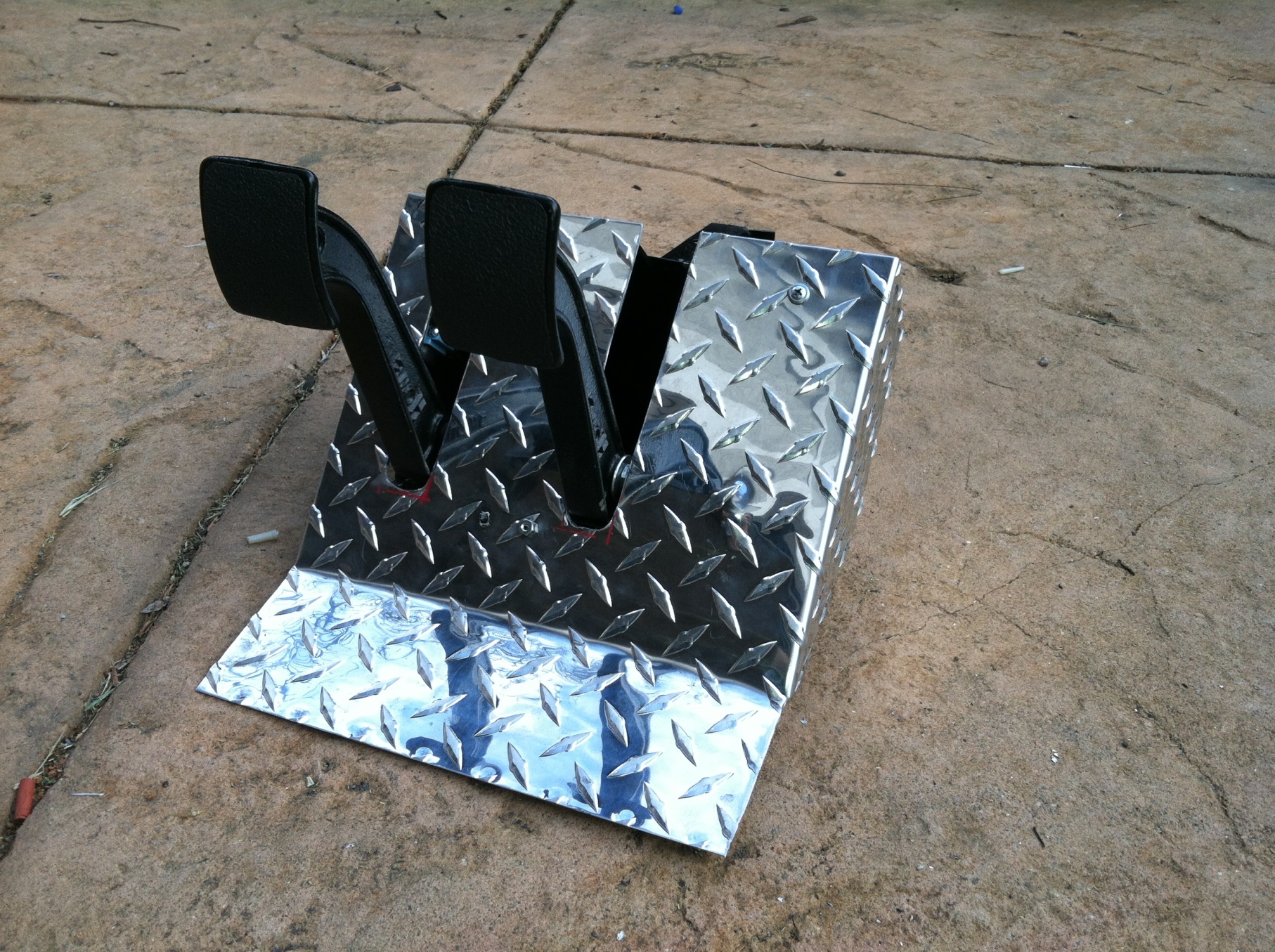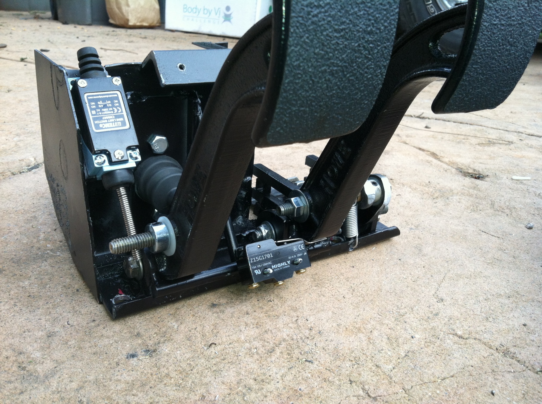 I used Howe pedals but everything else is custom. The clutch cylinder is from Wilwood. This was the second attempt. The first one set the pedals back too far. In the original design, I used the Howe pivot brackets. In order to make it work with the brake master in the factory position, I needed to lower the elevation of the rod. The howe rod pivot point was 3/4" too high. This would have made an extreme angle for the rod into the master. I came up with an articulating rail system for the stock rod. I also needed to offset the rod to the right of the pedal. You can see all the mechanics of it here and in motion in the video. I added a second pivot to carry the side load created by the offset. After fabrication, I hardened all the parts and shot it with a coat of satin black. The new cluster will weld to the factory cluster floor bracket and bolt to the floor so it can be removed as an assembly. I did have to cut a hole into the fuel tank cavity for part of the clutch master to fit into the space. The fluid hose will be placed in the cabin with grommets to the reservoir in under the hood. I tested the pedal torque by placing a C clamp in front of the sliding rail. Clamp was tight and the pedal was able to pop the clamp right off the assembly. I can't tell you the exact torque, I was more concerned with binding or breakage of the system. It appears the brakes should work fine with this setup. You will see a couple of switches. One for the brakes and one (micro, spring, limit switch) for the clutch for cruise control deactivation. https://www.youtube.com/watch?v=PEBmgYdJ_Ow |