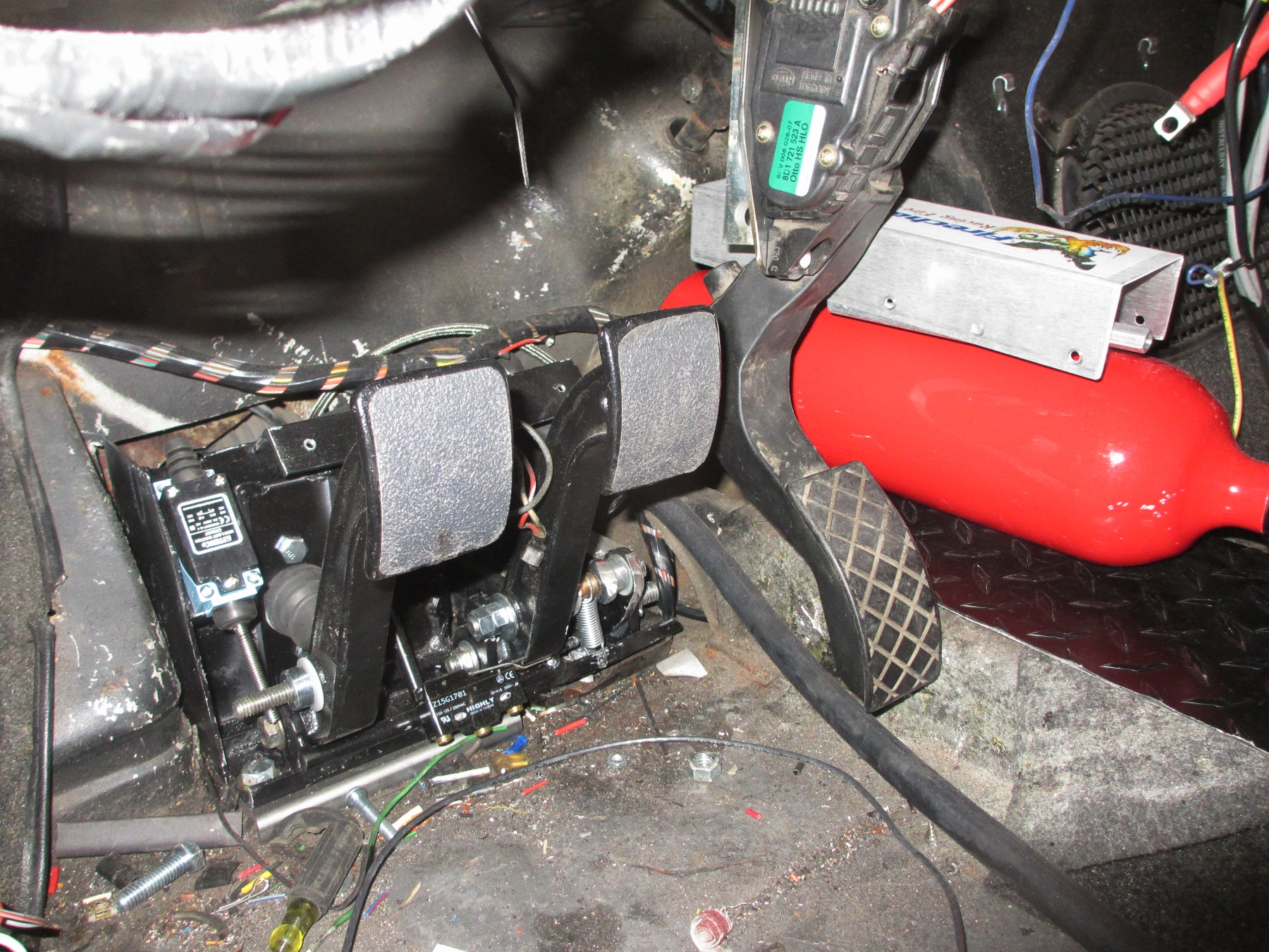 I've been creating a custom pedal cluster for the 914. I needed a hydraulic clutch and I wanted to keep the stock-ish brake master cylinder. I run a bigger master to push on the 930 calipers. The brakes work great so I did not want to mess with them.