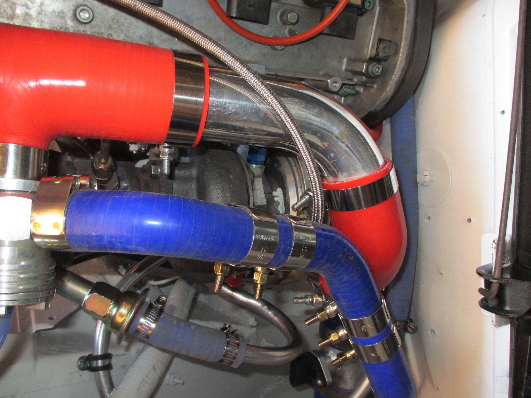 Radiator coolant lines: DONE Heater lines: DONE Intercooler lines: DONE Intercooler pump: DONE Oil lines: DONE Oil pressure line: DONE Intake piping: DONE Recirc valve: DONE (Forge DV/BOV in DV mode only) Turbo inlet: DONE MAF: DONE Aire cleaner: DONE Fuel lines: DONE PCV evacuation system: DONE NEEDS: fuel pump install catch can drain vacuum lines connected wastegate connected boost control connected exhaust install Wiring connected Interior cleaning Dash cluster install Rear sway bar install Fluids: motor oil, tranny oil, coolant Axle measurement t, order and install Clutch final bleeding I can't believe how much stuff was bolted to this system. I waited until final assembly to plumb all the fluid lines. What a bitch. The area on the left side of the engine bay is very contested with hoses (heater, intercooler, heat exchanger, pump, oil, oil pressure). I had one of those senior moments today. I lost my throttle body. When I took it off, I put it somewhere safe. It took me an hour to fine it... (IMG:style_emoticons/default/dry.gif) |