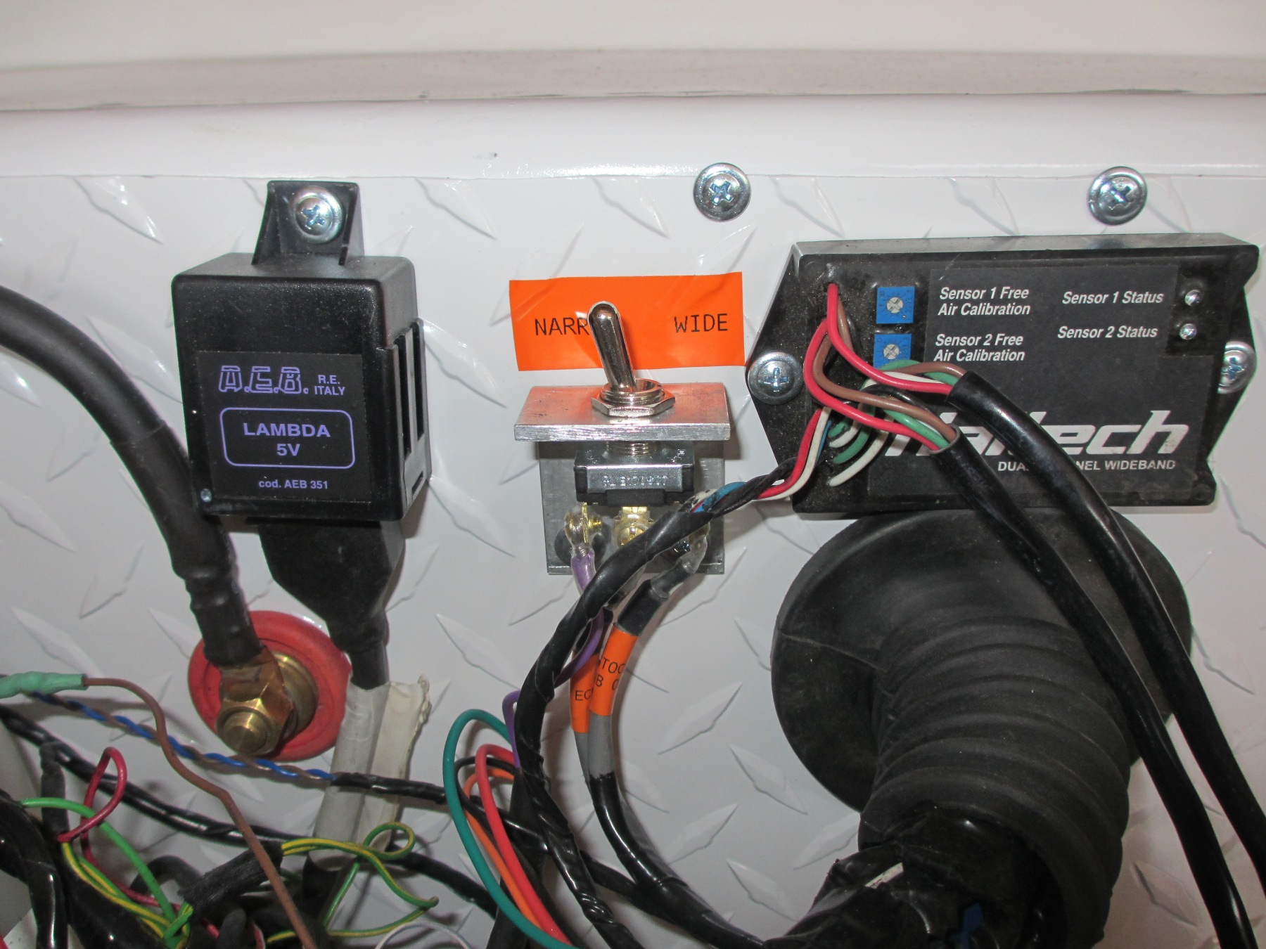 Engine harness... Mounted in removable bulkhead... In the car... Here is my cool wide band to narrow band O2 converter (Left). It takes a linear 0-5v signal and converts it to a linear 0-1v signal. So I can feed the ECU with a scaled wide band signal, in stead of the crappy narrow band signal. The switch (center) will allow me to switch back and forth if I have any driveability or code issues. Here is the flow meter and filter for the methanol system... I cleaned up my Bilstein's too. Looks like I need a ~21" axle on the left and a ~22" axle on the right. I found a good source for axles from an off road VW place. It's going to cost around $200 for a pair. Pretty good pricing. I plan to clean up and reuse my 28 spline, 911 CV joints. |