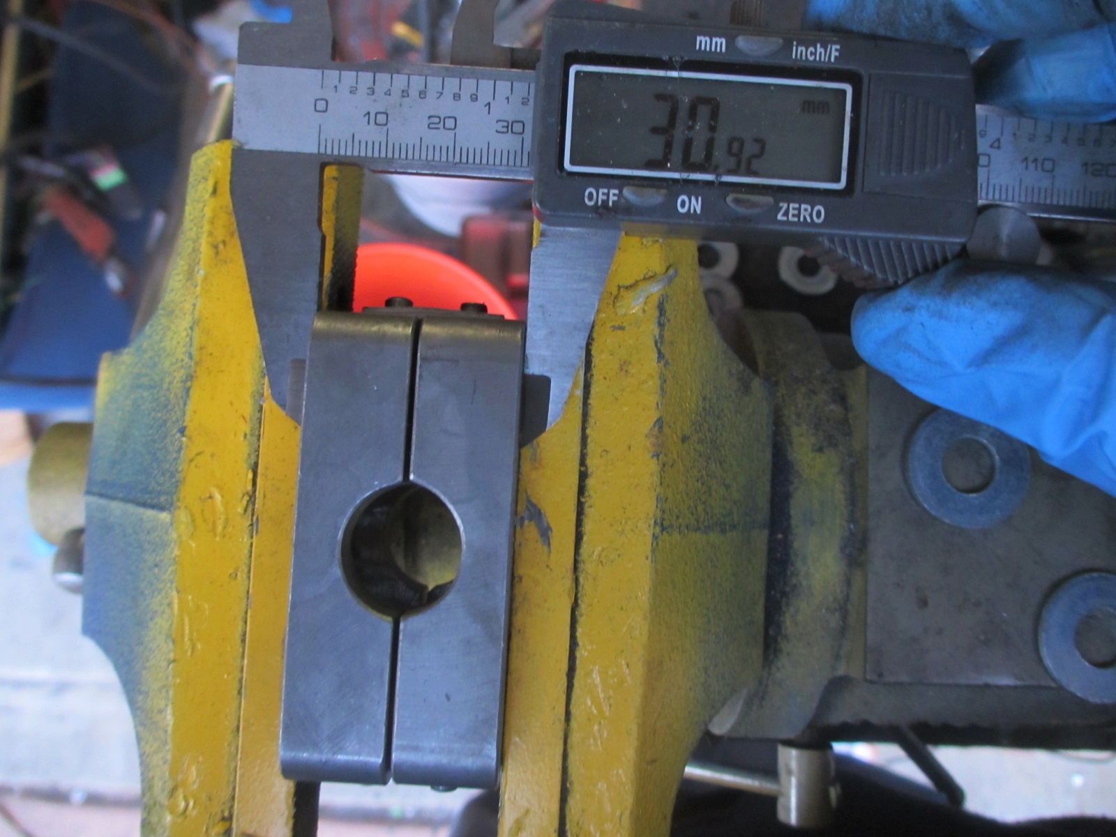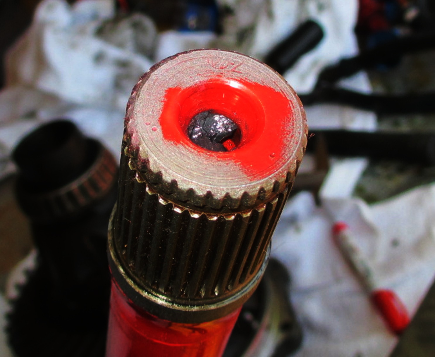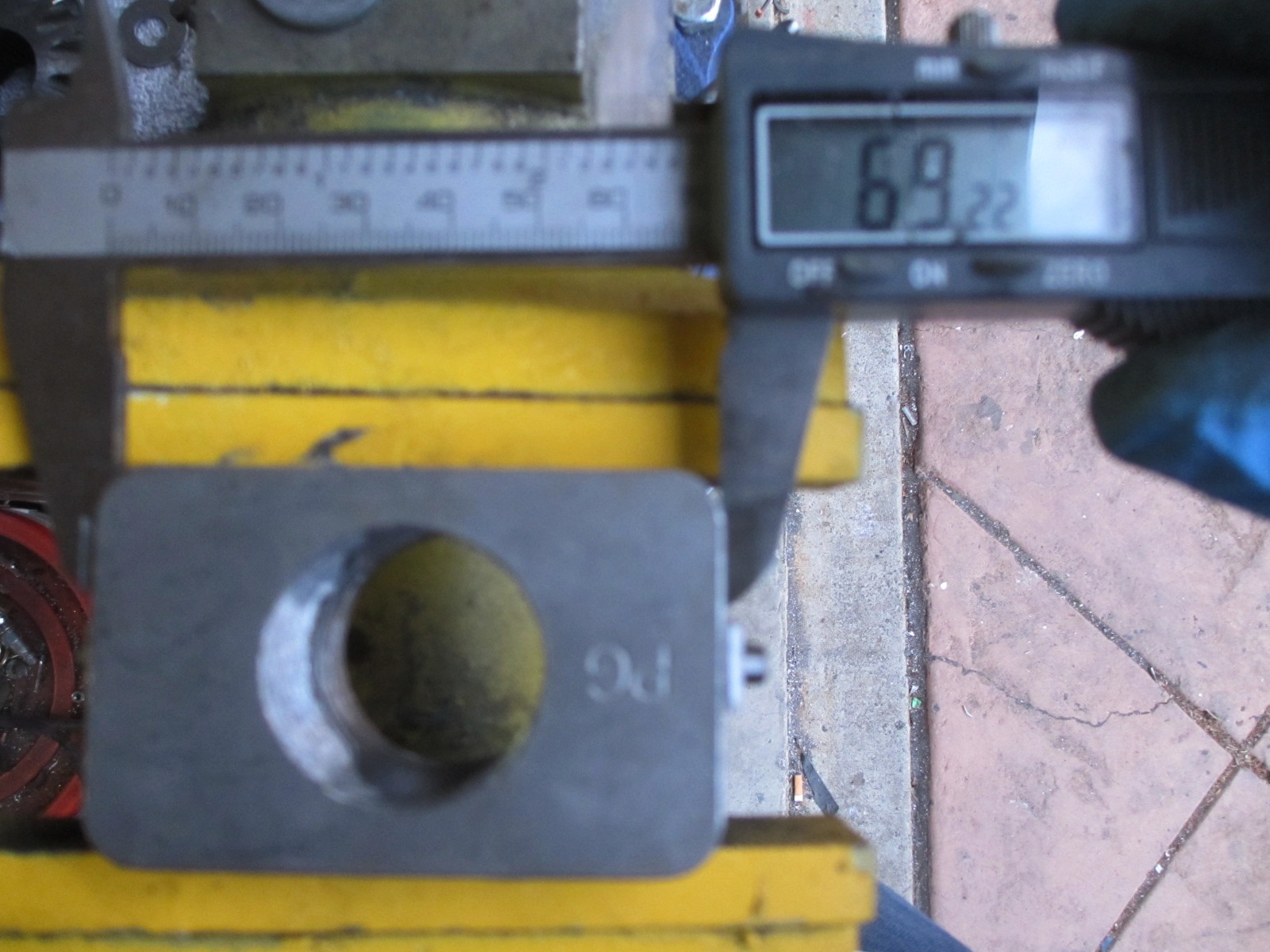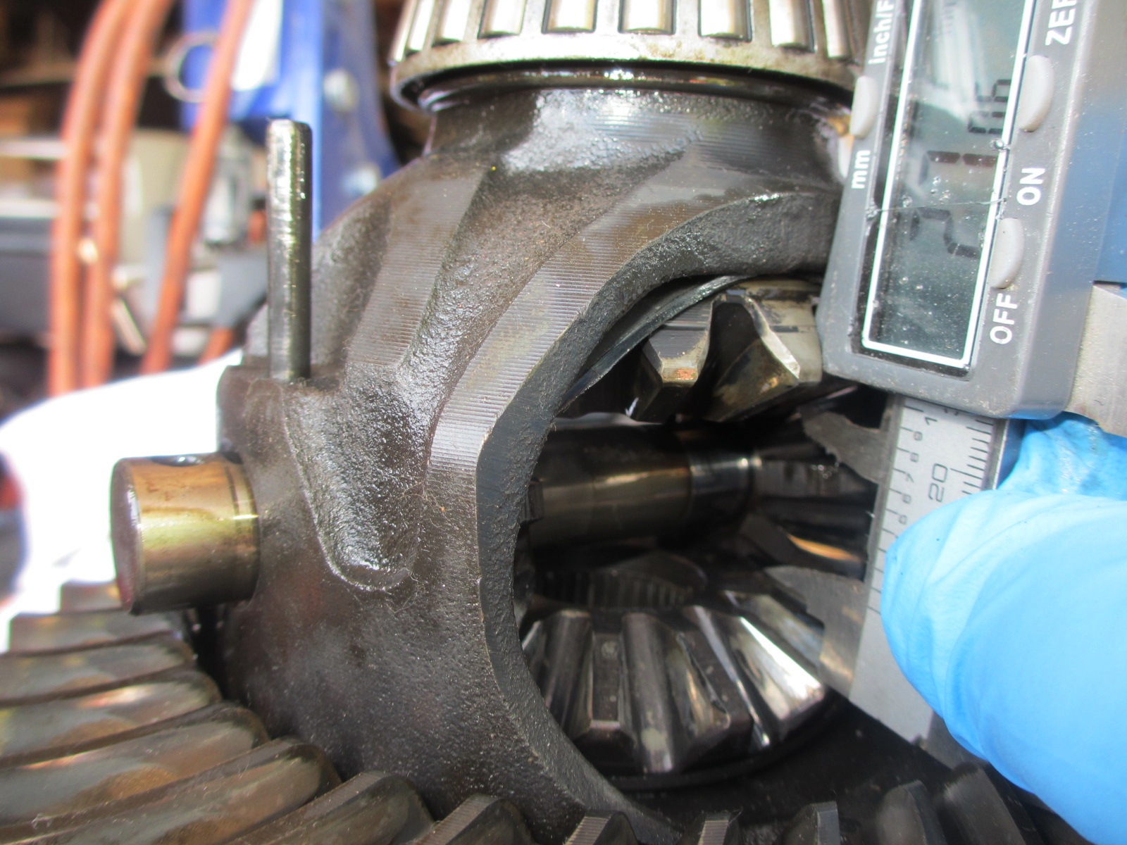 I got the Phantom Grip(PG) installed today. I did have to machine the drive gears and the spider gears for clearance. I drove to several machine and gear grinding shops today. None of them could do the job. No way to chuck them up in the machine. So I did it myself. I built a drill rig from a bolt and some washers. The drive gear has a recess on the face for the stub axle circlip. I chucked up the gear in my drill and while spinning at low speed, ground it on my bench grinder. I took my time and kept eye with a caliper and straight edge. It turned out better than I expected. Looks like a flat machine finish. I also had to clearance the PG axle hole a little. Since I machined the drive gear, the stub axle sticks through a little further. I opened the hole in the PG to allow the stub to slide in without binding. Normally the end of the stub would be in the empty center void.