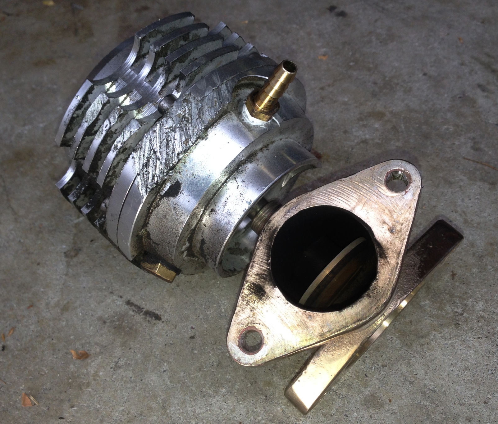 The Waste gate broke! The two halves separated and all the exhaust pressure was going out the WG. no spring pressure at all... (IMG:style_emoticons/default/wavey.gif) (IMG:style_emoticons/default/headbang.gif) Looks like it took some abuse but it was enough to start the self disassembly process. (IMG:style_emoticons/default/biggrin.gif) Here is the one I had sitting around. 38mm water cooled JDM POS. I have had great luck with the WG vendor so hopefully it will last long enough. This one was bolted on with new gaskets and high temp thread locker. |