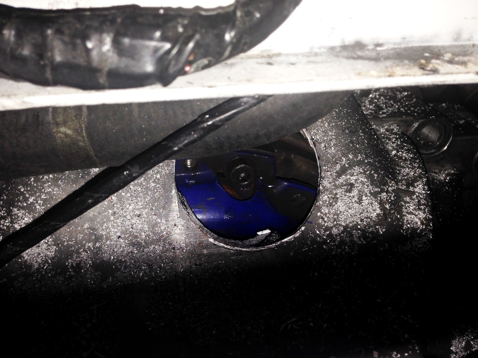 The new master and slave would still not disengage the clutch so I new it was time to pull the tranny and see what's doing. I spent all day, 10 hours, trying to pull the tranny away from the motor. It would not move more than 1/4". WTF? In a move of desperation I cut a hole in the bellhousing with a 2" hole saw to access the clutch retainer bolts. I removed the 6 bolts by spinning the motor and the tranny fell out (almost) on to my jack and the unit easily was removed. I cut the hole on the top of the housing away from any case webbing. Hopefully it will hold up for a while. The Passat 012 trannys are cheap to replace so I wasn't too concerned and one day the 6 speed will go back in. I could not slide the disc off the shaft at all. It would not move. I had to use a puller to dislodge it. Once loose it was clearly galled and boogered up. My SPEC stage 3 pressure plate took some collateral damage from the hole saw so I went to flaps and bought a LUK unit to run for the time being. I'm not sure how I fucked up the disc going in but I did use the alignment tool and it seemed to slide in good. Oh well... Tomorrow the car goes back together and I hope to be driving it before the end of the day. Here are some glory pics... |