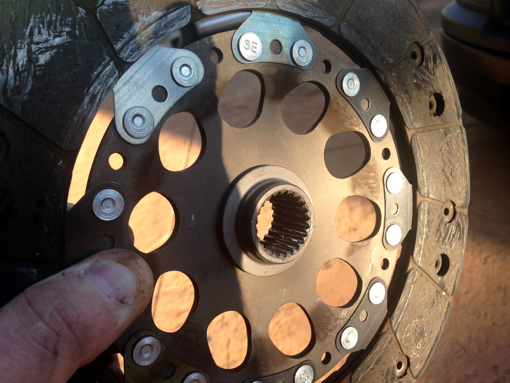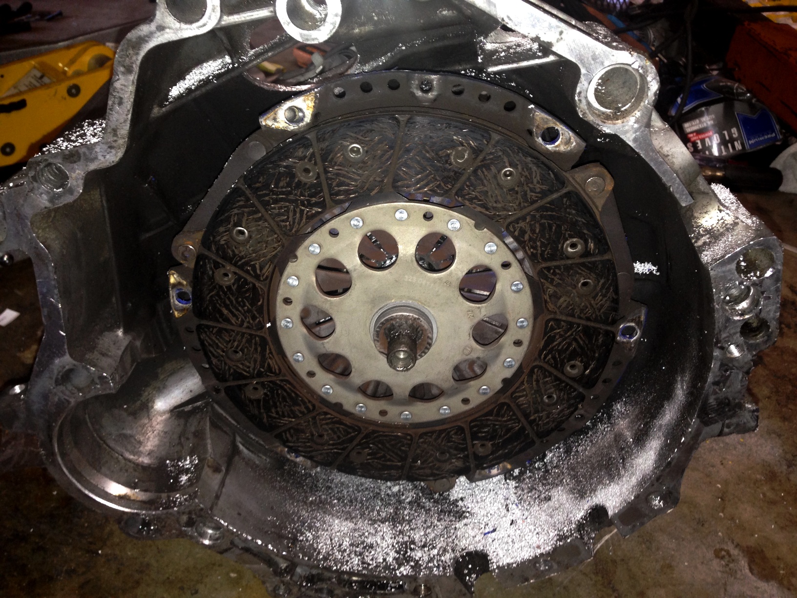 The SPEC Stage 3+ clutch came in the donor car. It has worked flawlessly. When I pulled the 6 speed I inspected the copper composite disc. It was glazed and burnt a little. When I compared it to e LUK organic disc I had, the copper unit was noticeably worn. I installed the LUK disc without inspecting it or trying it on the main shaft. It was new and I assumed... (IMG:style_emoticons/default/chair.gif) The Spec pressure plate was damaged while cutting into the tranny. I bought a new LUK assembly; Disc, Plate, TO bearing, pilot bearing. I am going to order a new HP unit but this was to get it on the road. Hopefully it will last until after WCR. This time I slid the disc on the main shaft and it slid perfect. I installed all the new parts and use the supplied lube on the splines. This time the tranny practically fell into the car. A couple wiggles by hand an the tranny seated flush with the motor. I reassembled the car and took it out for two drives today. The first run I jumped on the freeway and the clutch slipped bad. I melowed the throttle and came home to read the breaking instructions this time. Looks like I need 500 miles of stop & go traffic before I can get into the boost. The second run was about 25 miles around Danville and Blackhawlk. The car is running great. It did go into limp mode once and came back with an O2 code. I restarted, cleared the code and kept driving. No other problems. When I got home 10 miles later, I checked the WB/NB switch I have to the ECU and the connections look suspect. I'm going to remove the switch and WB/NB converter bot and discard it. My ECU was dyno tuned to the NB signal and I don't need this extra circuit. I have a WB sensor still with my Haltecth controller and Innovate gauge. This signal was pushed to the adapter. It converts the WB 5V+ signal and scales it down the NB voltage. It theoretically gives you a WB signal at NB voltage. Since the tuner went with the standard NB signal, I don't need it. My ECU would need to be modified to WB to use the 5V signal. I think the first new disc was messed up I never tried it before installation so I will never know for sure. Now I have a 2" inspection port on top of the tranny. (IMG:style_emoticons/default/dry.gif) I plan to pick up a new flywheel too along with my new clutch. I'm very happy with SPEC and have use one ion the turbo rotary without issues. I may go with a new one again. There are so many to choose from with different weights. The one I have now is 11lb (said the PO). I haven't measured it but it looks smoked and blued. The DAPO told me he had to slip the clutch to prevent stalling. I have had no issues with stalling but my car is 1000+ lbs lighter than the donor. With this flywheel, I can let the car roll forward in 1st gear with out it being jumpy at low or no throttle. I thknk the weight is perfect for the chassis/engine combo. |