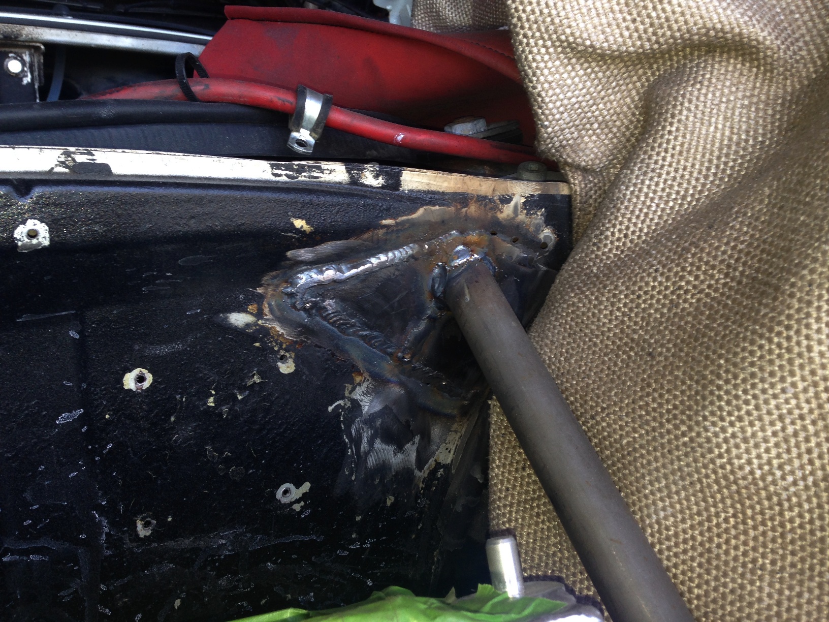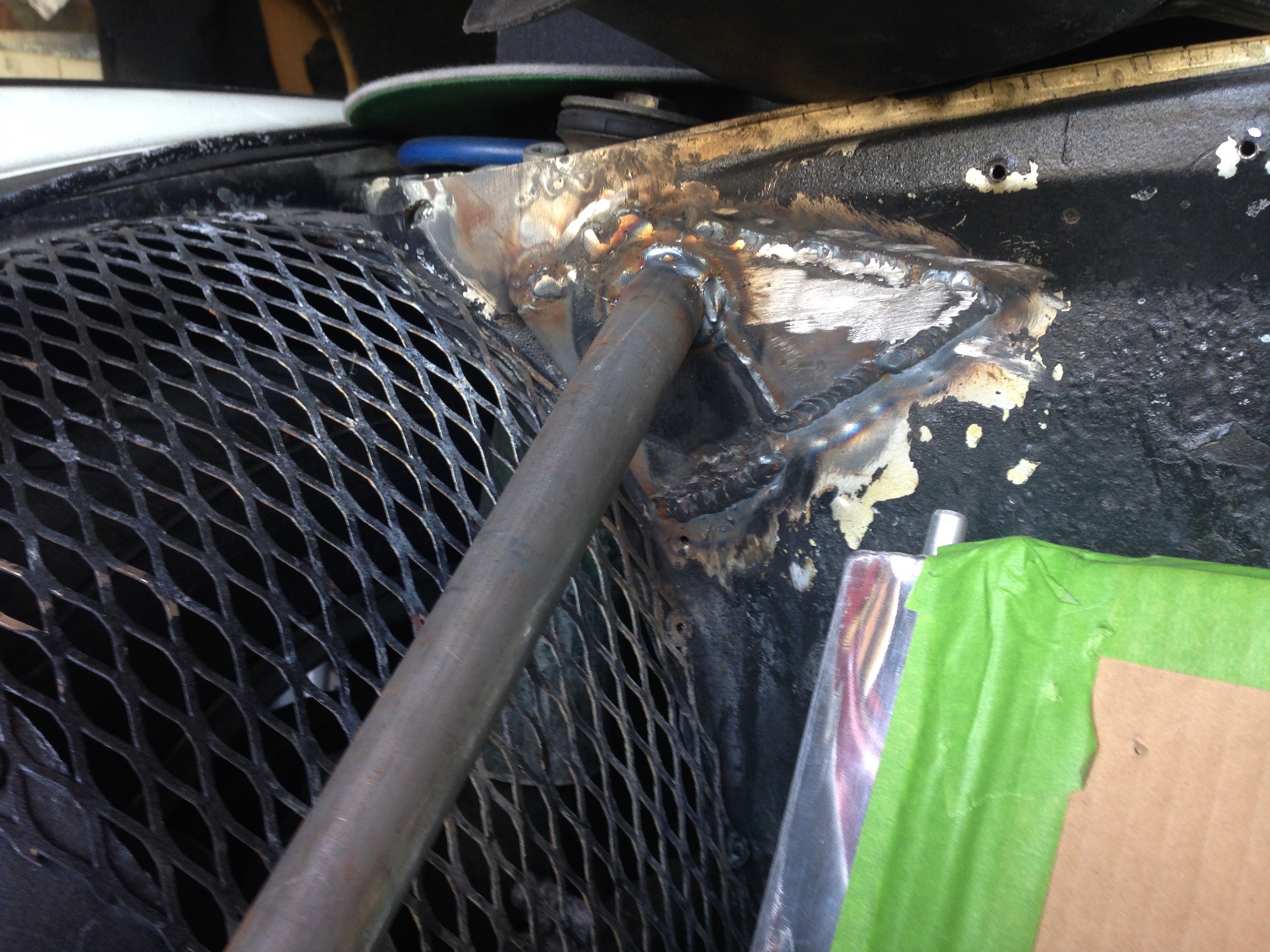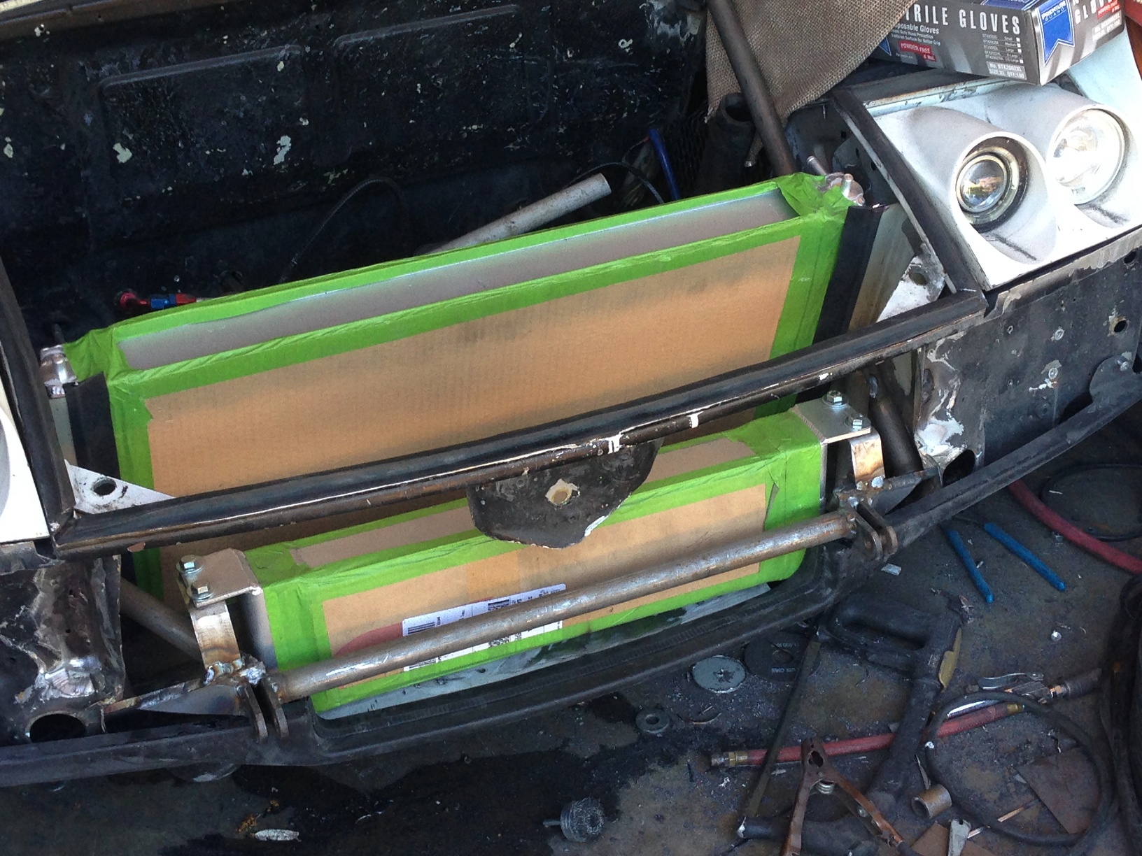 Looks great! Love the support and the radiator shroud is looking pretty good! Is that going to get welded in?