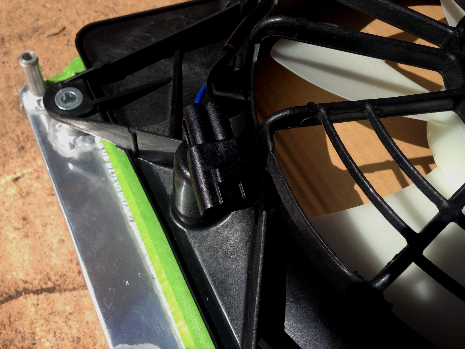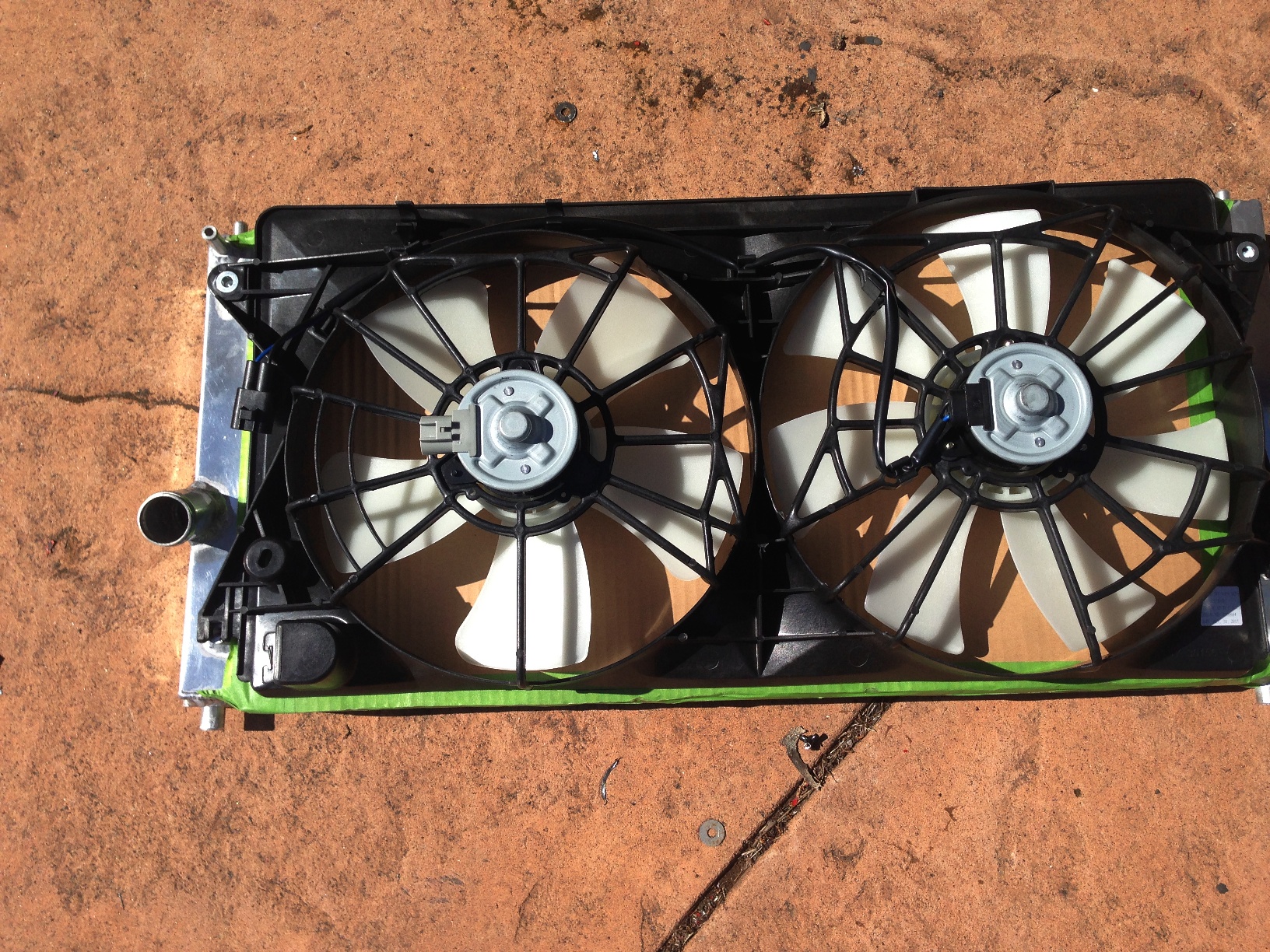 I picked up a factory shroud with fans for the radiator. Perfect fit but I need to check my stash for electrical connectors. I like this one better than the cheapo Chinese fans and shroud that's sold as a package with this radiator. If these fans don't blow enough, my old fans can be fit into this shroud with a little ingenuity.