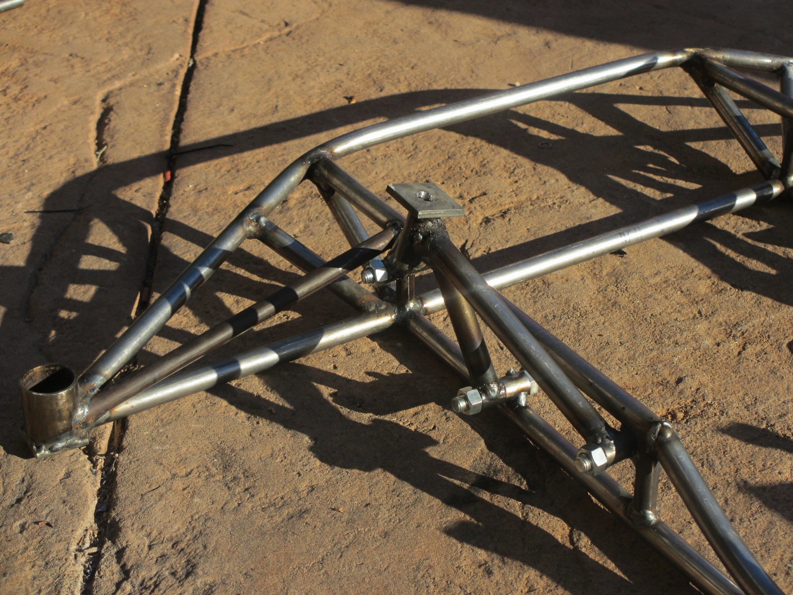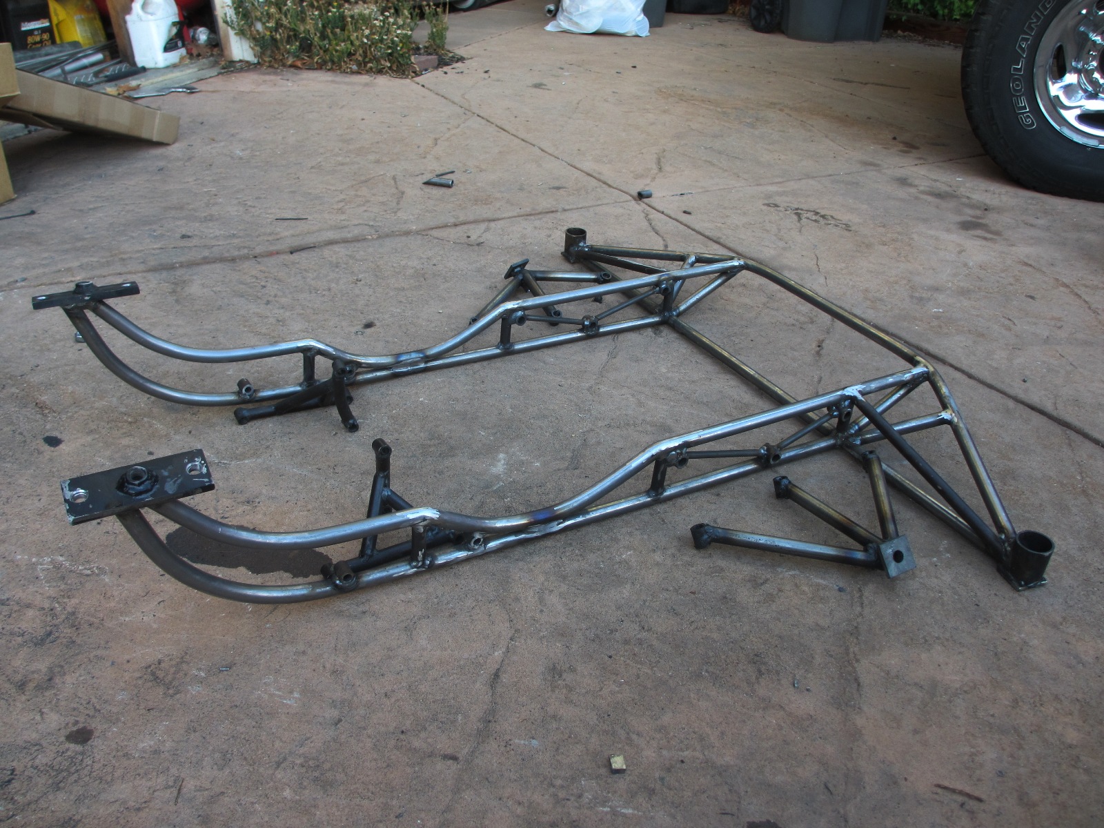 here is the final system welded. Need some more grinding and finishing but it looks pretty good. For those that are counting, the cradle weighs exactly 24.6 lbs. The engine and tranny mounts a few pounds more...