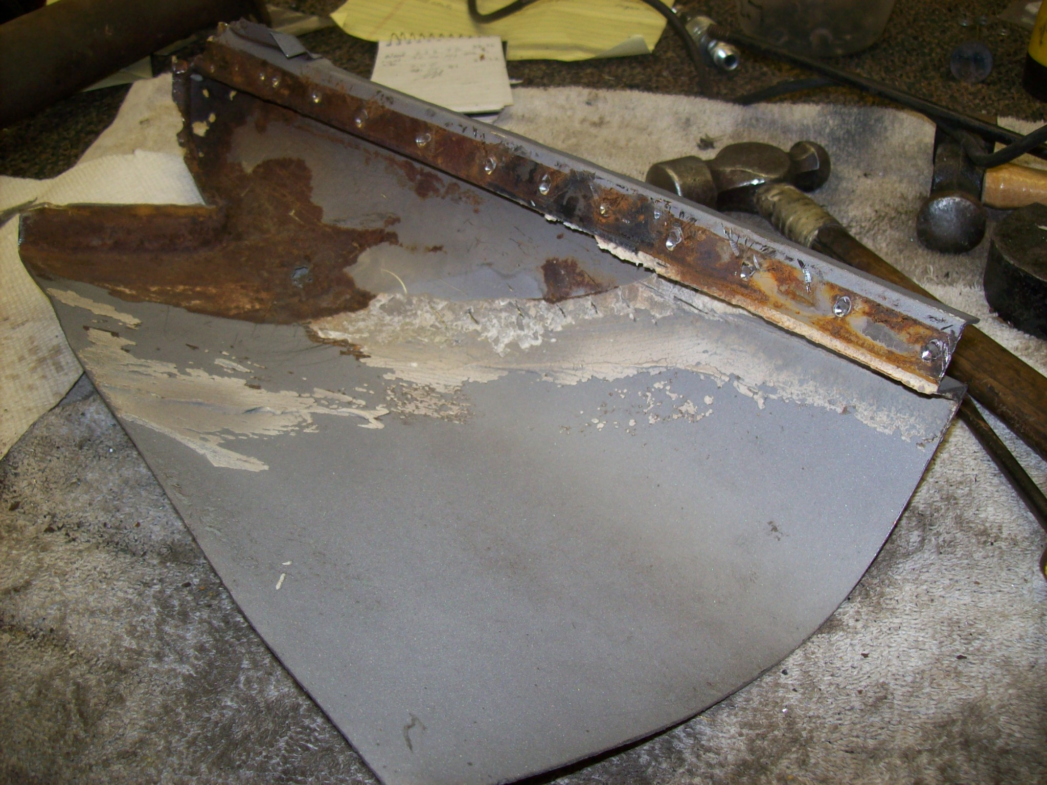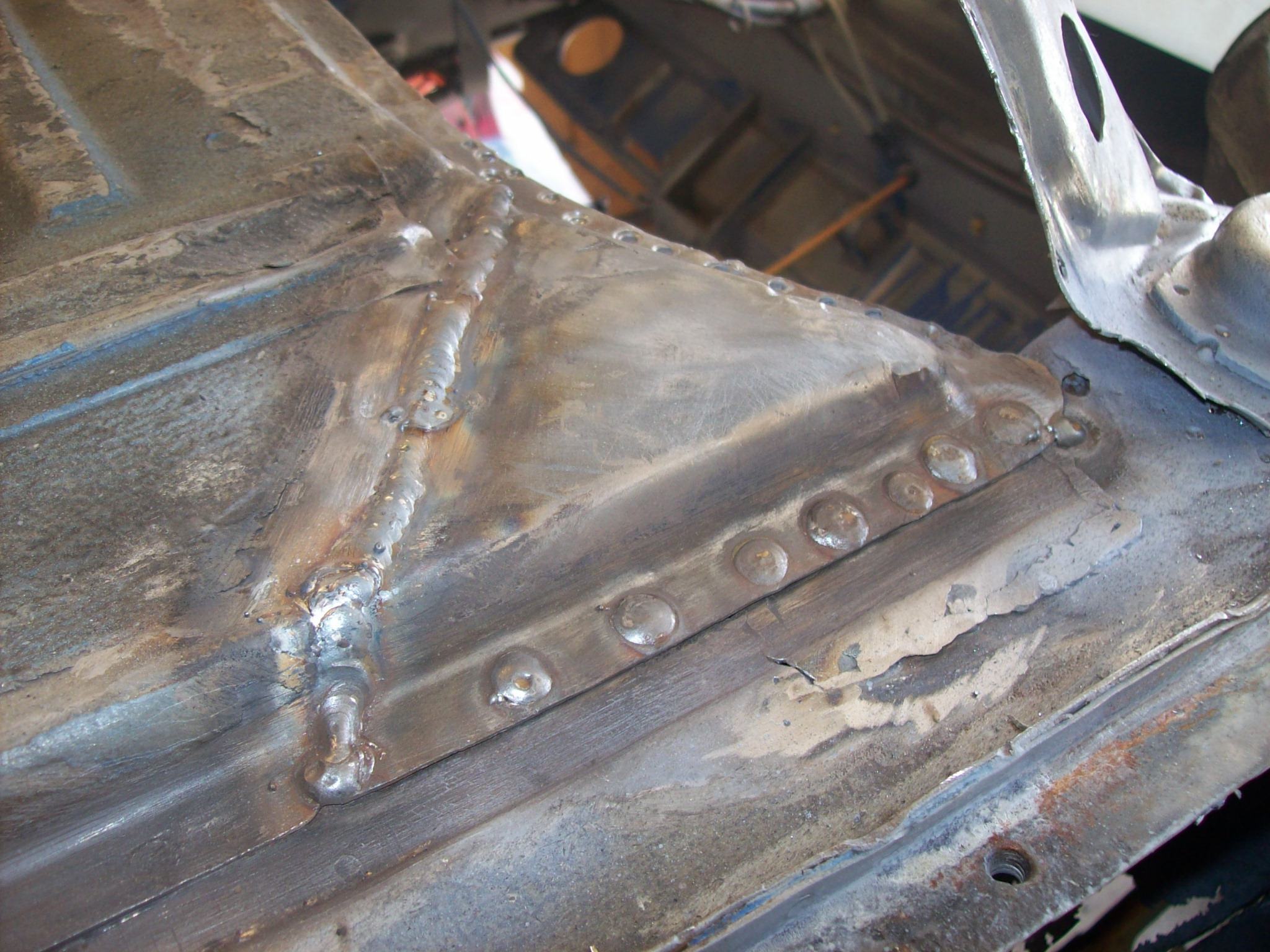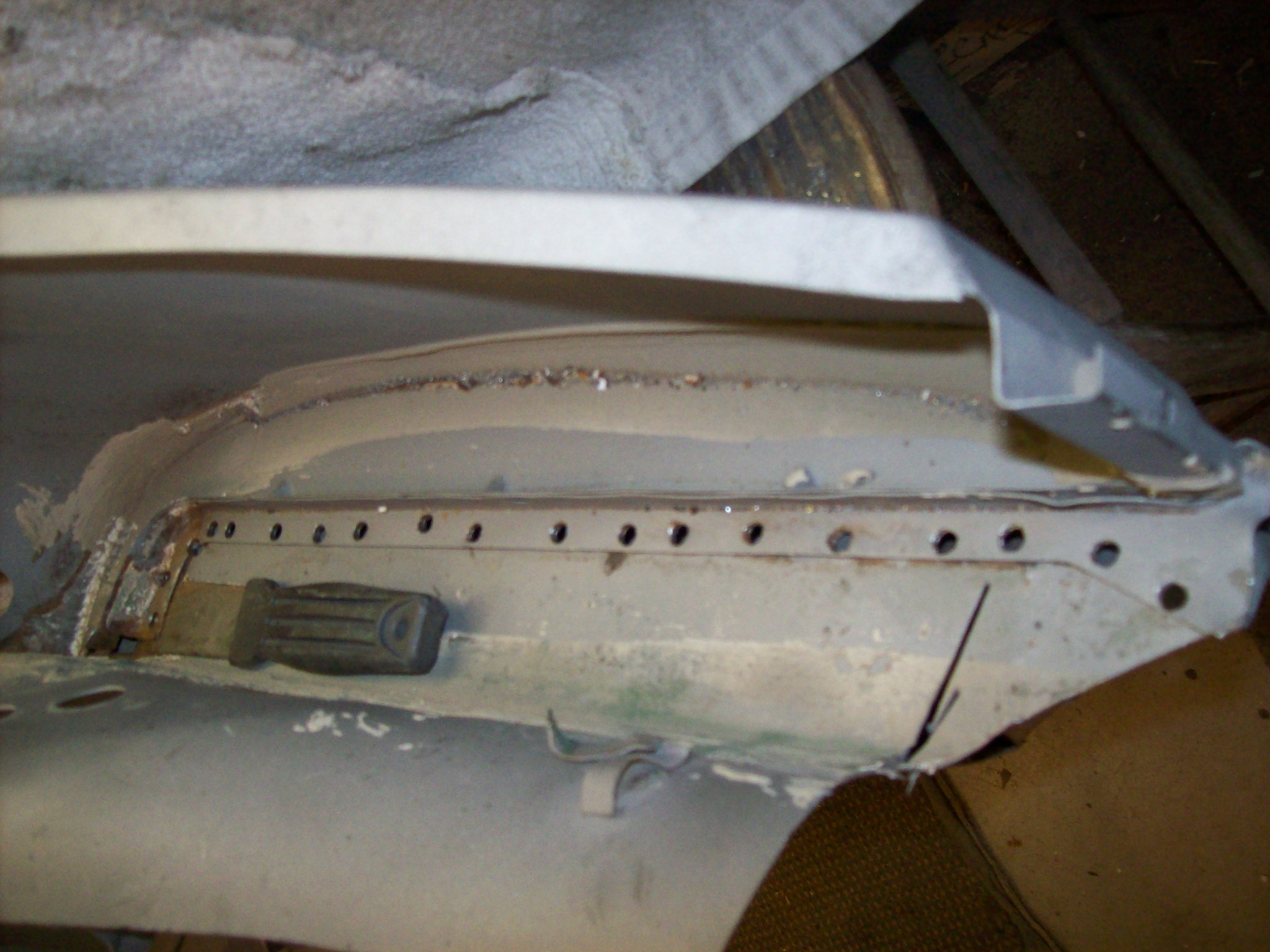 I hate seam sealer. That stuff is thick, and the sandblaster didn't dent it. I had to dig it out with various sharp implements of destruction to get to the spot welds I needed to access. Slowly if emerges