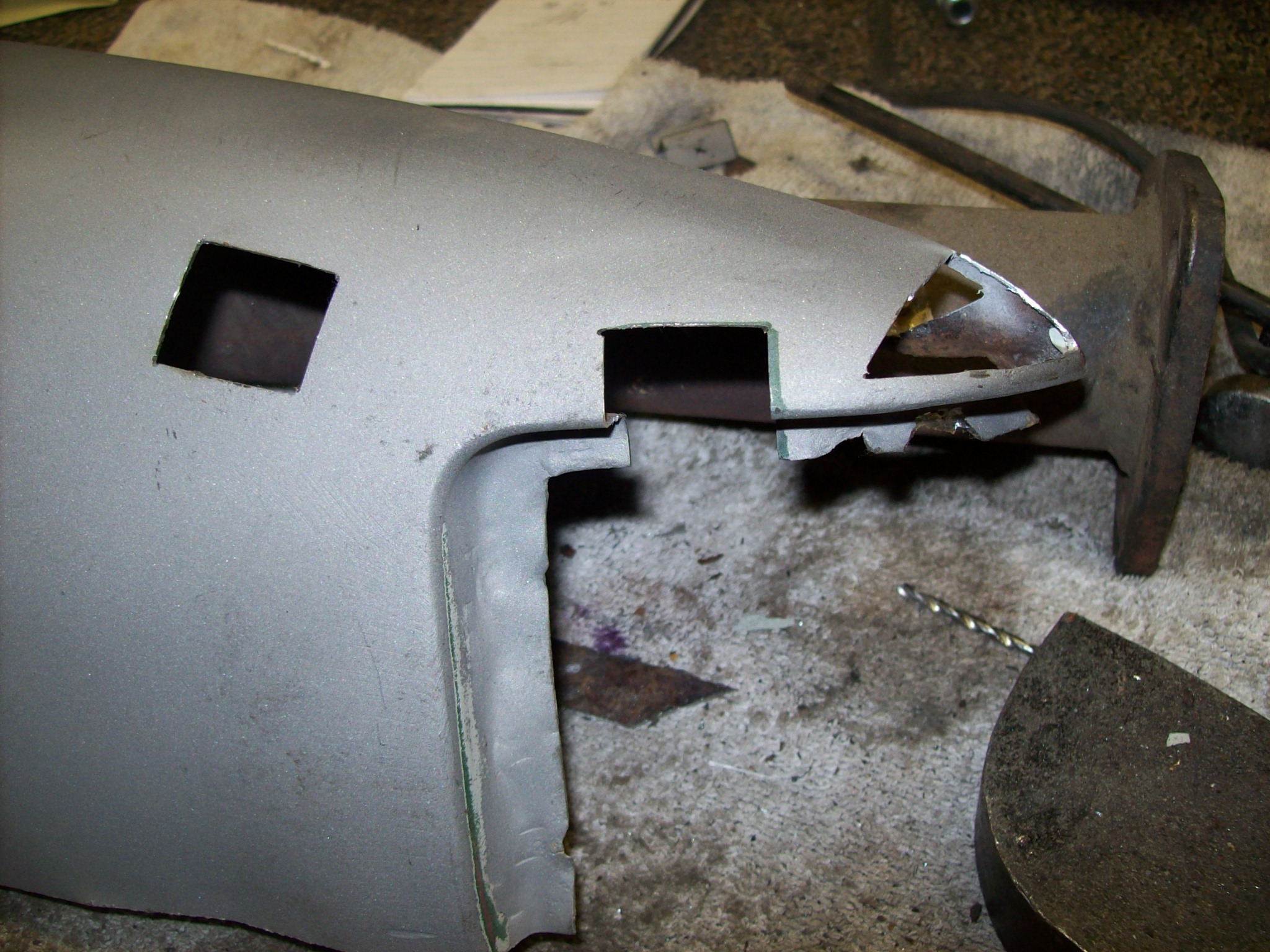 Basically I peeled the onion back to get access And now I am folding the layers back This is much better than What I started with Much straighter too...this corner was wacked when I started Now I need to clean up the top side from inside the longitudinal, and then close up the jackpoint. |