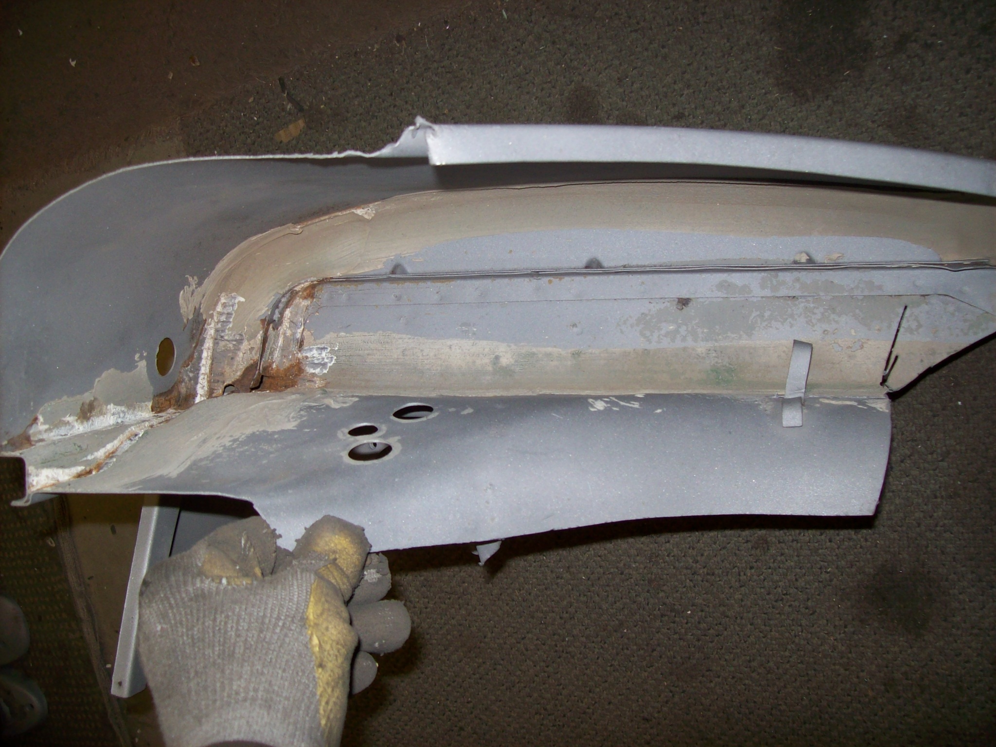 Once the inner and outer fender corners are separated I can clean them up. Here...my work is cut out for me...