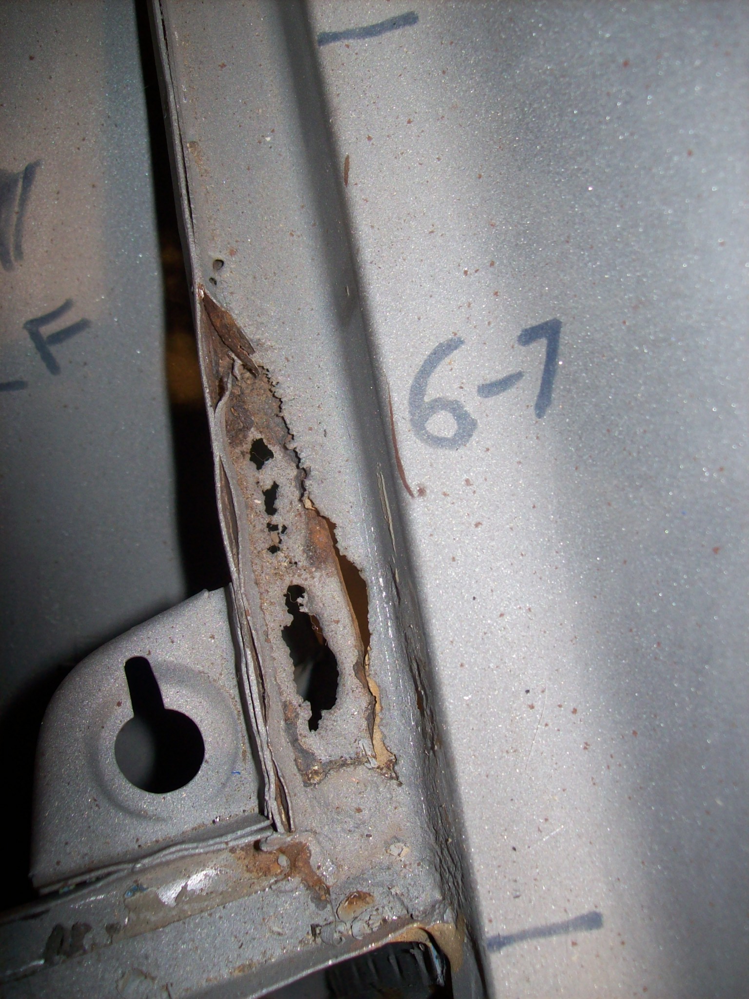 I have a transplant candidate that wants to play... This will be tight. Need to figure out the smallest possible area to replace. Next on the list is the corrosion at the door release/wing area on the passenger side. Slowly but surely (IMG:style_emoticons/default/biggrin.gif) |